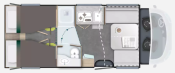 1 Comedor muy amplio FACE to FACE transformable en cama de matrimonio/litera con asientos giratorios del furgón