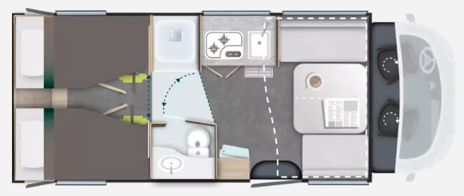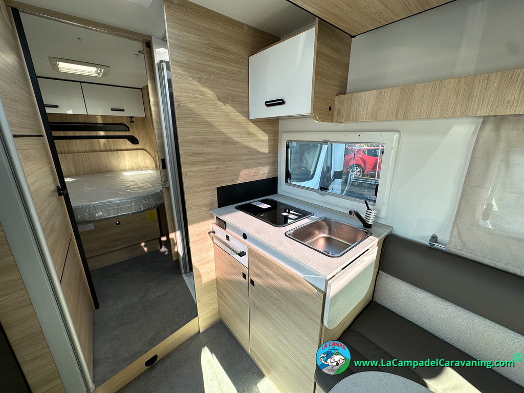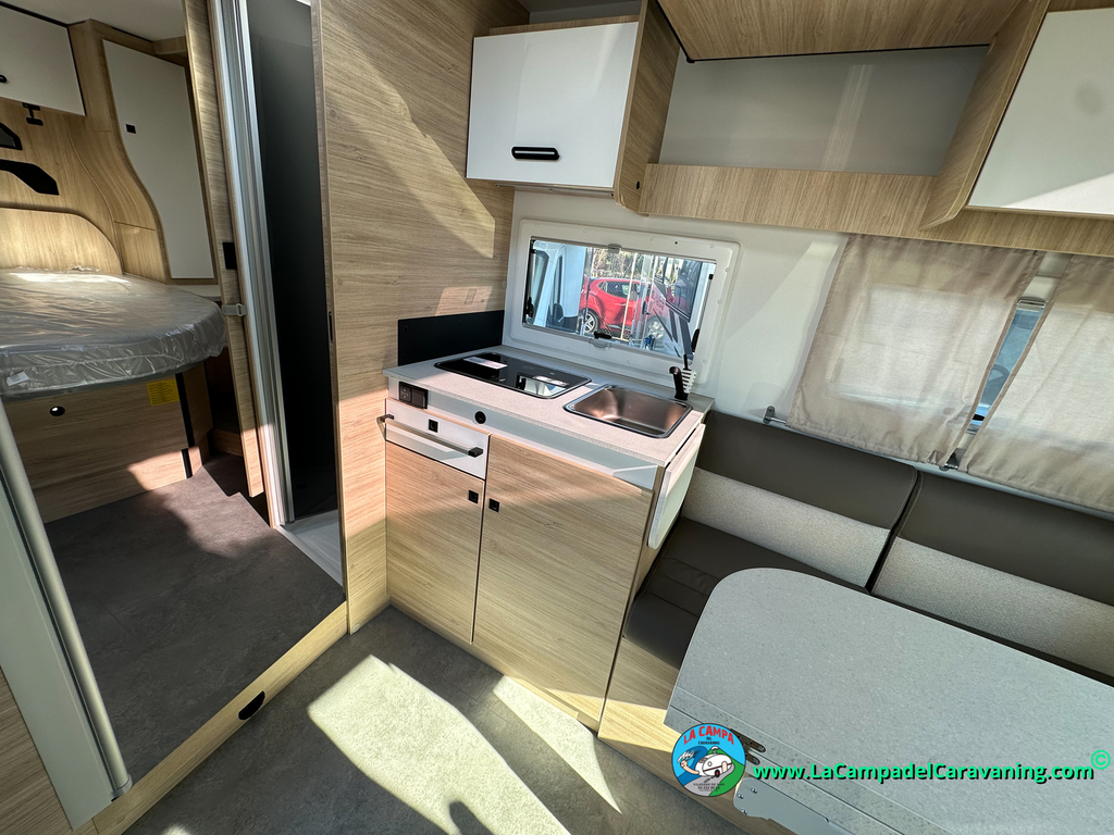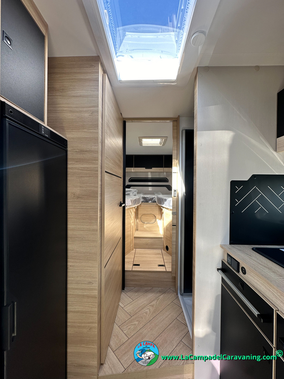 Nevera 150l. Wc y Ducha habatible semindependiente, luces de ambiente, led, Calefaccion gasoil, puerta vivienda con cierre centralizado, 3 claraboyas (1 Panoramica), Remis,