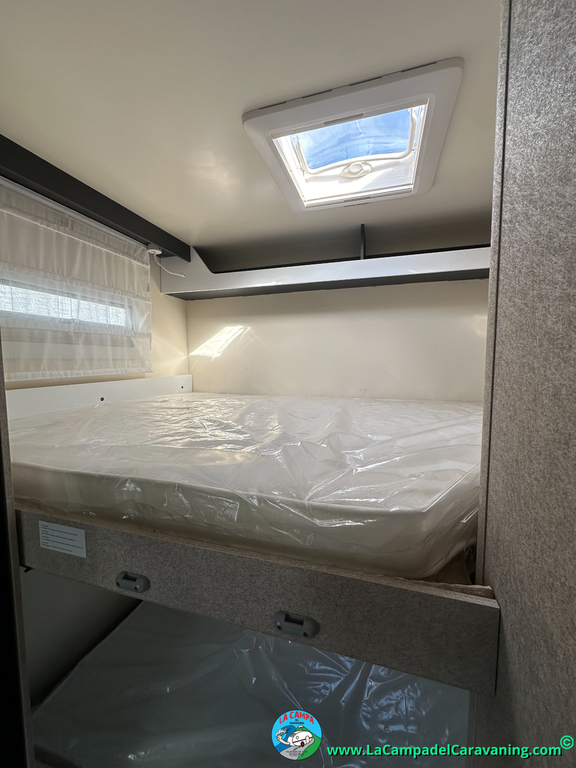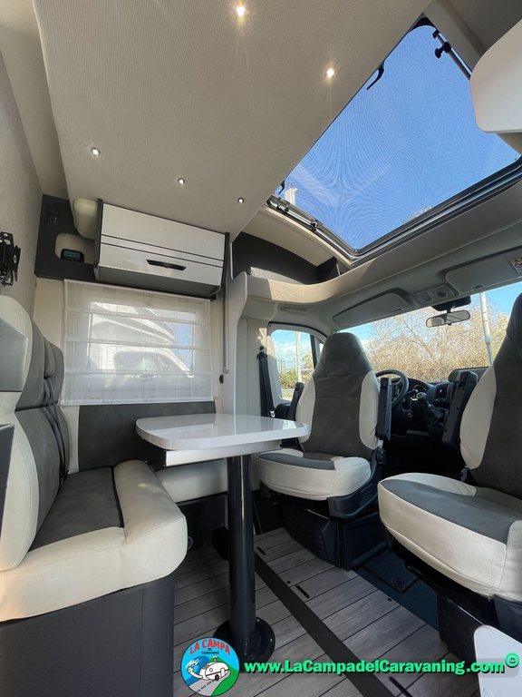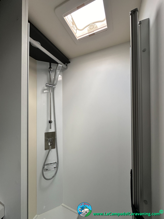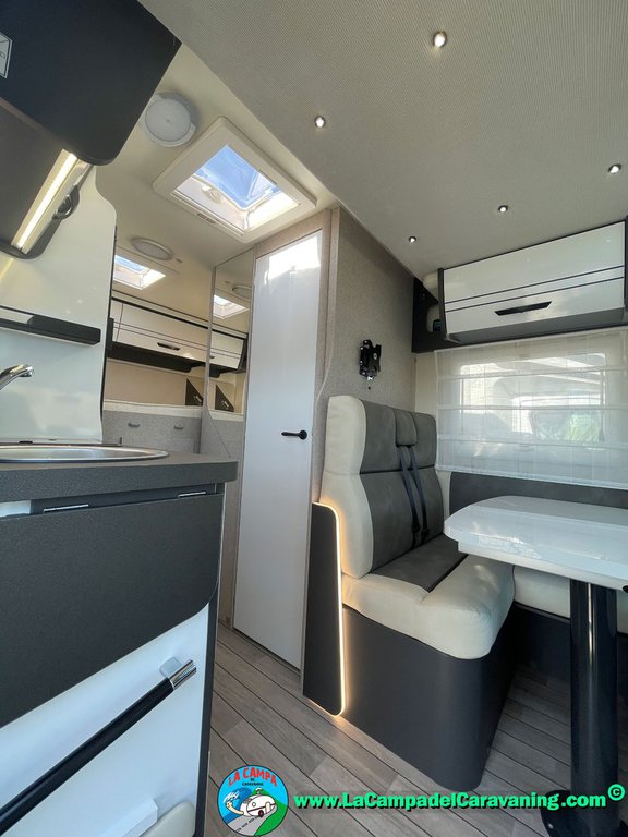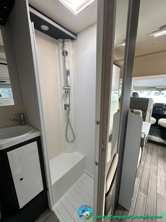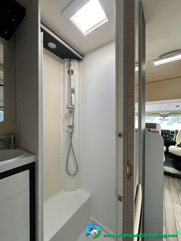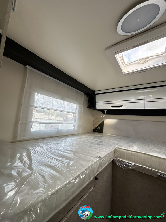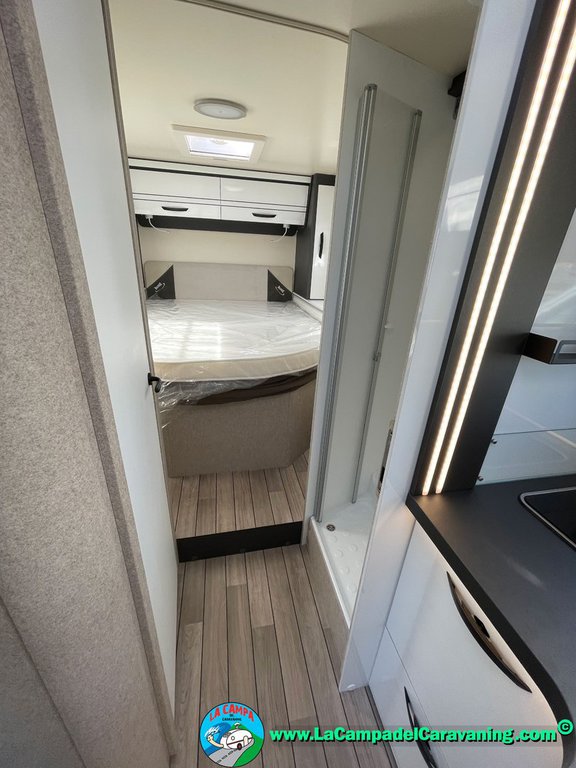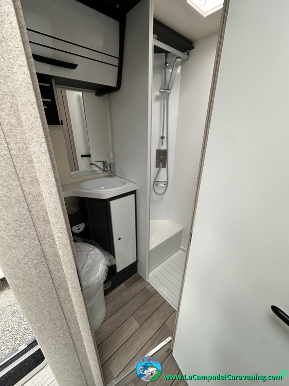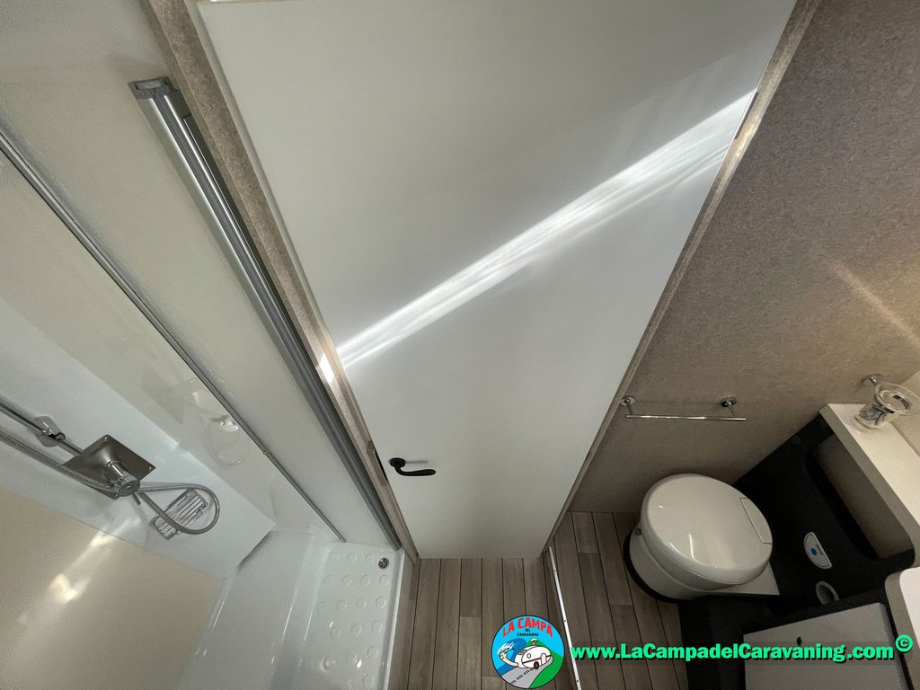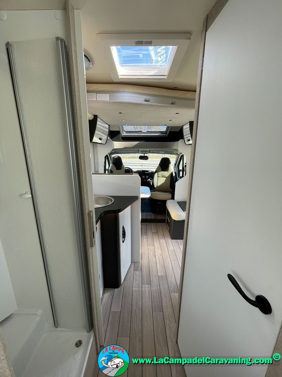 Nevera 150l. Wc y Ducha con mampara, luces de ambiente, led, boiler Truma gas, puerta vivienda XL con cierre centralizado, 3 claraboyas (1 Panoramica)