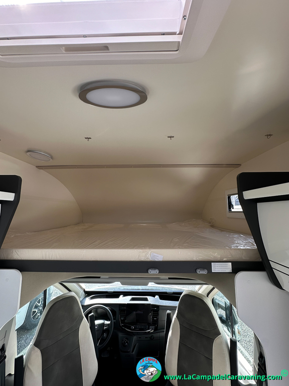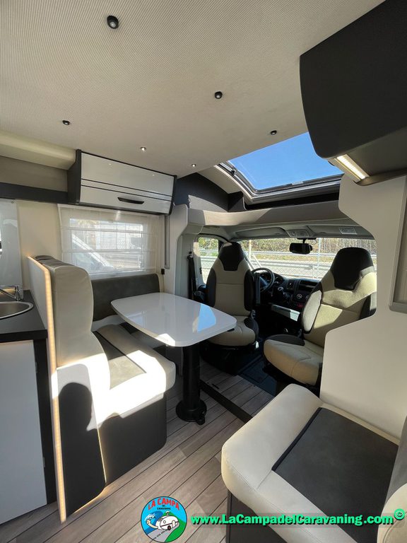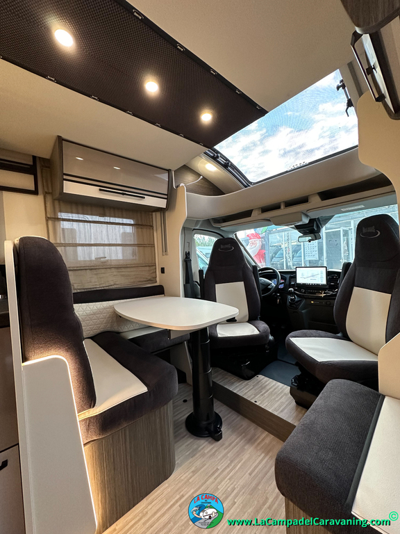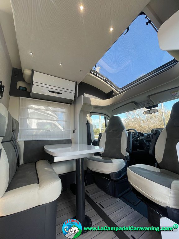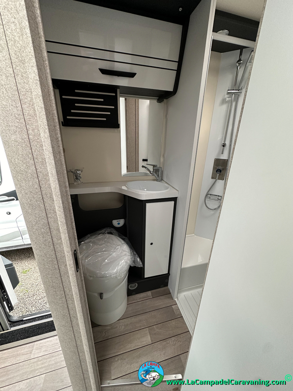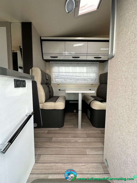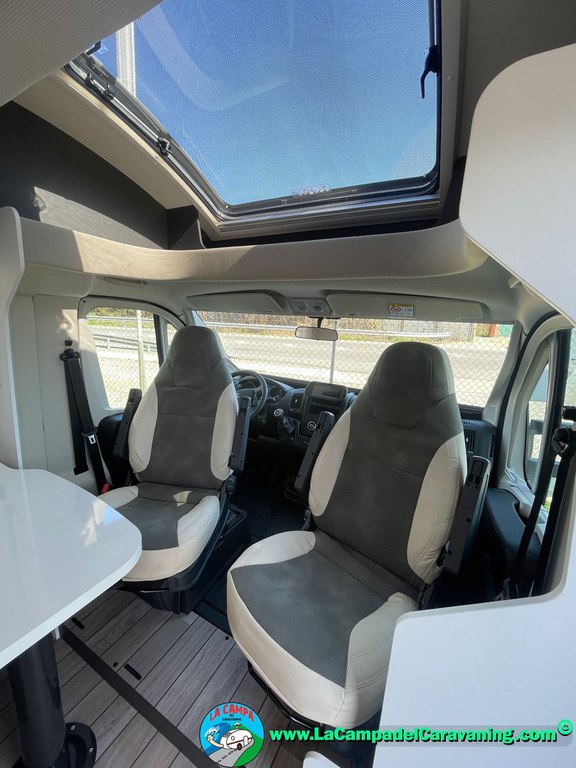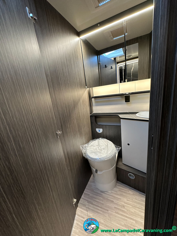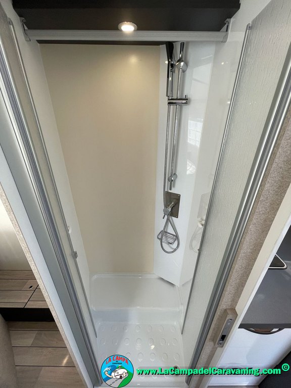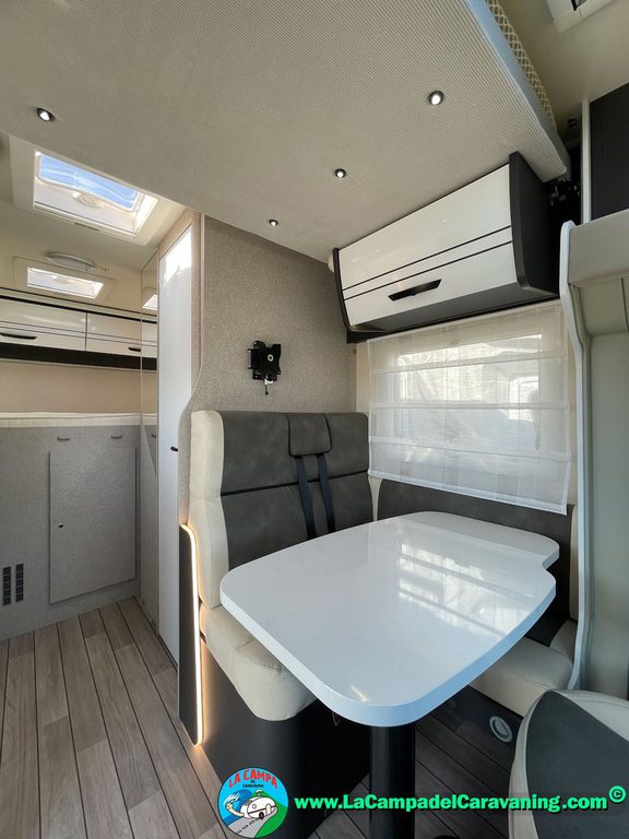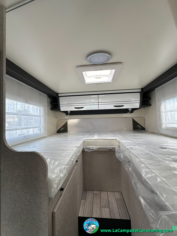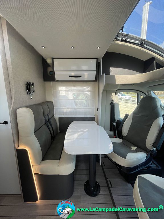 Nevera 150l. Wc y Ducha con mampara, luces de ambiente, led, boiler Truma gas, puerta vivienda XL con cierre centralizado, 3 claraboyas (1 Panoramica)