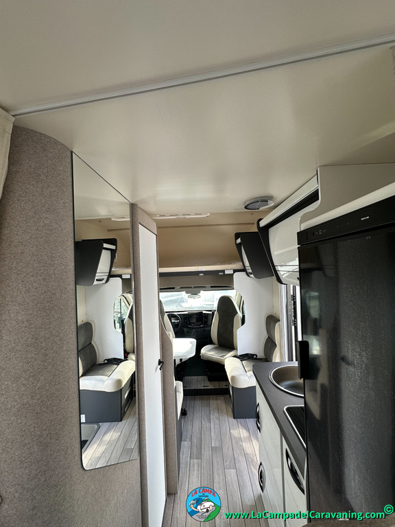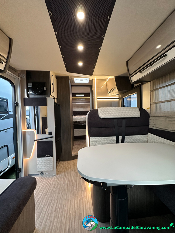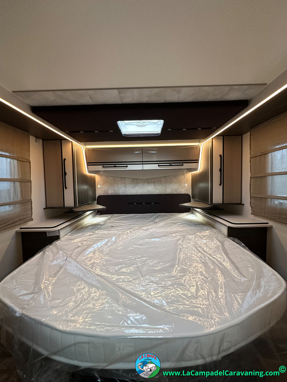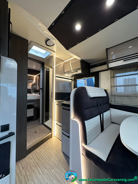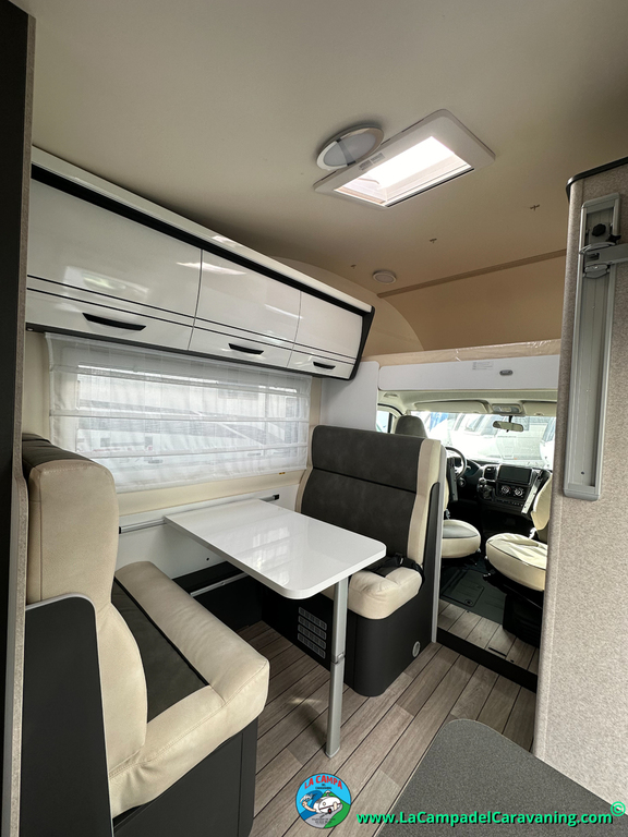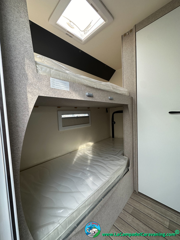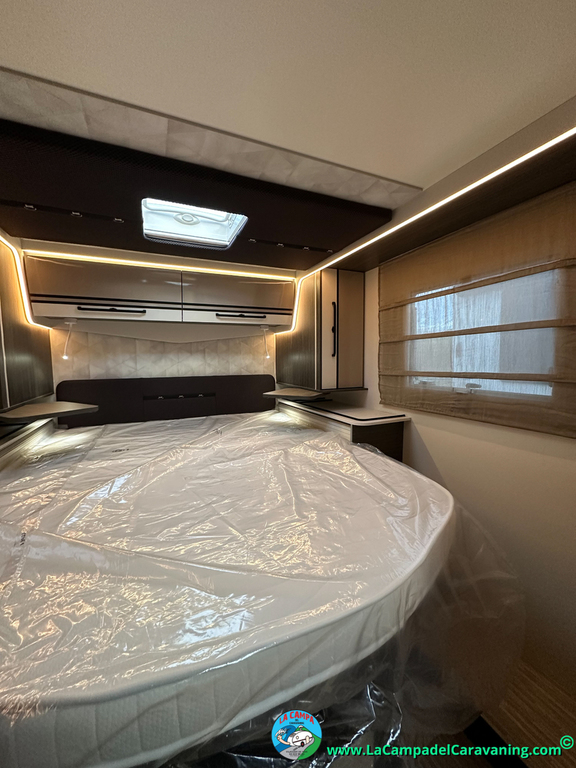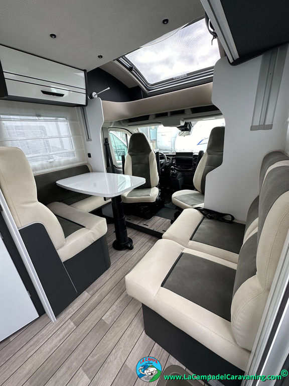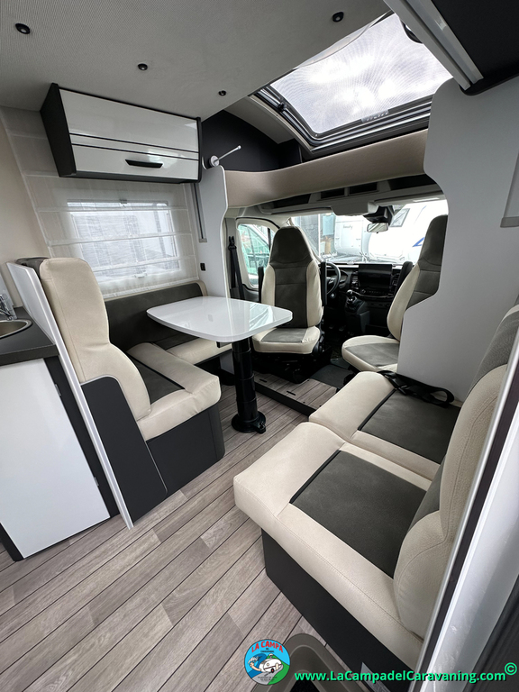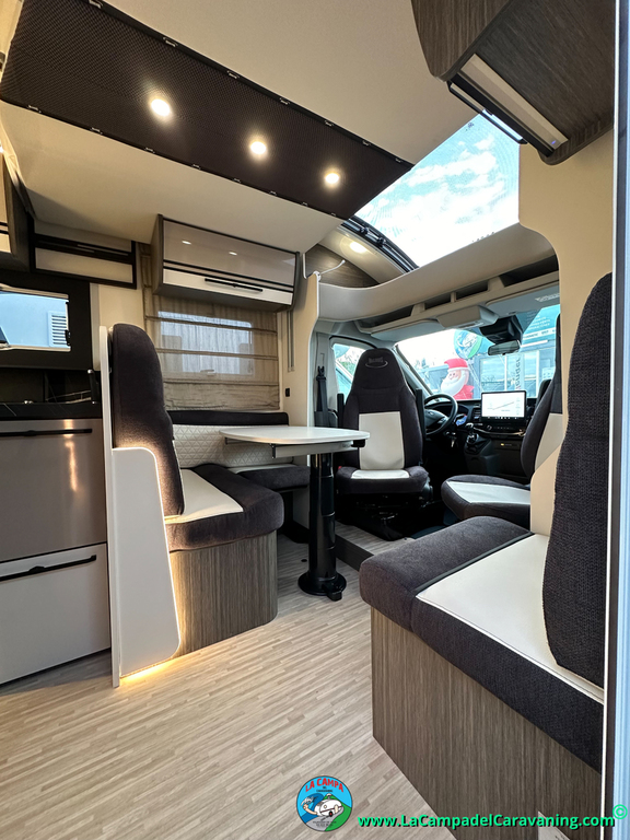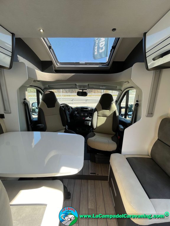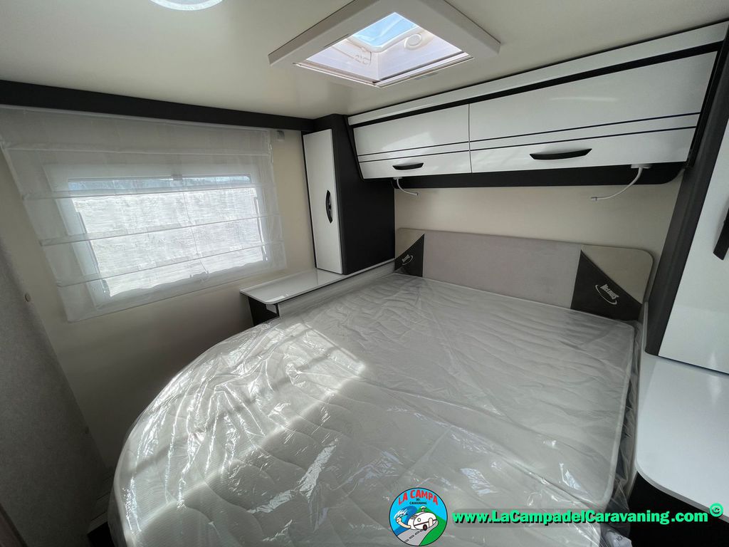 Nevera 150l. Wc y Ducha con mampara, luces de ambiente, led, boiler Truma gas, puerta vivienda XL con cierre centralizado, 3 claraboyas (1 Panoramica)