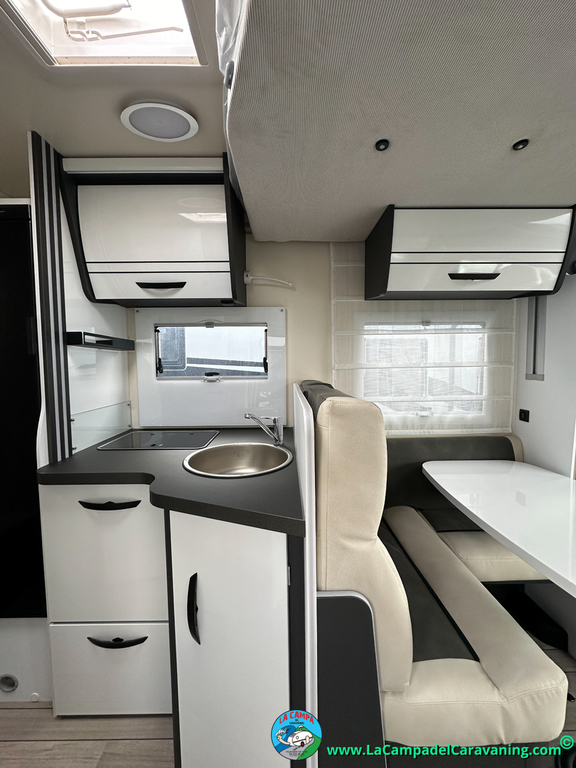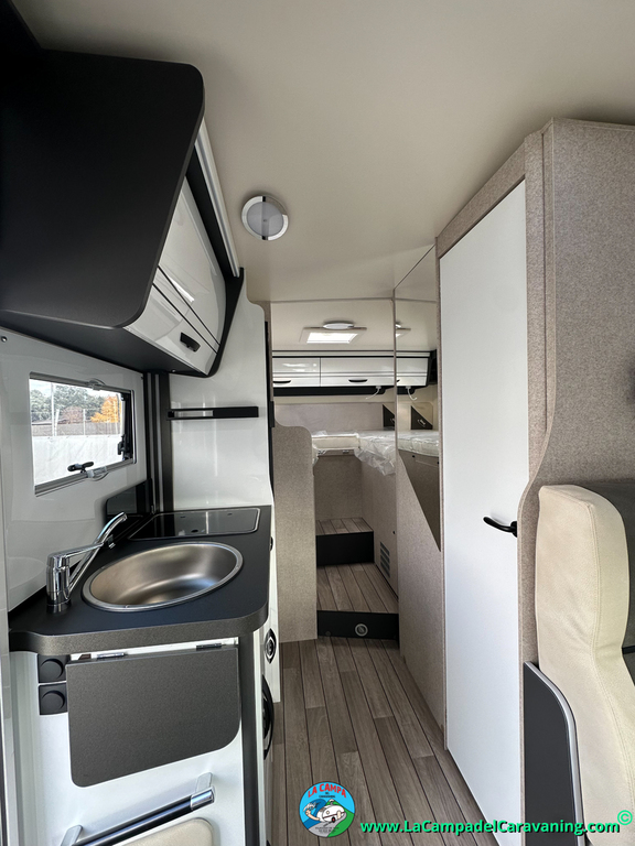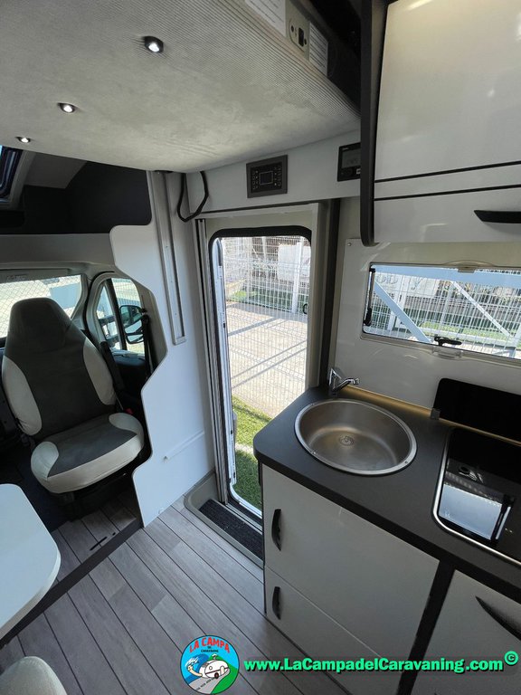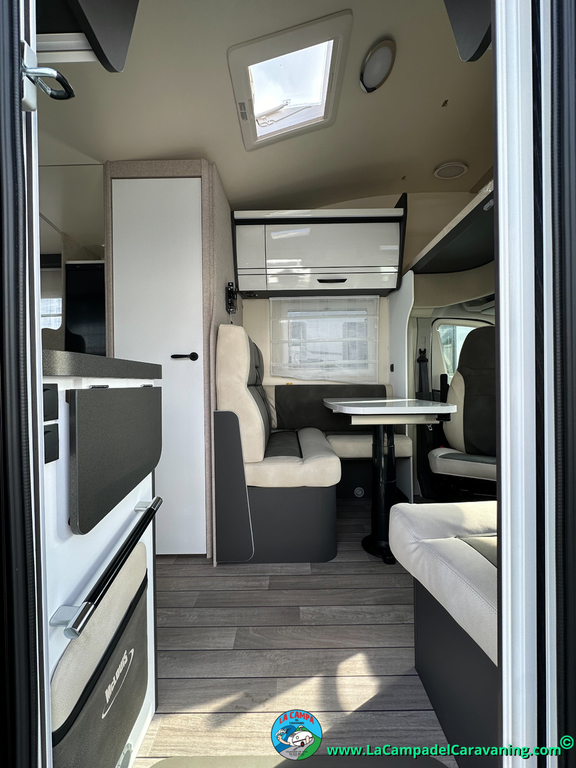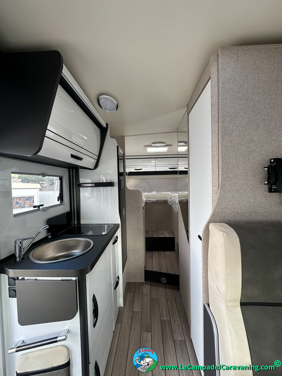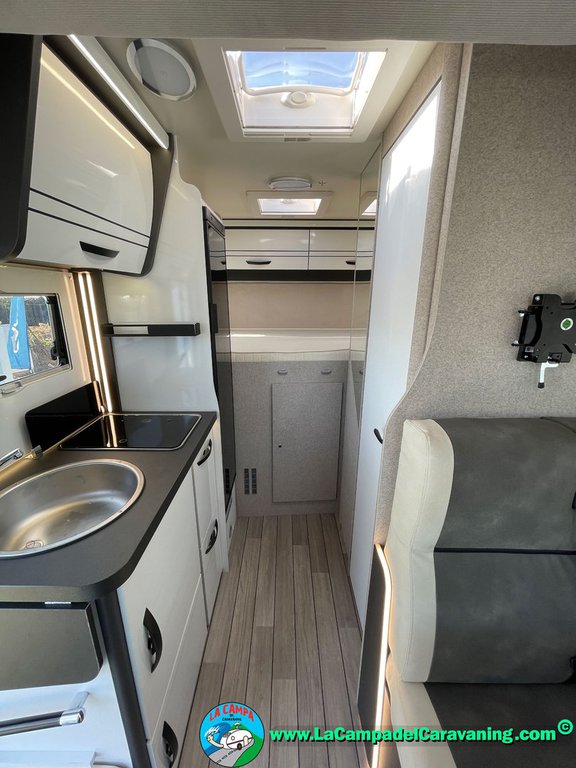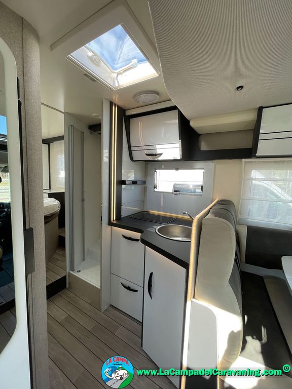 Nevera 150l. Wc y Ducha independiente con puerta de doble cierre, cocina en L. luces de ambiente, led, boiler Truma gas, puerta vivienda con cierre centralizado, 3 claraboyas (1 Panoramica)