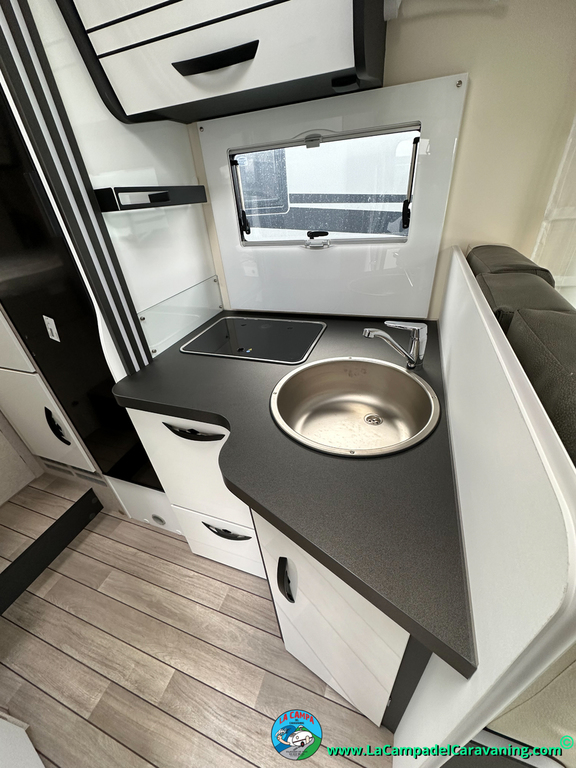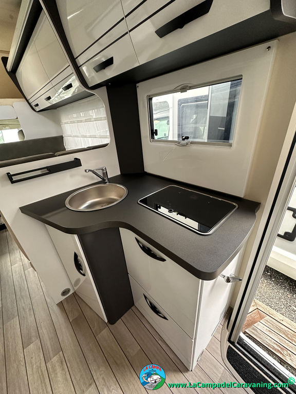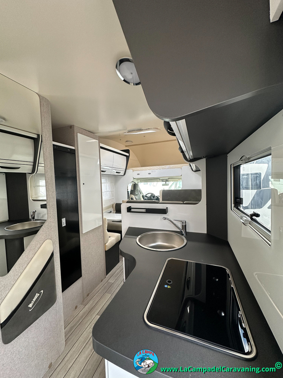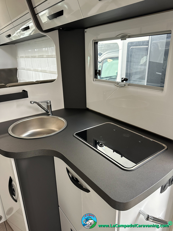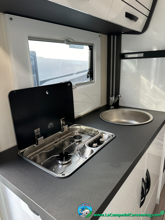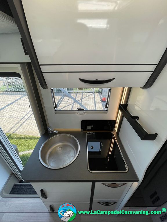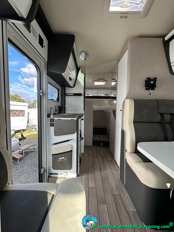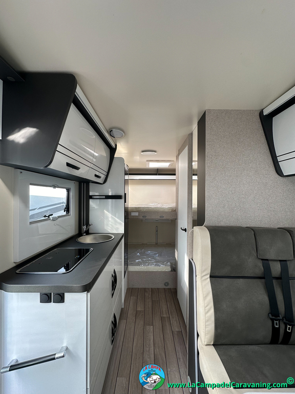 Nevera 150l. Wc y Ducha independiente con puerta de doble cierre, cocina en L. luces de ambiente, led, boiler Truma gas, puerta vivienda con cierre centralizado, 3 claraboyas (1 Panoramica)