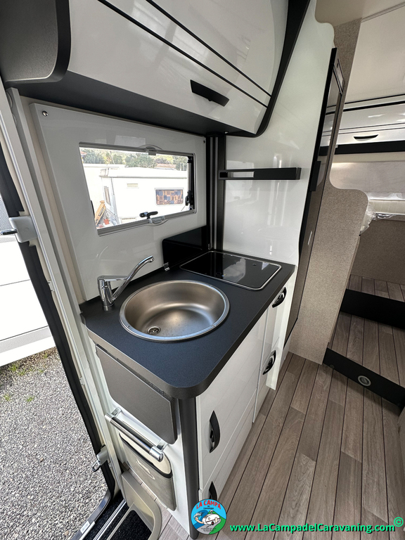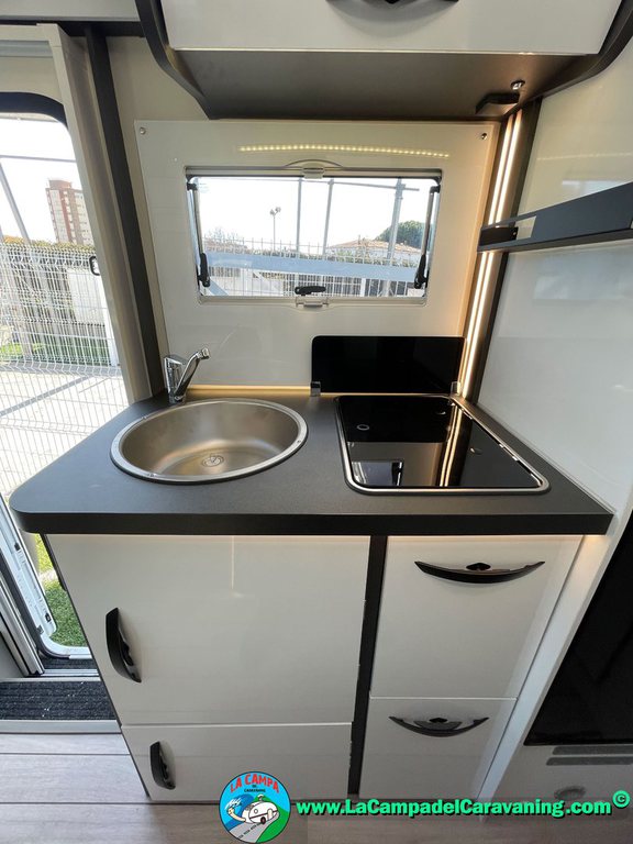 Nevera 150l. Wc con Ducha separada dentro del mismo modulo, cocina en L. luces de ambiente, led, boiler Truma gas, (posibilidad de gasoil (extra y bajo disponibilidad)) puerta vivienda con cierre centralizado, 3 claraboyas (1 Panoramica). y muchos extras +