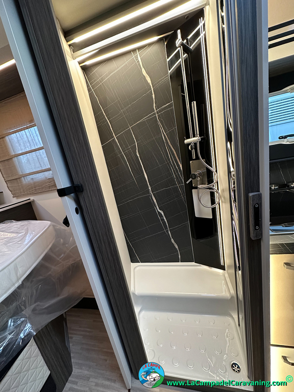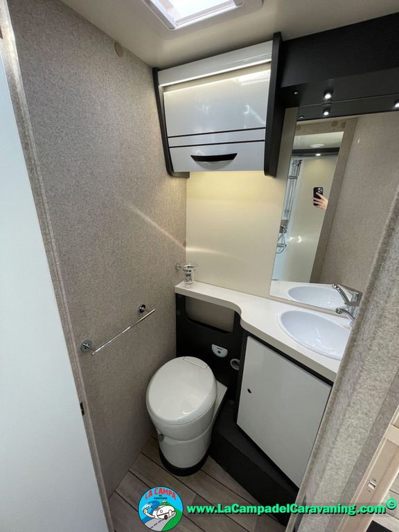 Nevera 150l. Wc con Ducha separada dentro del mismo modulo, luces de ambiente, led, boiler Truma gas, puerta vivienda con cierre centralizado, 3 claraboyas (1 Panoramica) y muchos extras +