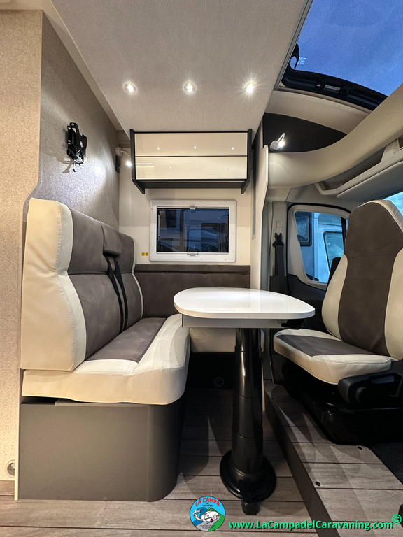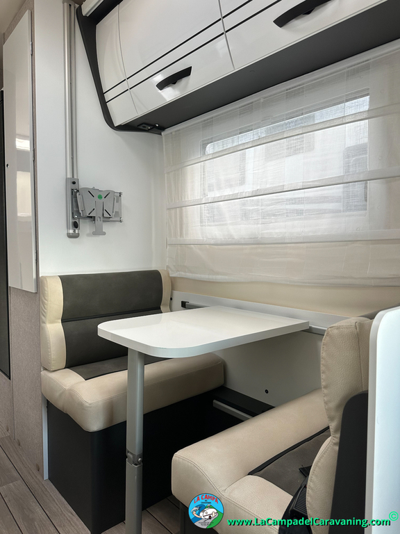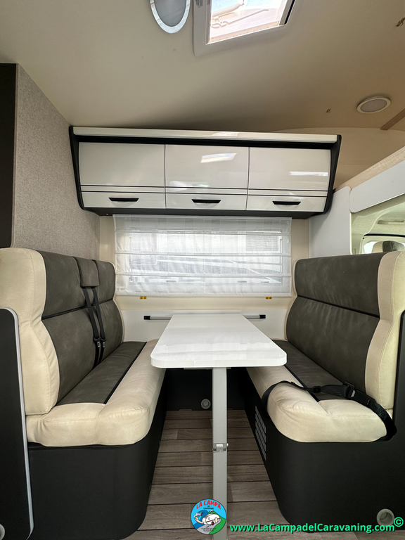 1 Comedor amplio con asientos giratorios del furgón (posibilidad de pedir el extra de transformacion para una 4ª cama)