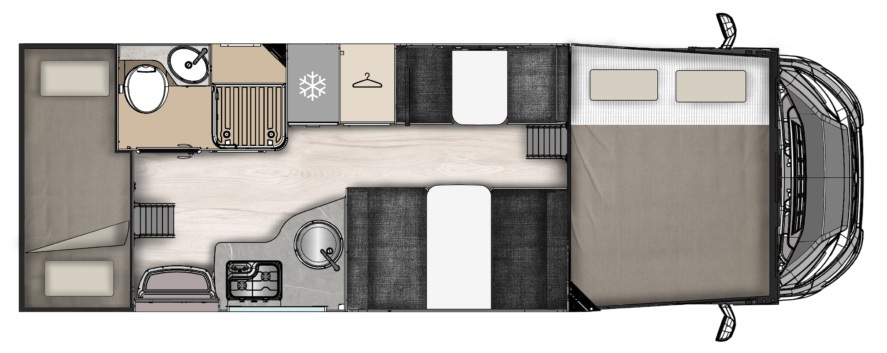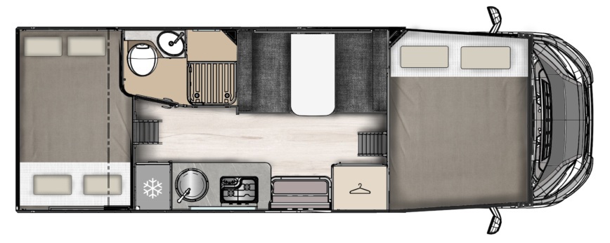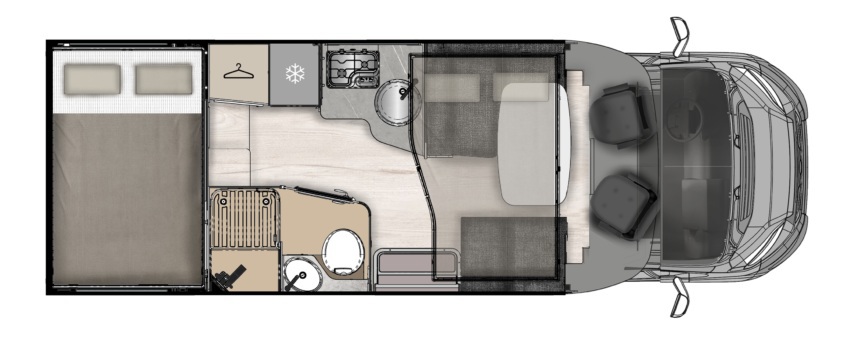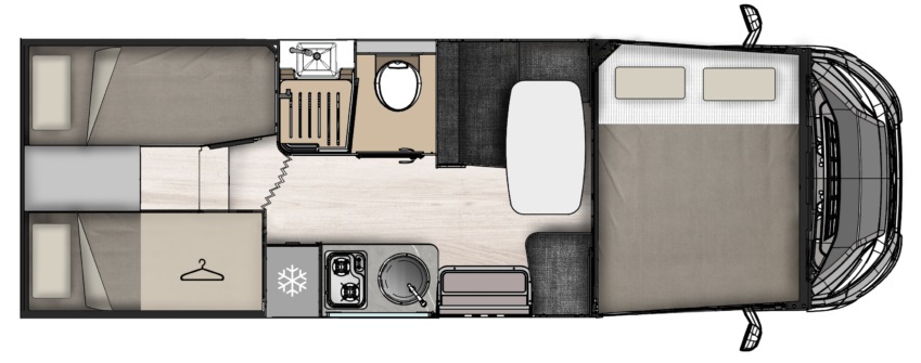 Autocaravana con cuerpo de camper. Camper con interior de autocaravana. Los modelos SLIM tienen las medidas y anchura de una camper con la distribucion y ventajas de una autocaravana