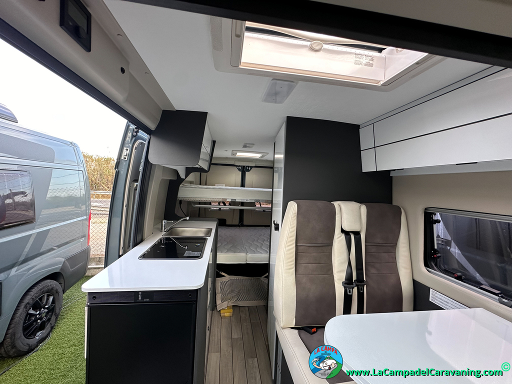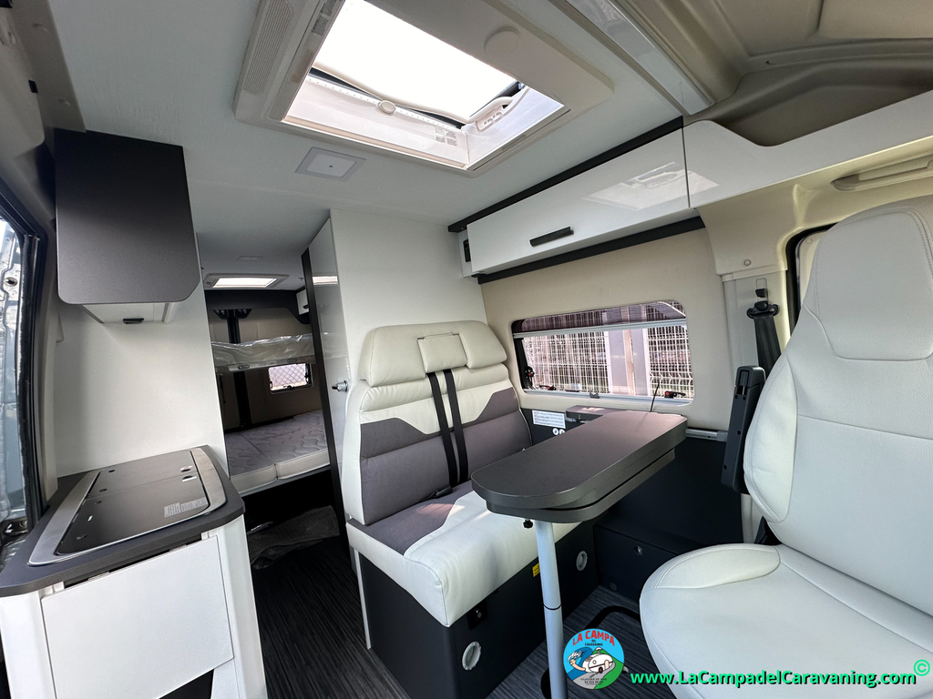 Nevera de compresor de 84L (se puede girar hasta 180º), Pasillo más ancho, Aire Acondicionado en cabina, Luces led, Calefaccion gasoil, Mosquitera en puerta corredera, Remis y mucho mas...