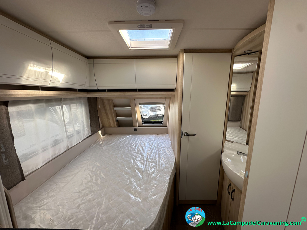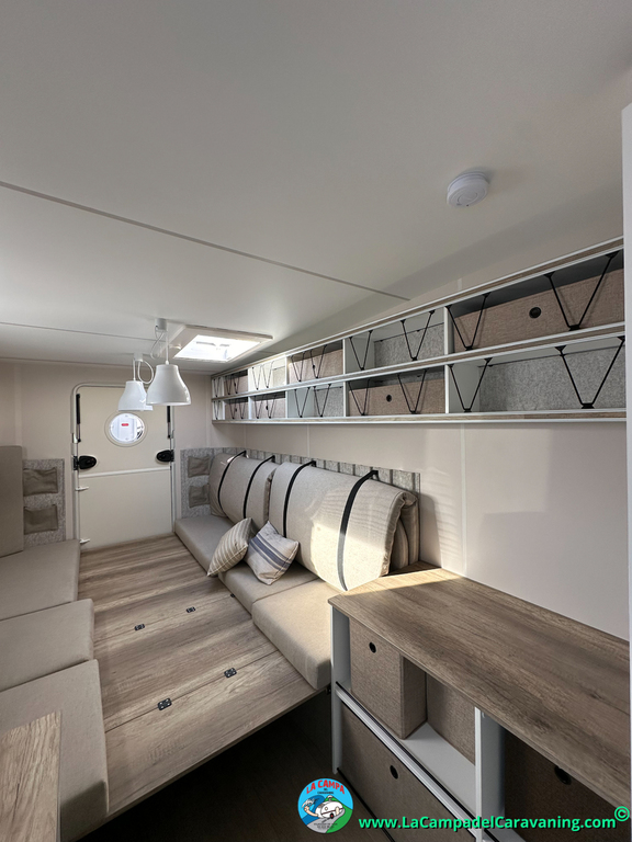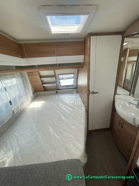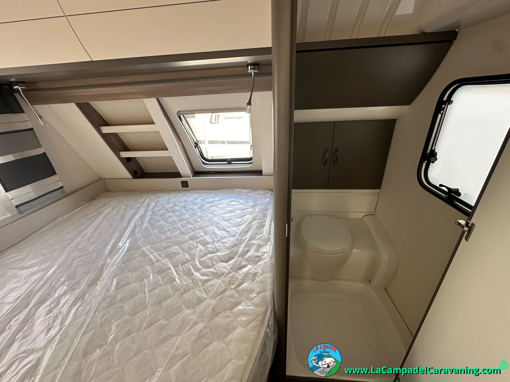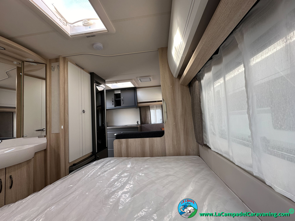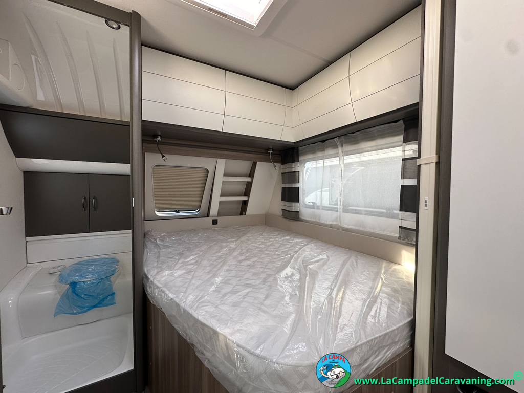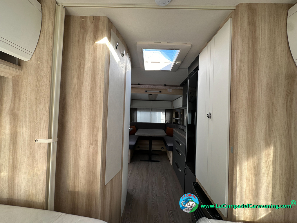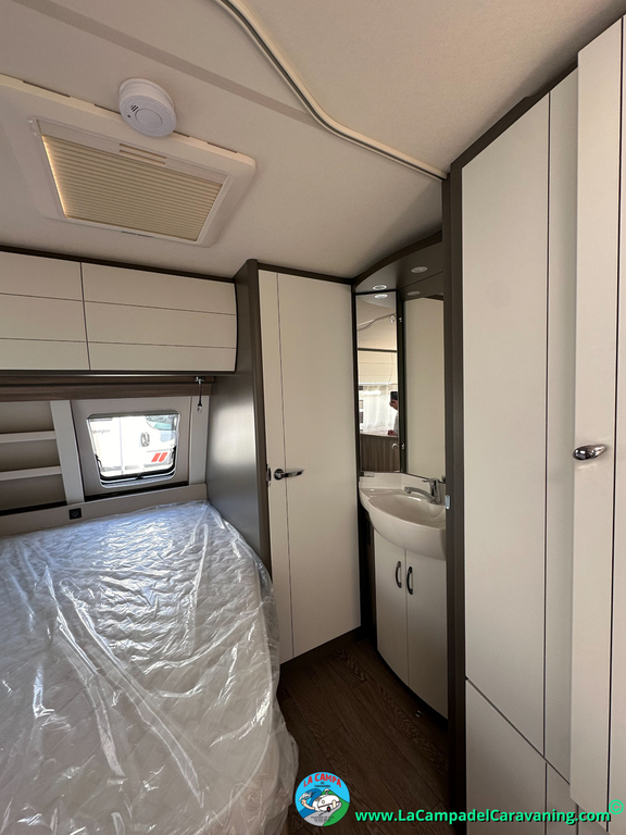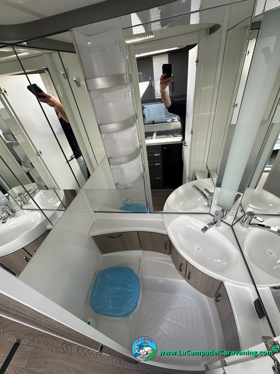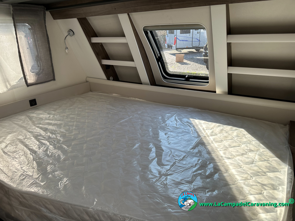 A destacar su baño con ducha independiente enorme. Un baño que enamora. Si buscas caravana y poder ducharte en ella con tu familia es de lo mas polivalente. Apta para parejas y familias con niños