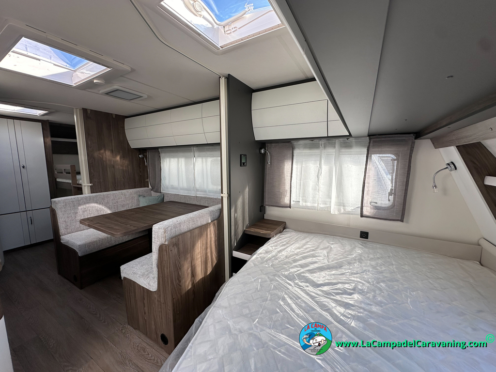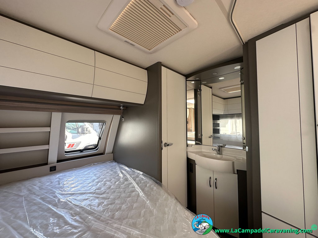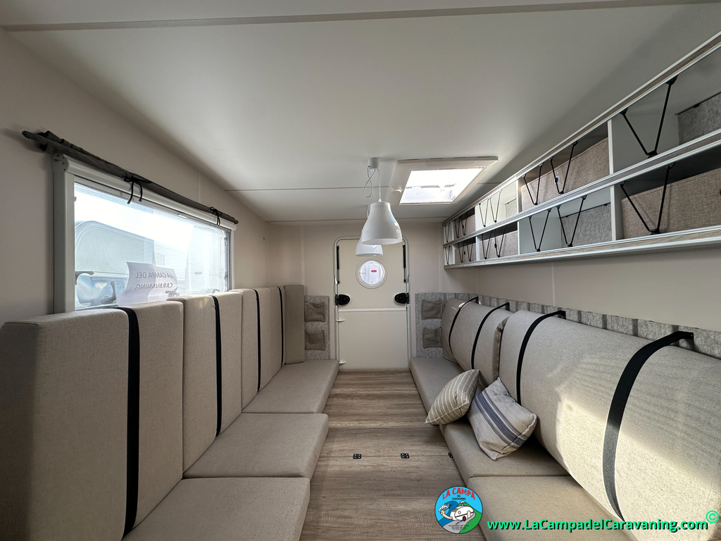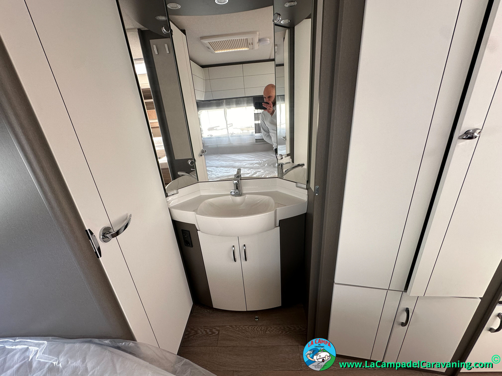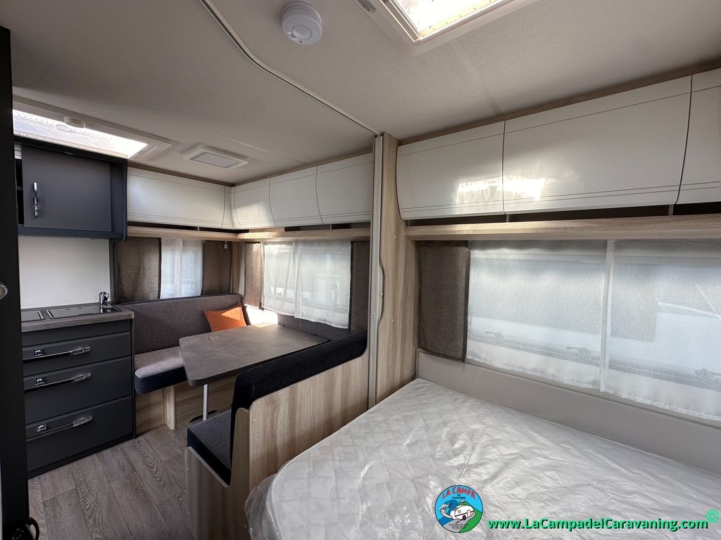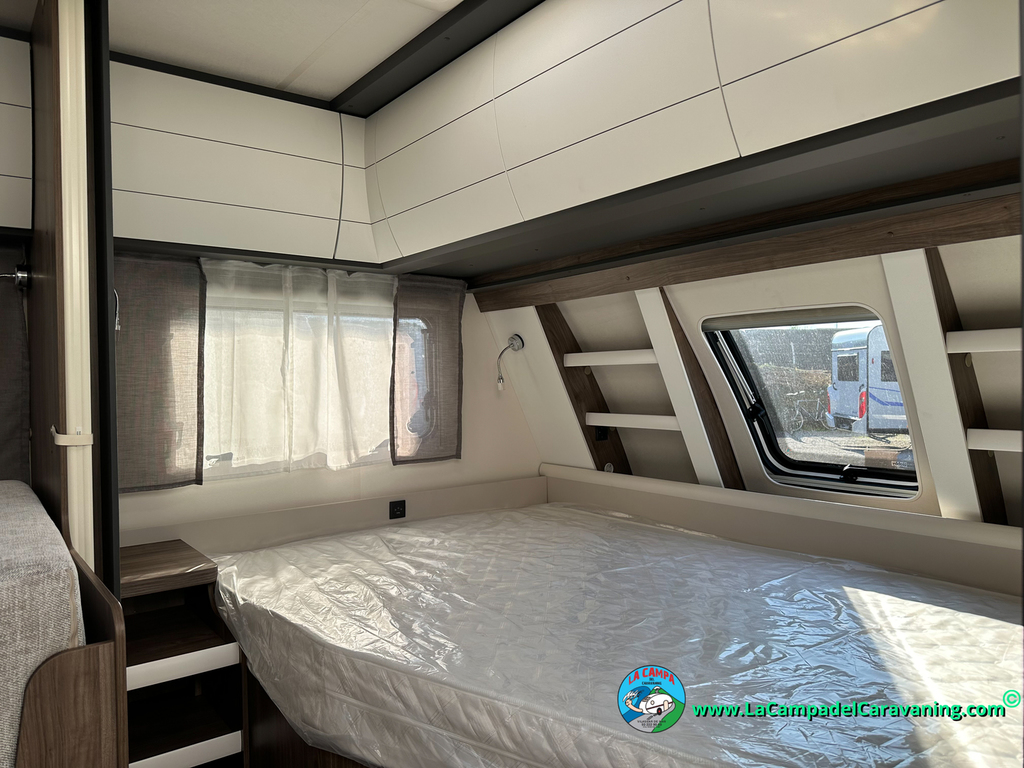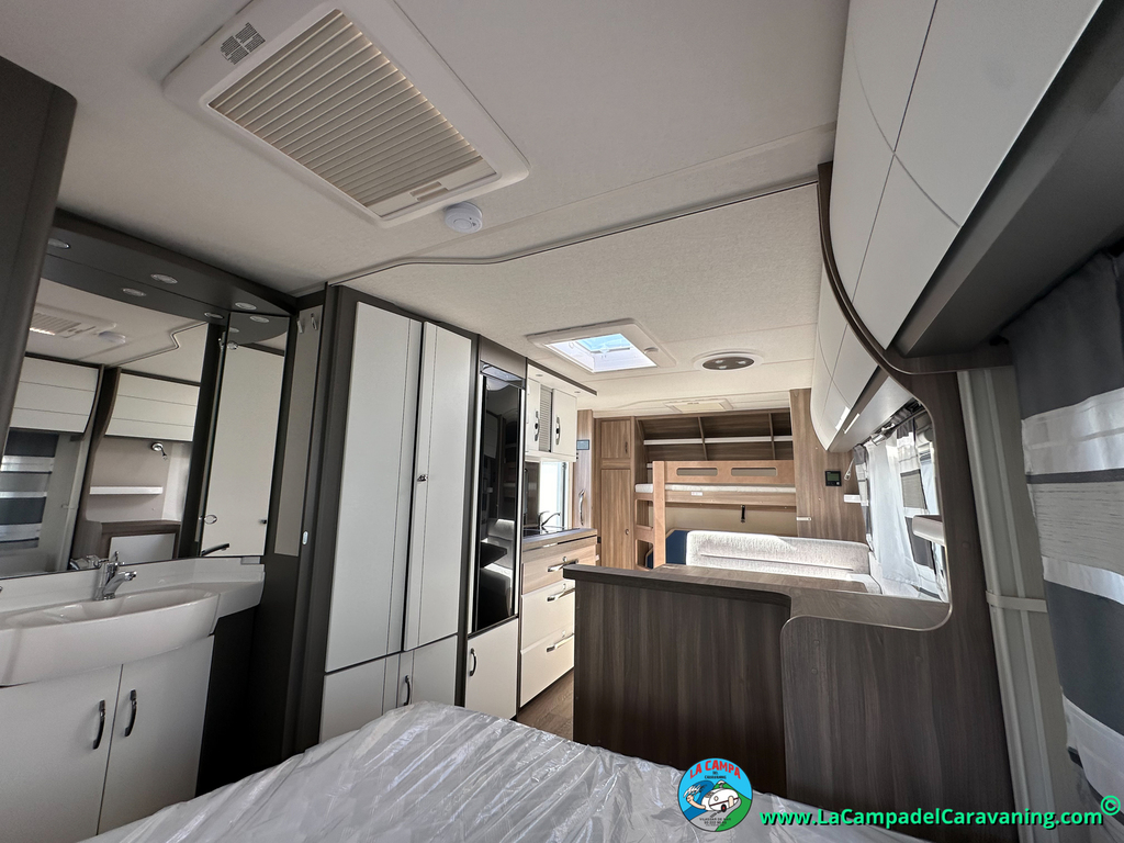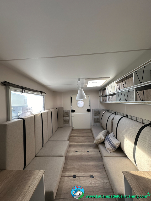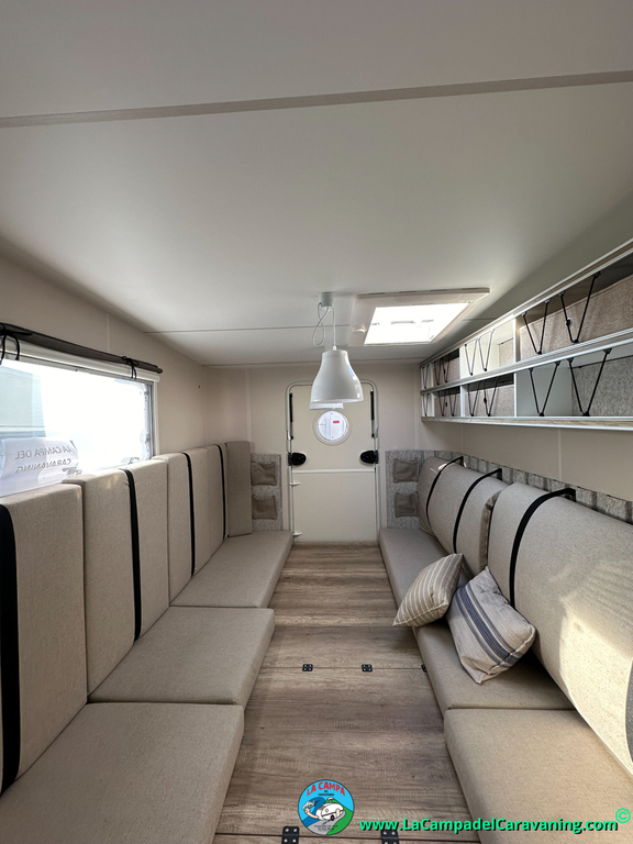A destacar su baño con ducha independiente enorme. Un baño que enamora. Si buscas caravana y poder ducharte en ella con tu familia es de lo mas polivalente. Apta para parejas y familias con niños