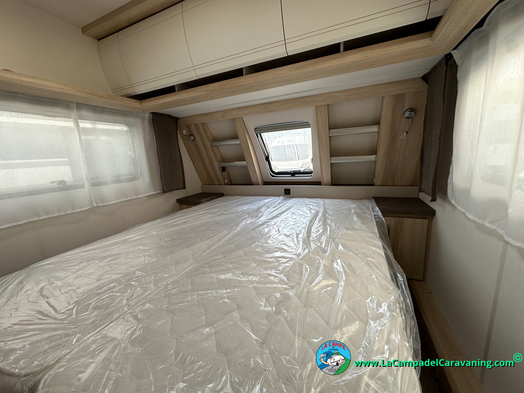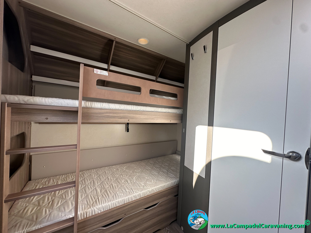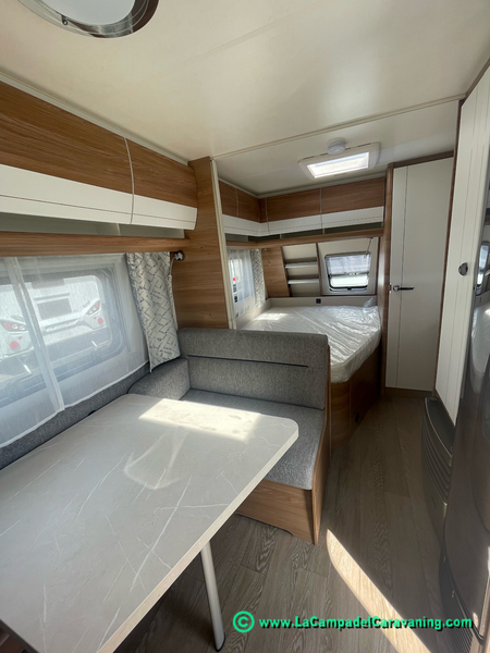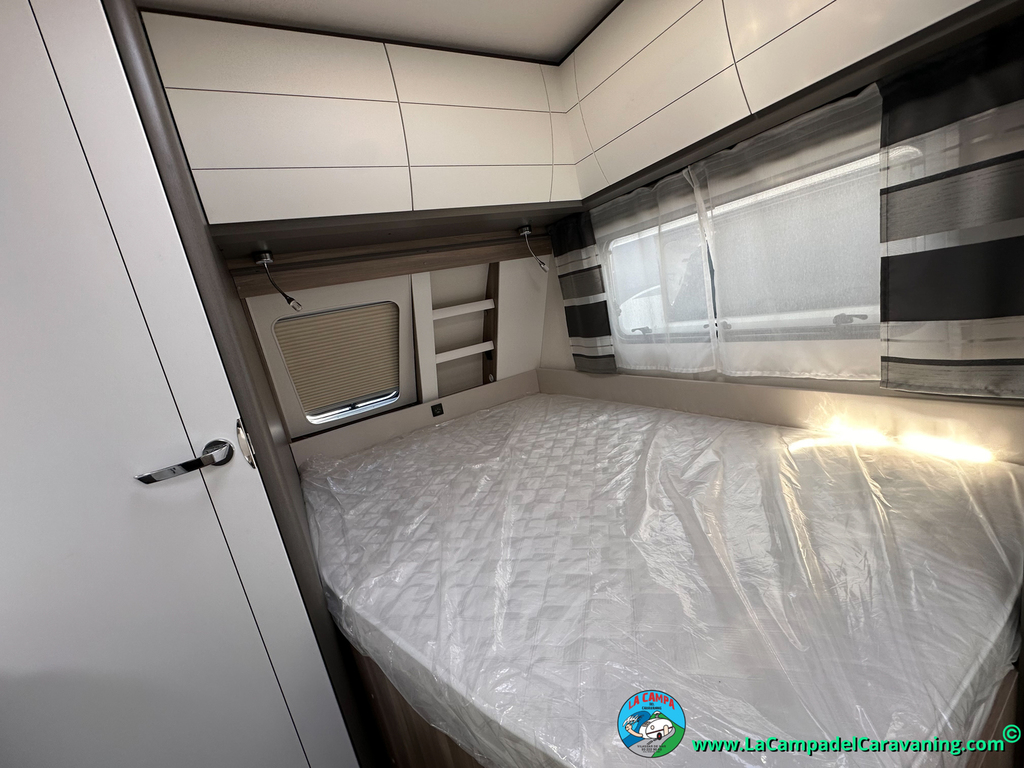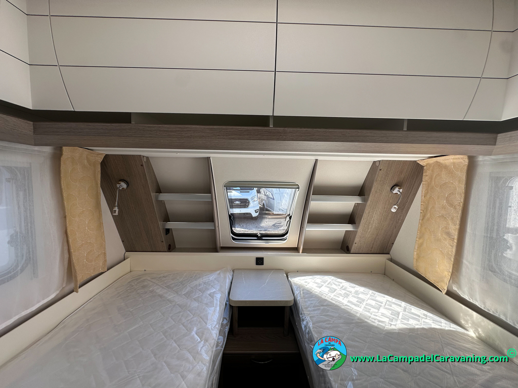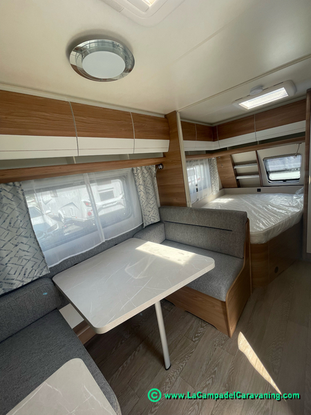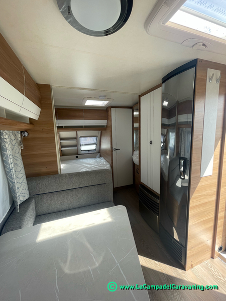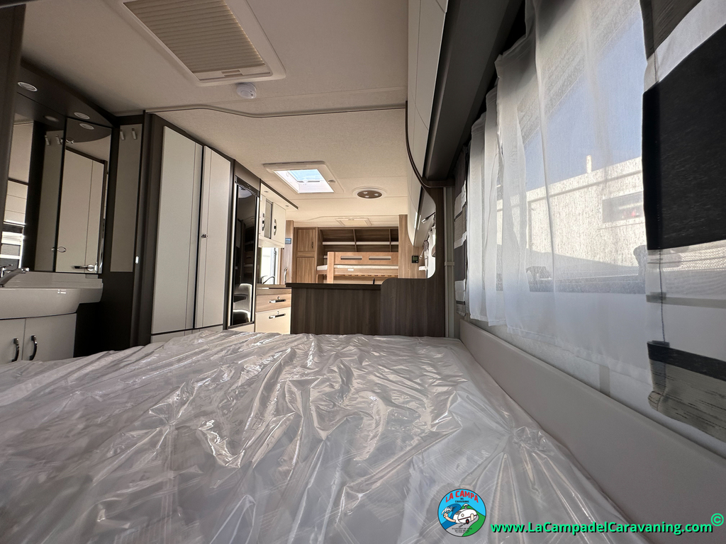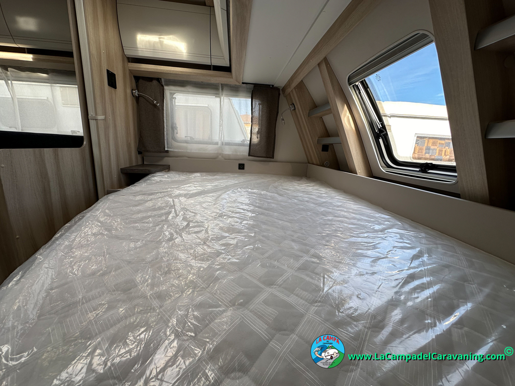 A destacar su baño con ducha independiente enorme. Un baño que enamora. Si buscas caravana y poder ducharte en ella con tu familia es de lo mas polivalente. Apta para parejas y familias con niños
