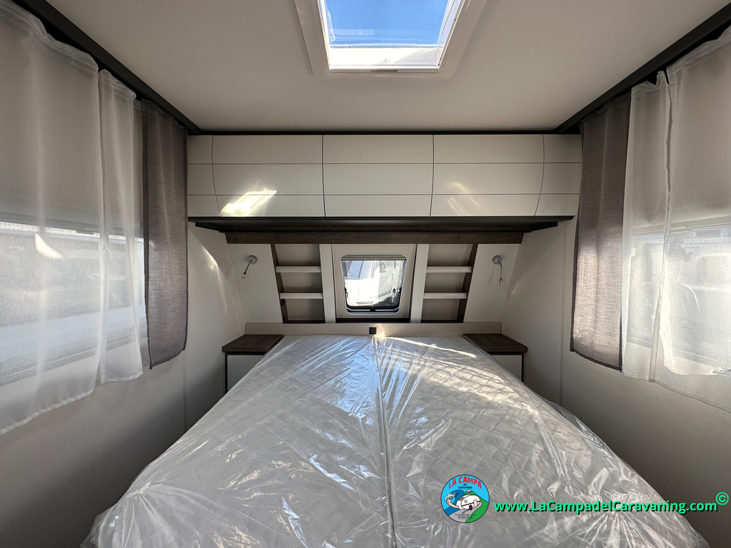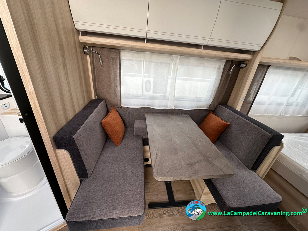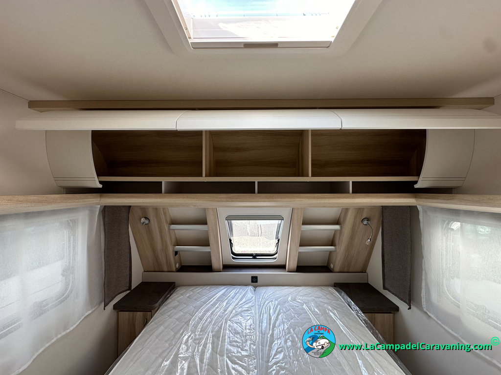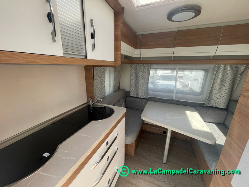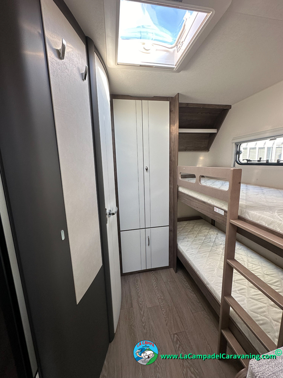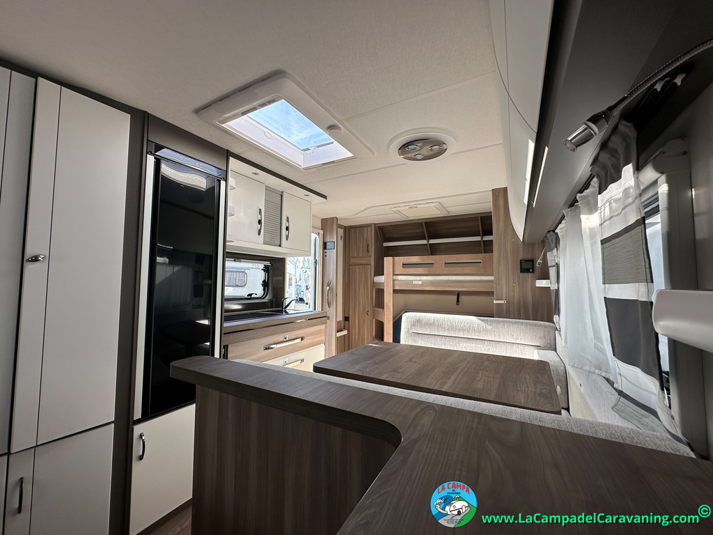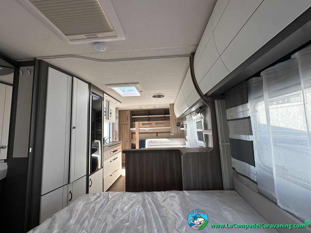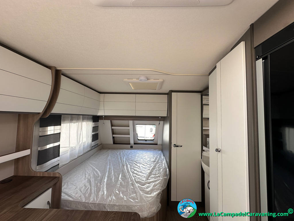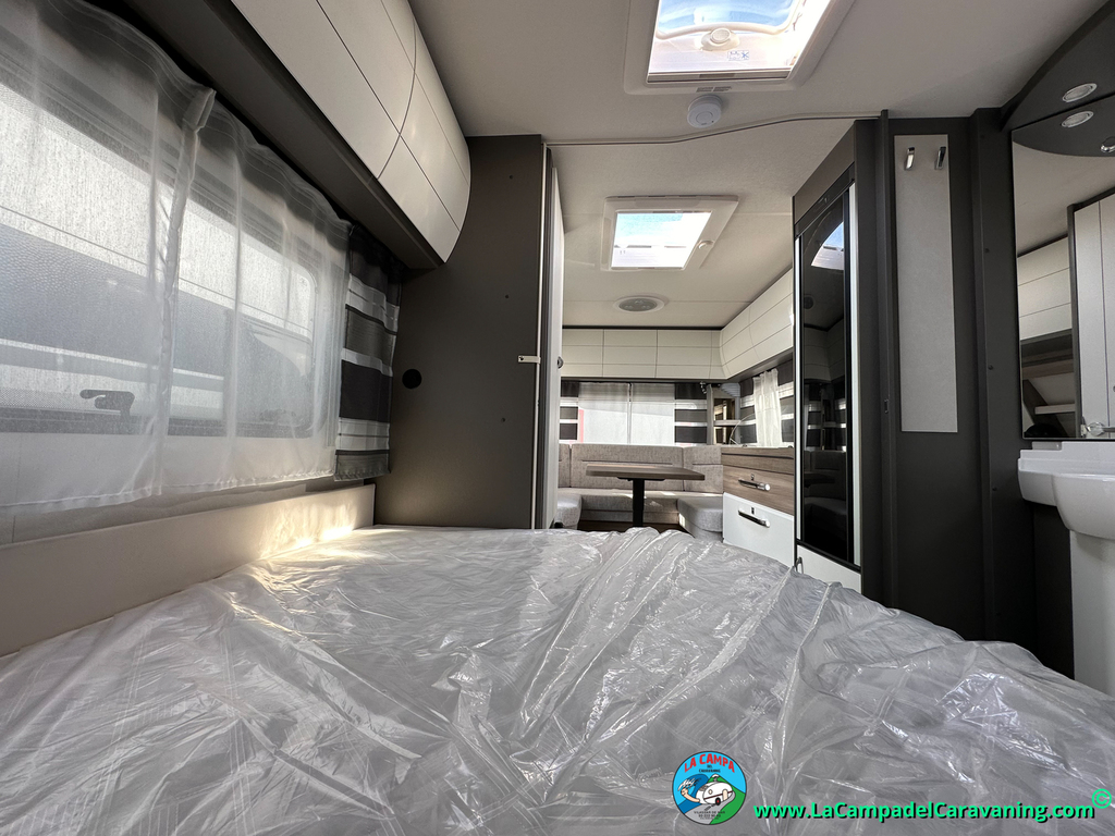 A destacar su baño con ducha independiente enorme. Un baño que enamora. Si buscas caravana y poder ducharte en ella con tu familia es de lo mas polivalente. Apta para parejas y familias con niños