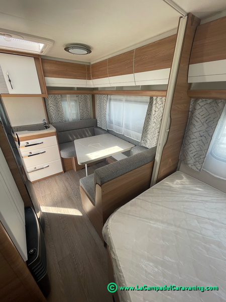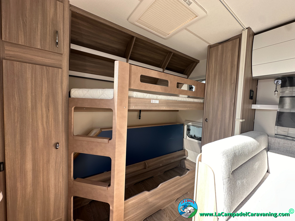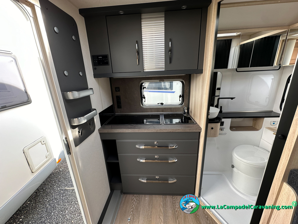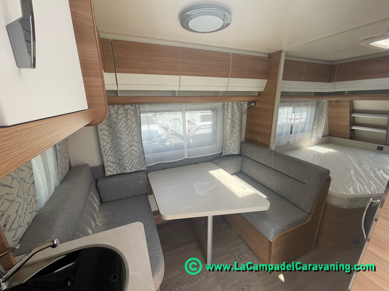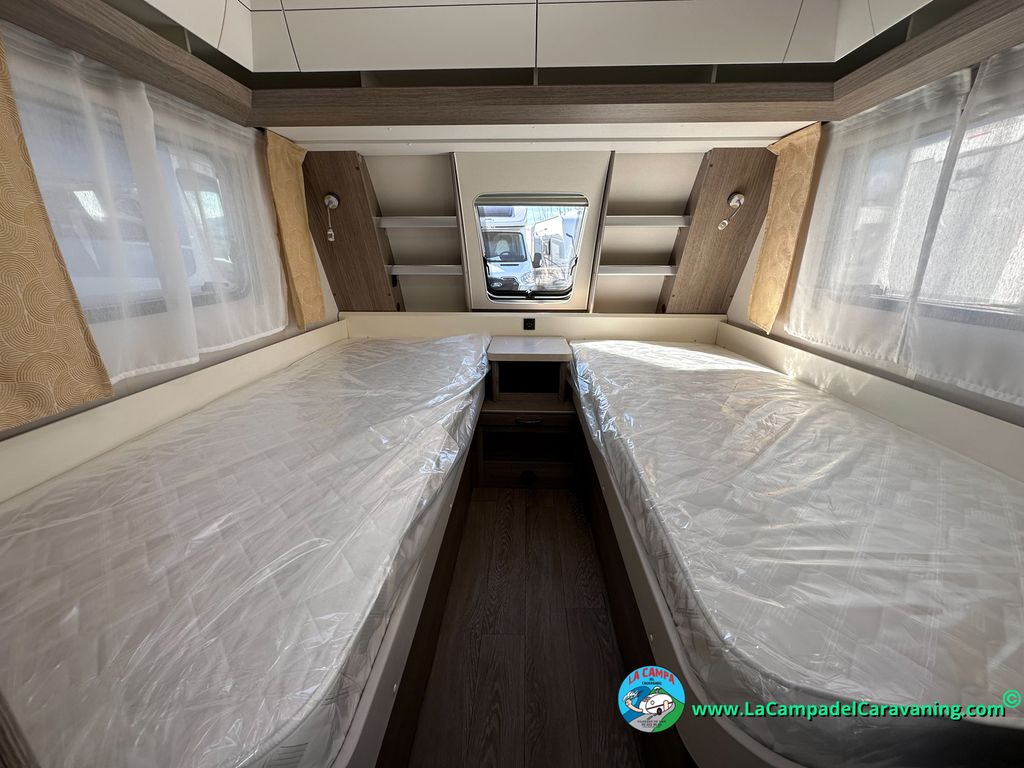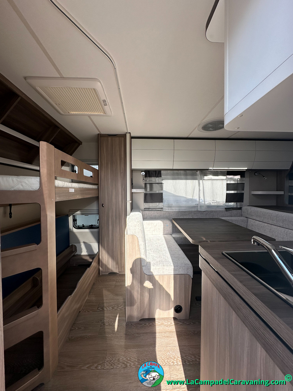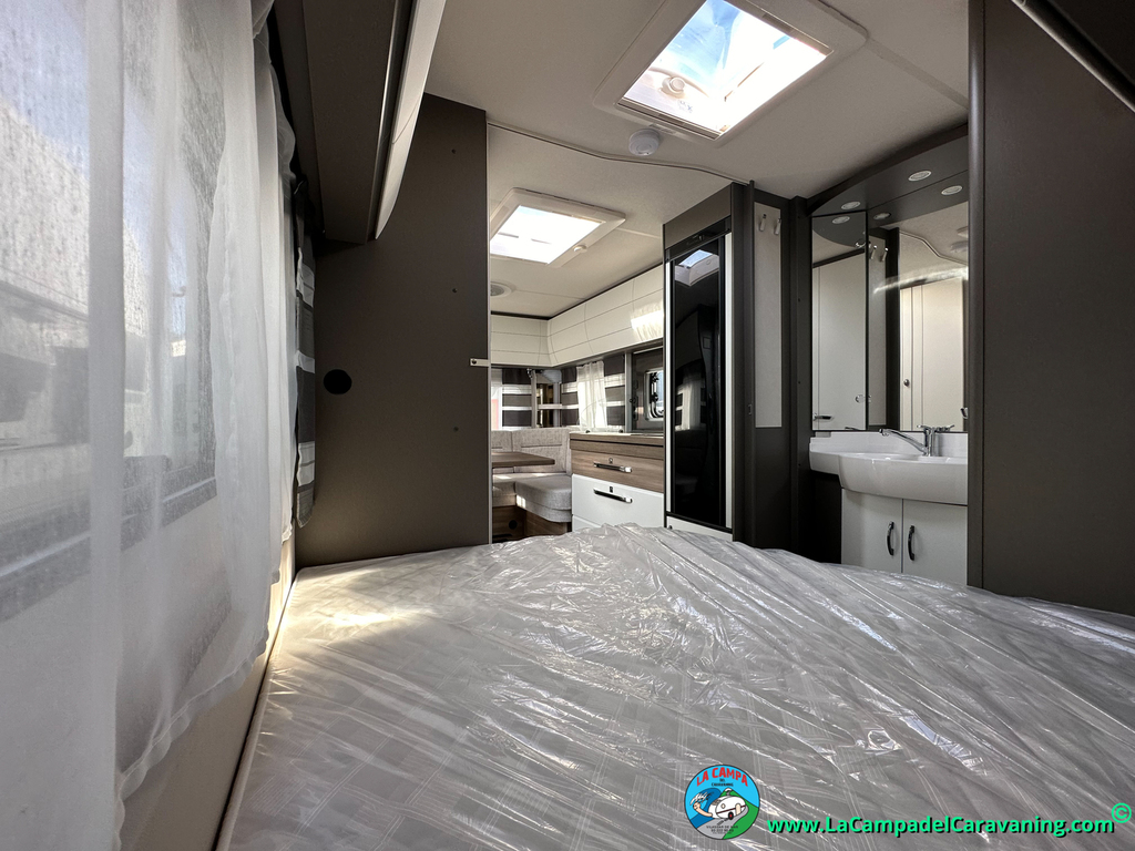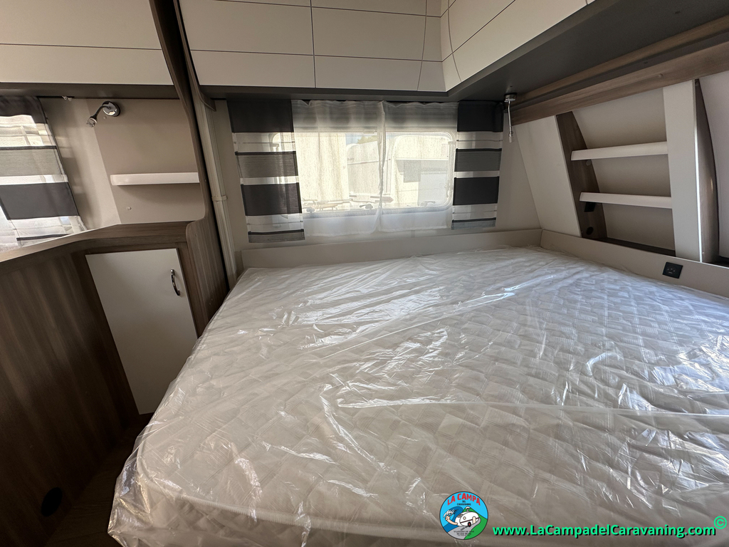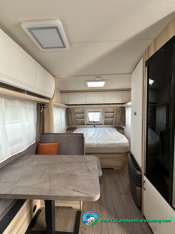 A destacar su baño con ducha independiente enorme. Un baño que enamora. Si buscas caravana y poder ducharte en ella con tu familia es de lo mas polivalente. Apta para parejas y familias con niños