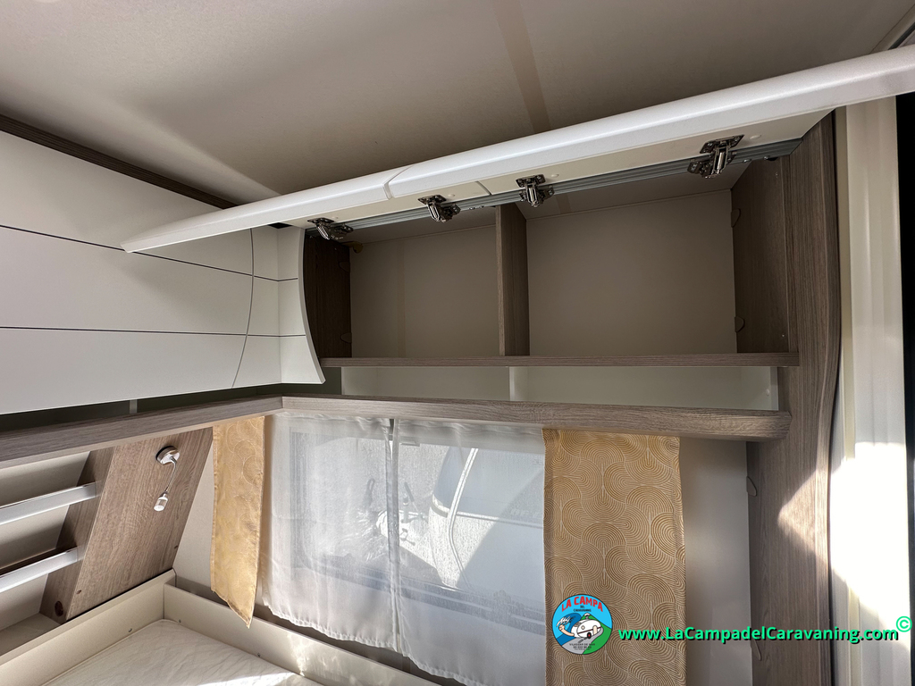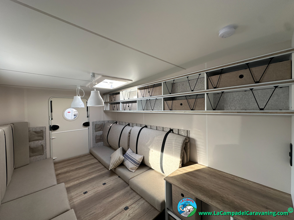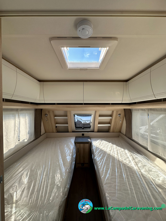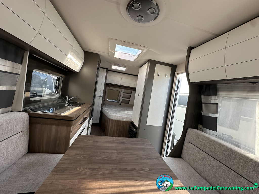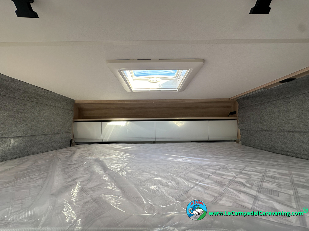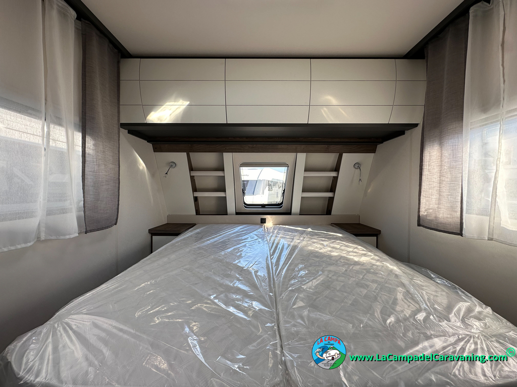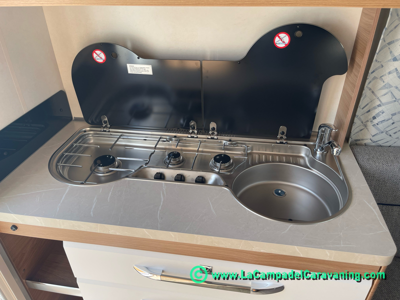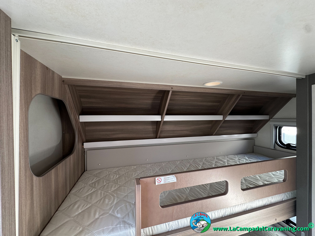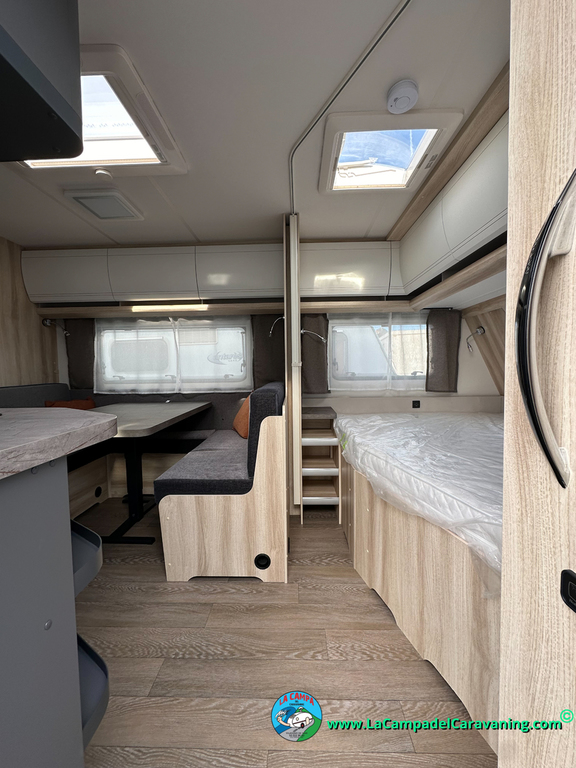 A destacar su baño con ducha independiente enorme. Un baño que enamora. Si buscas caravana y poder ducharte en ella con tu familia es de lo mas polivalente. Apta para parejas y familias con niños