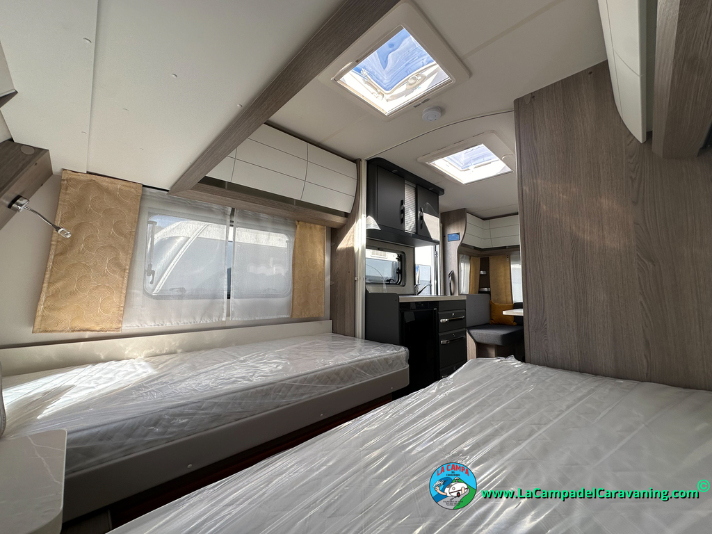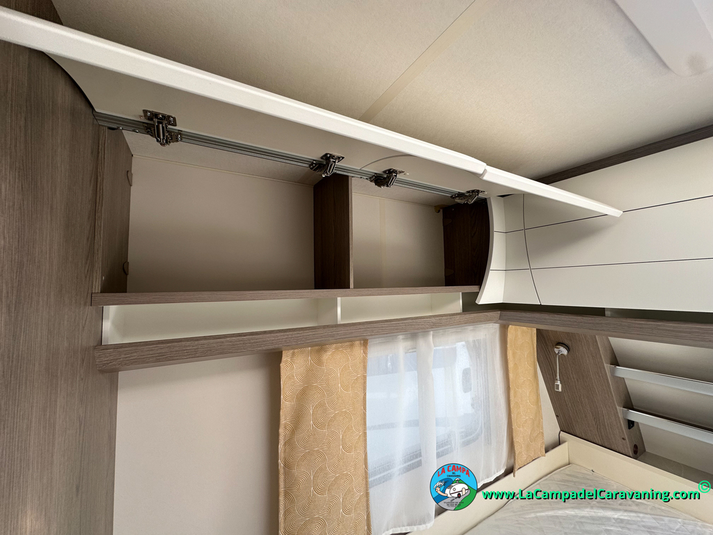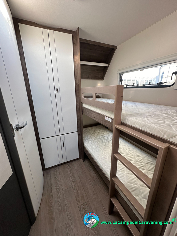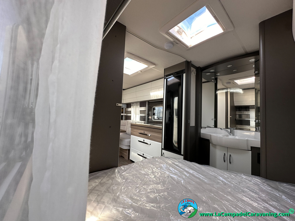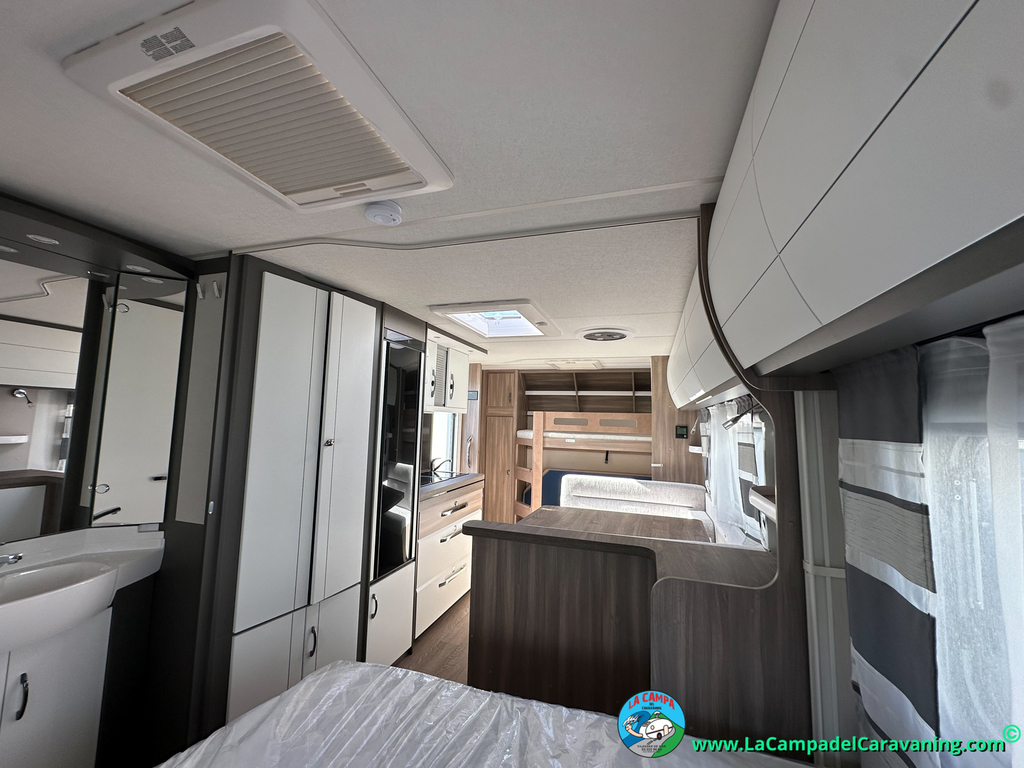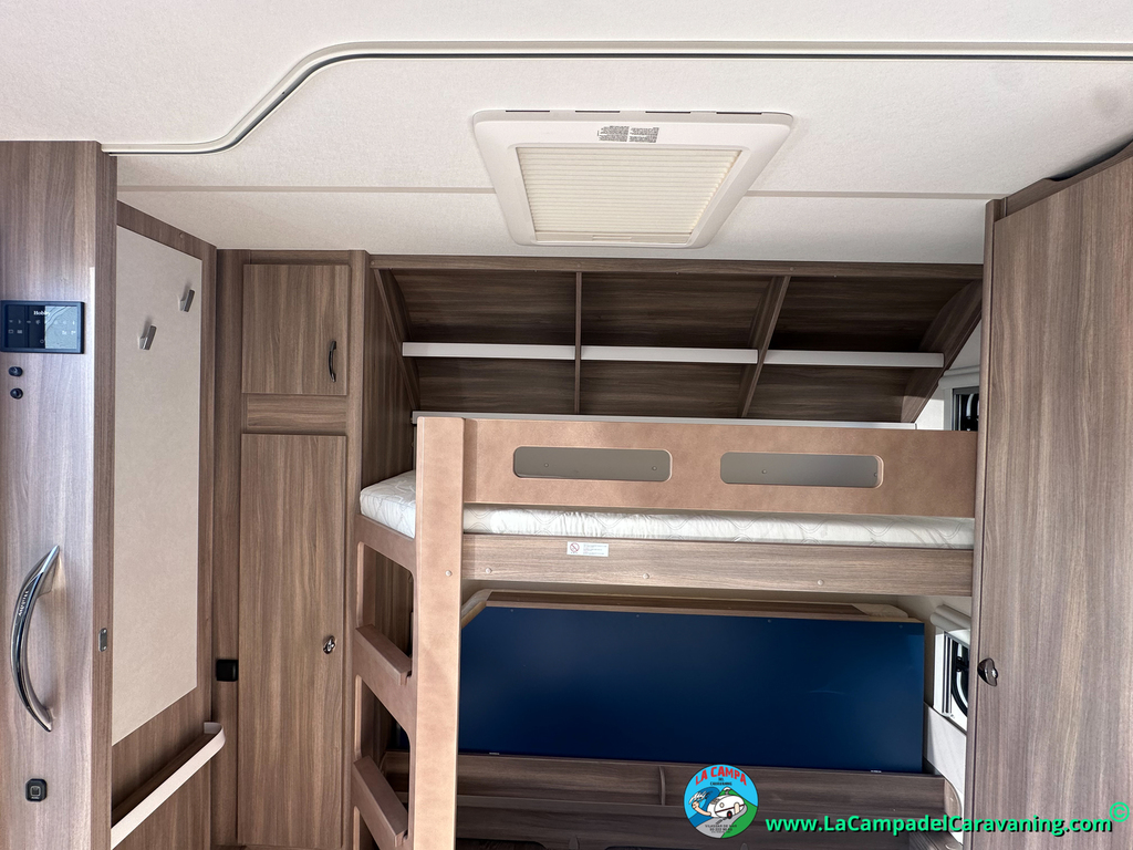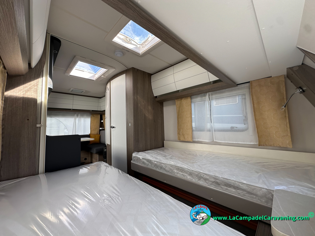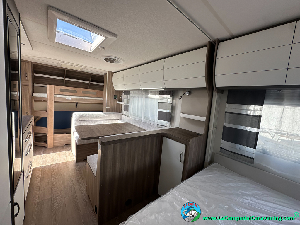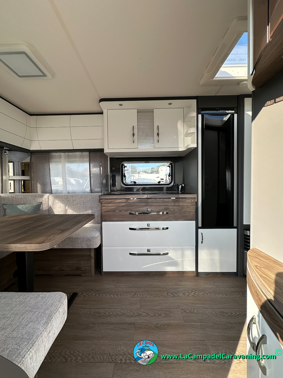 A destacar su baño con ducha independiente enorme. Un baño que enamora. Si buscas caravana y poder ducharte en ella con tu familia es de lo mas polivalente. Apta para parejas y familias con niños