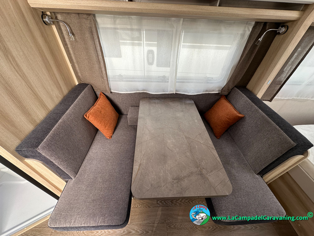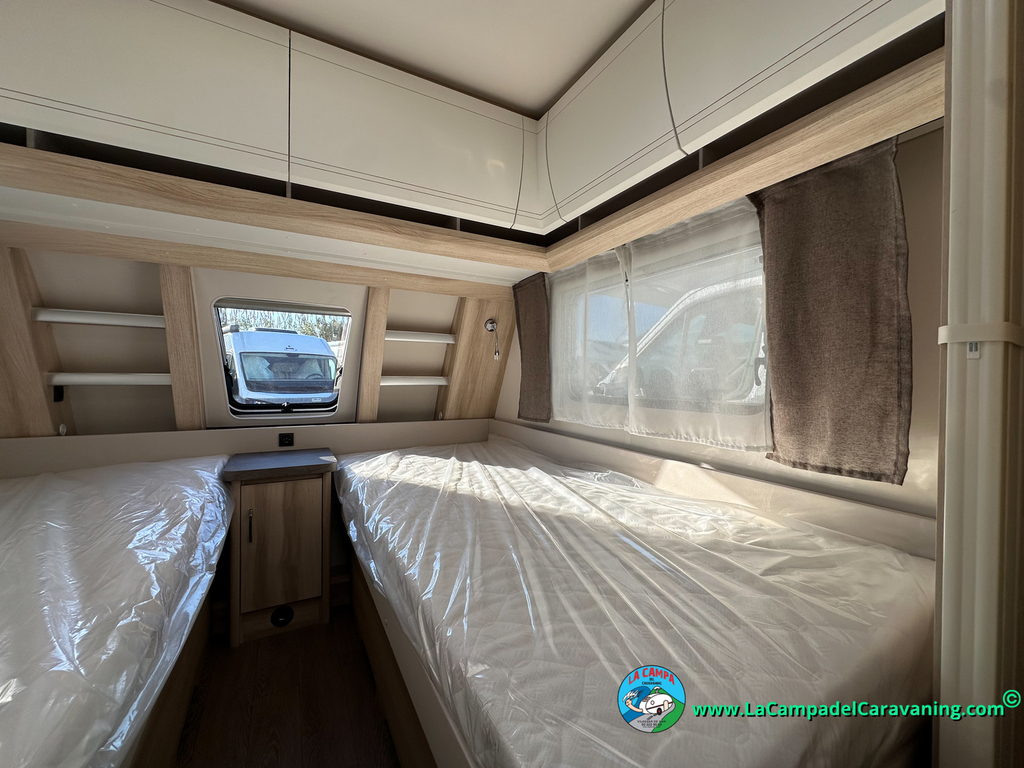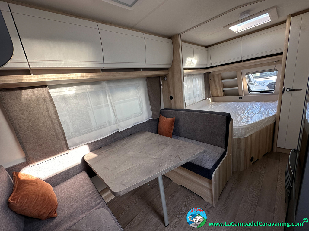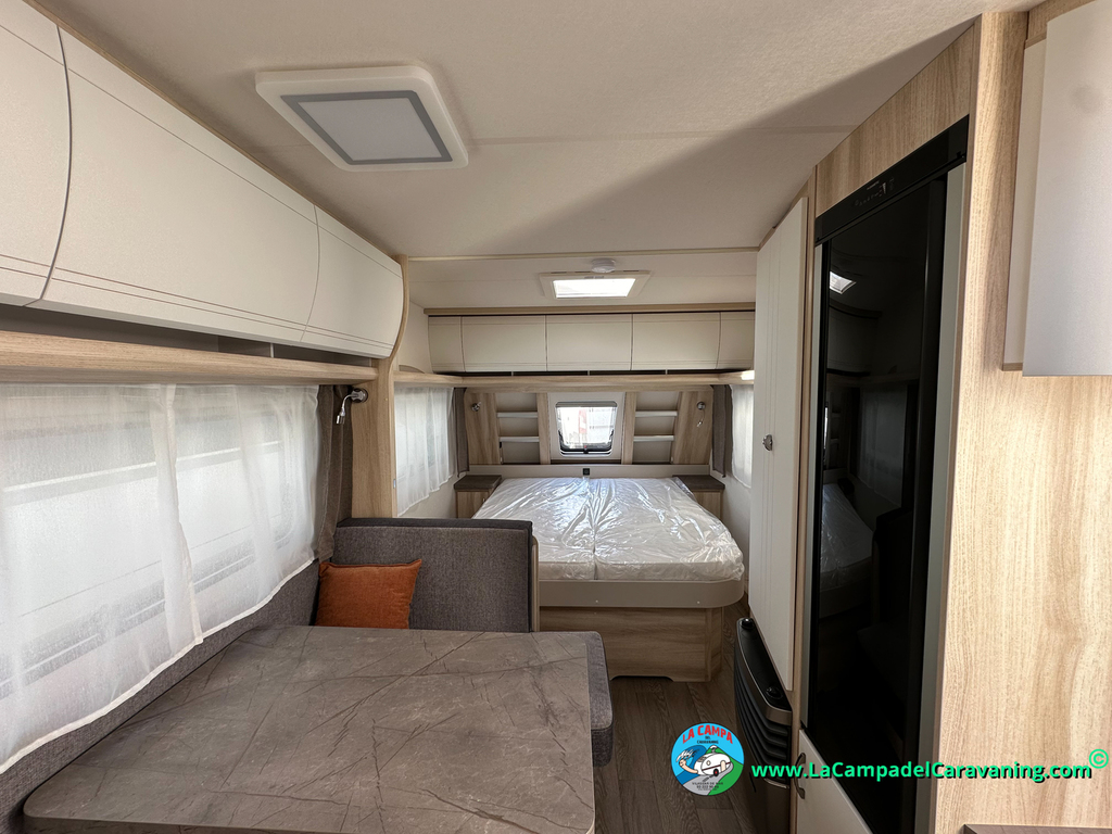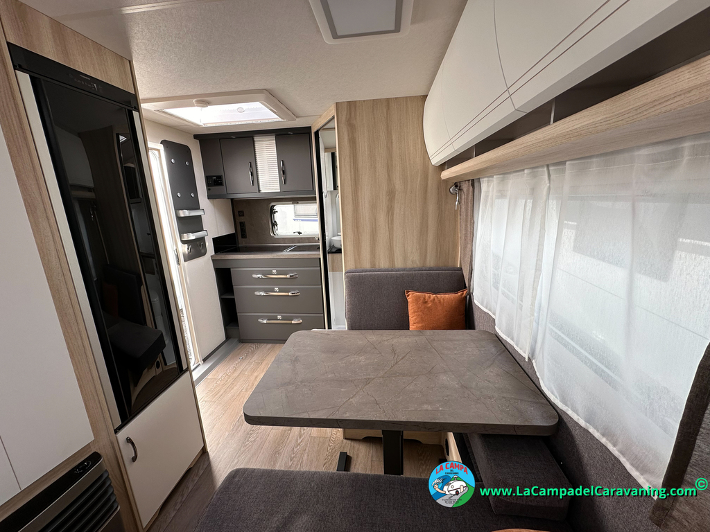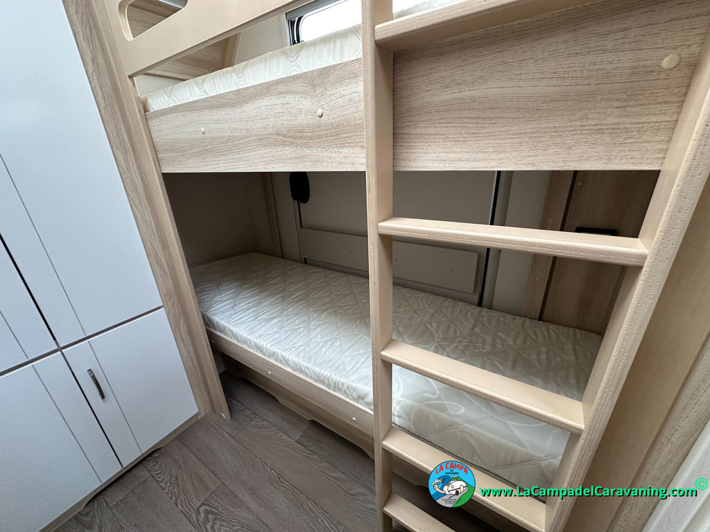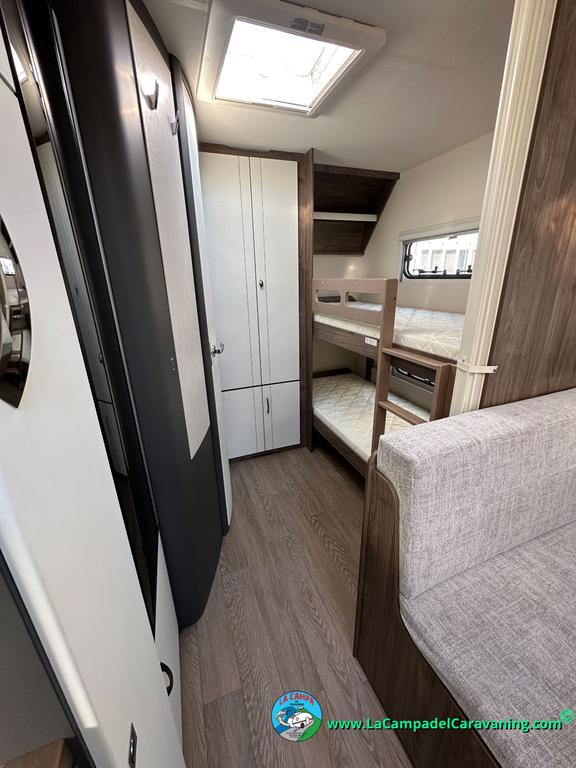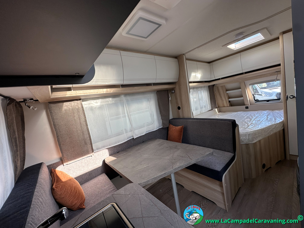 A destacar su baño con ducha independiente enorme. Un baño que enamora. Si buscas caravana y poder ducharte en ella con tu familia es de lo mas polivalente. Apta para parejas y familias con niños