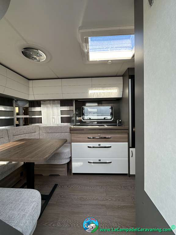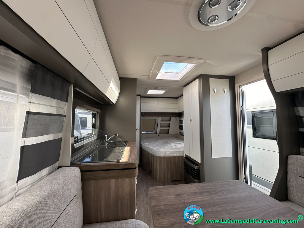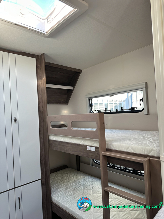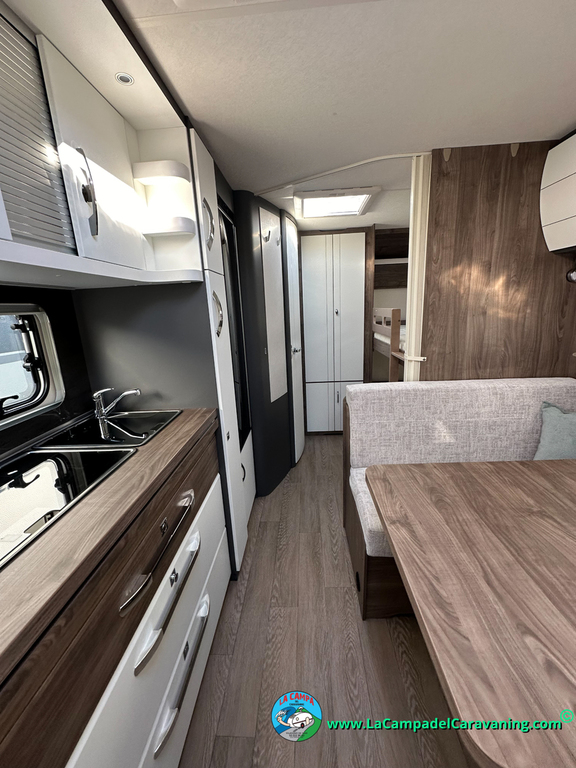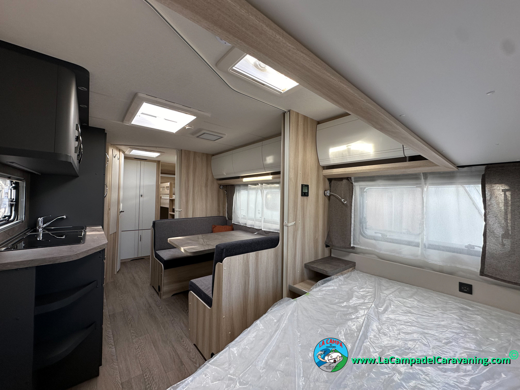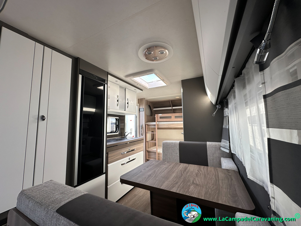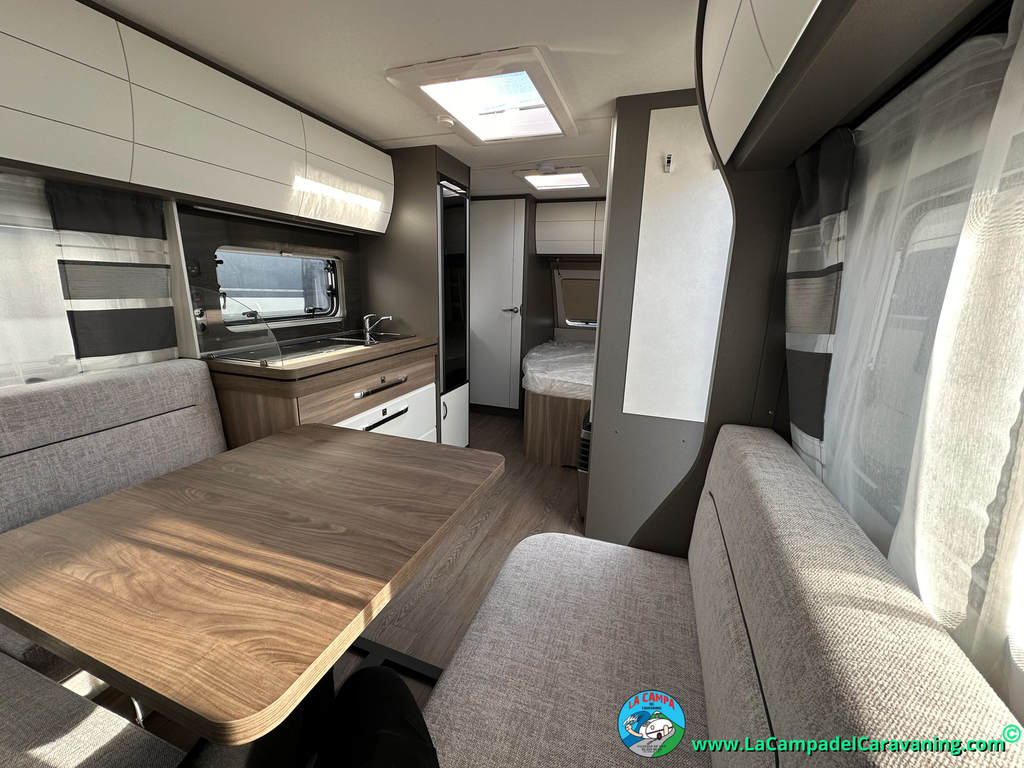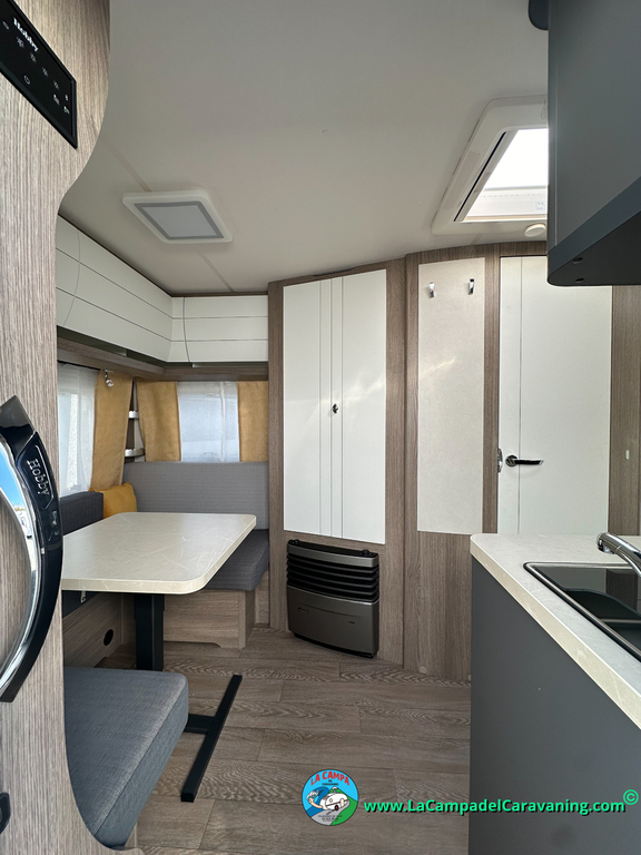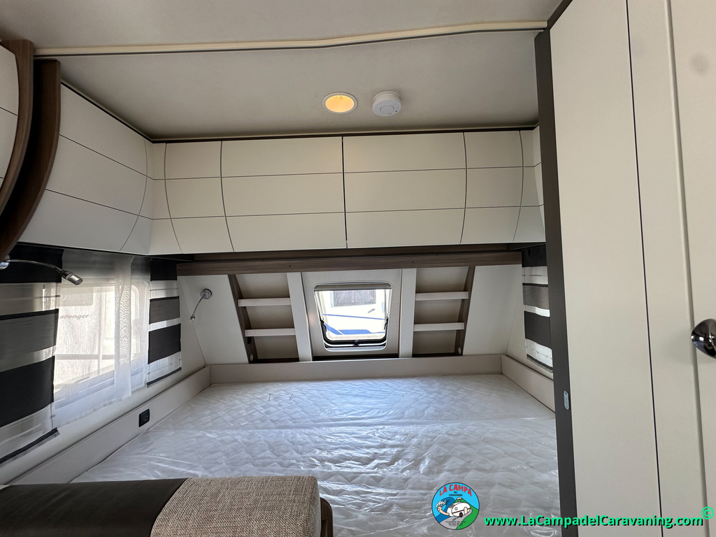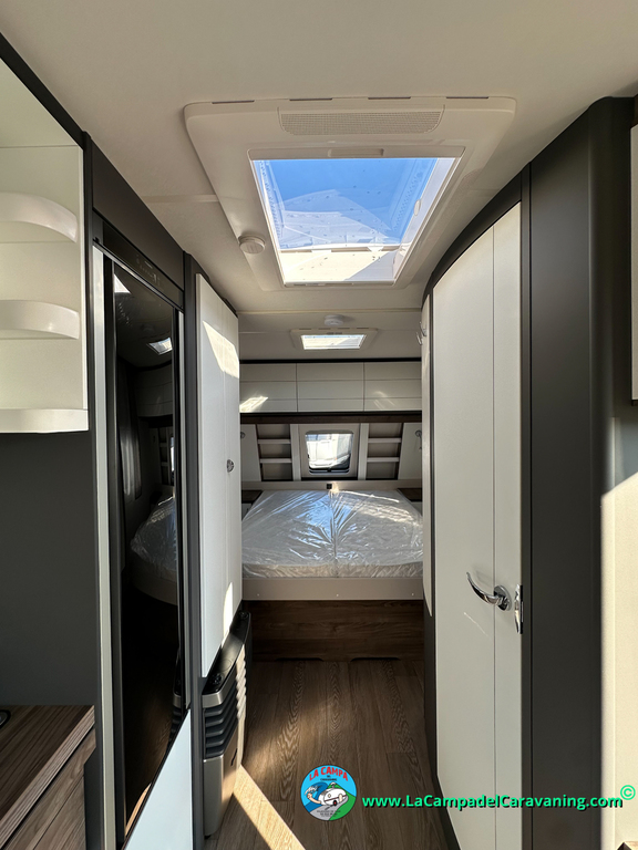 A destacar su baño con ducha independiente enorme. Un baño que enamora. Si buscas caravana y poder ducharte en ella con tu familia es de lo mas polivalente. Apta para parejas y familias con niños