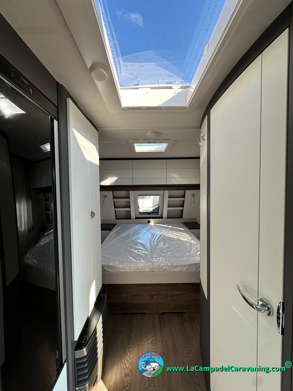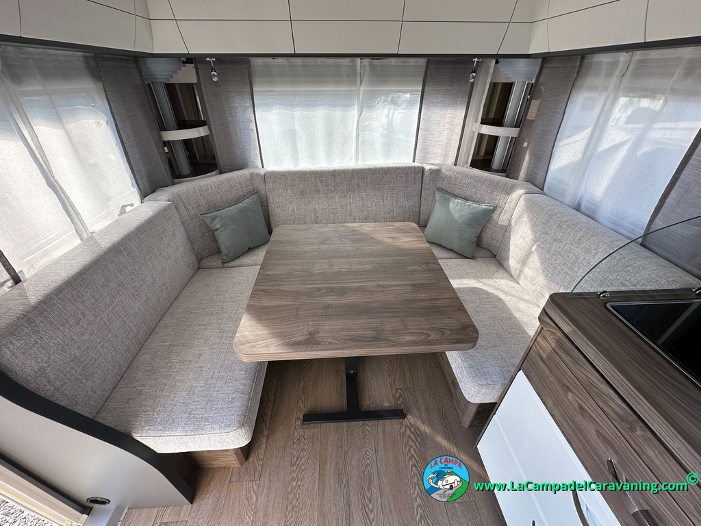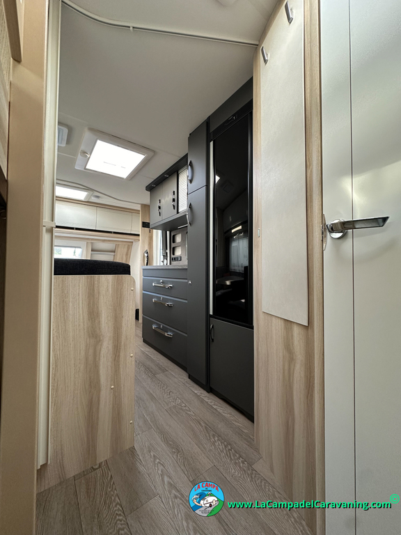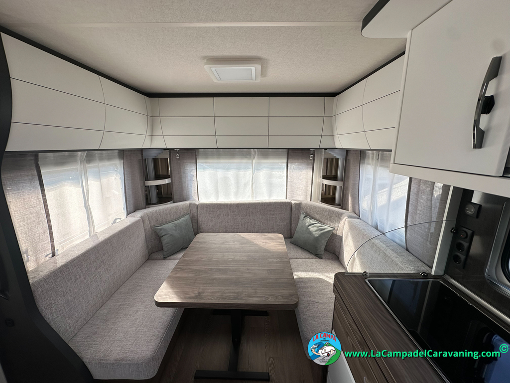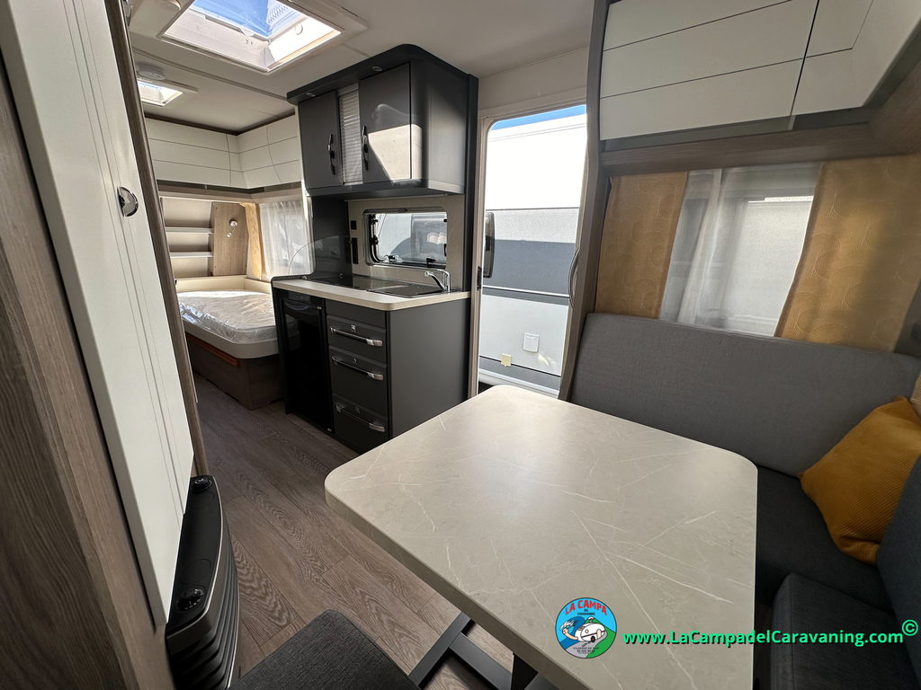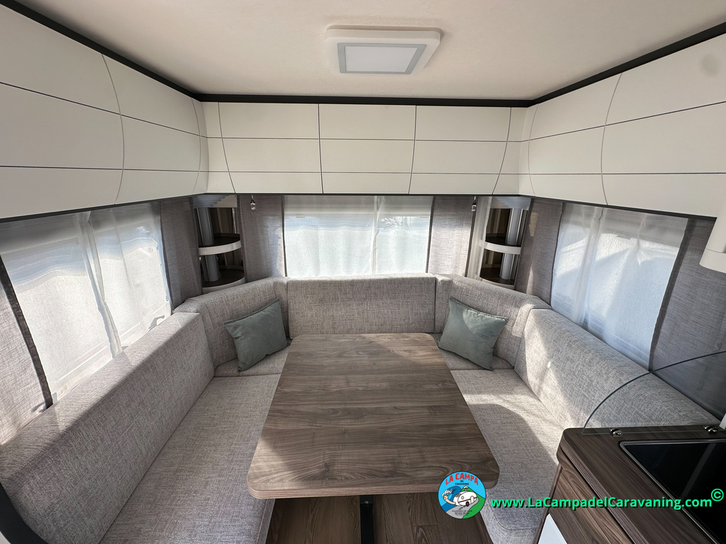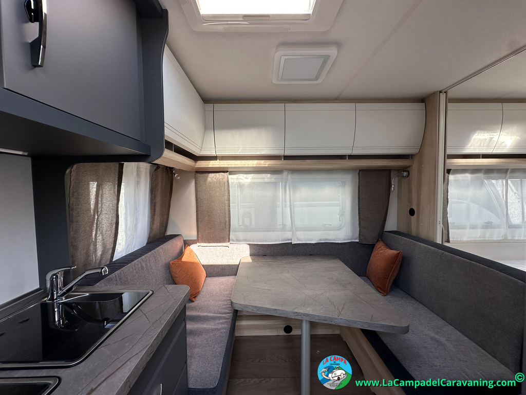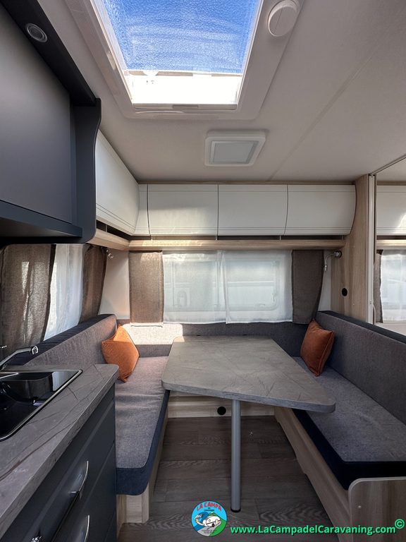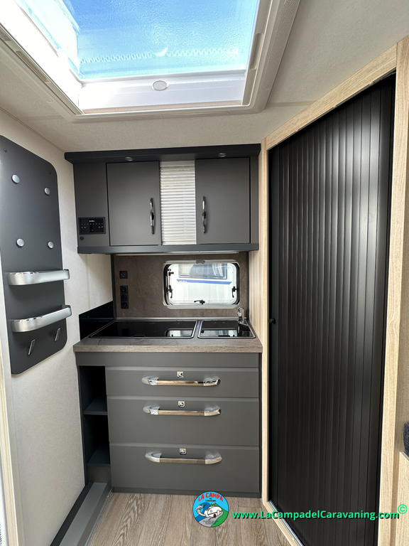 A destacar su baño con ducha independiente enorme. Un baño que enamora. Si buscas caravana y poder ducharte en ella con tu familia es de lo mas polivalente. Apta para parejas y familias con niños