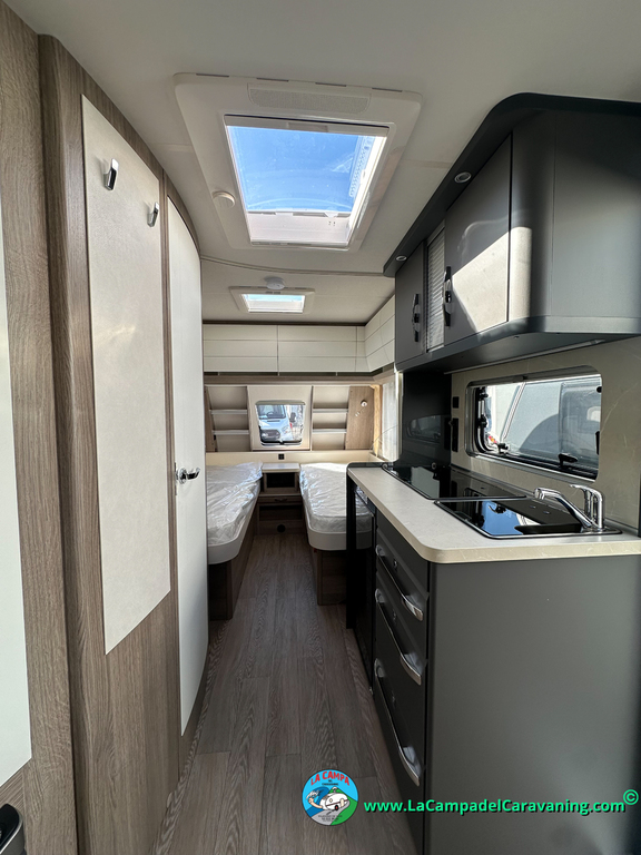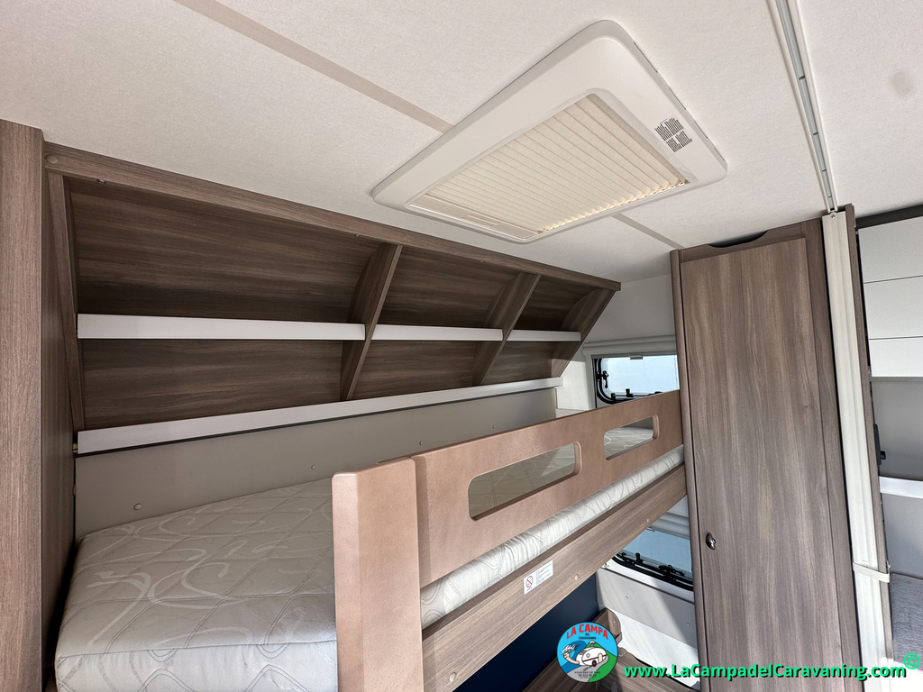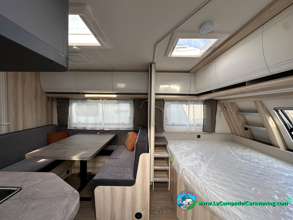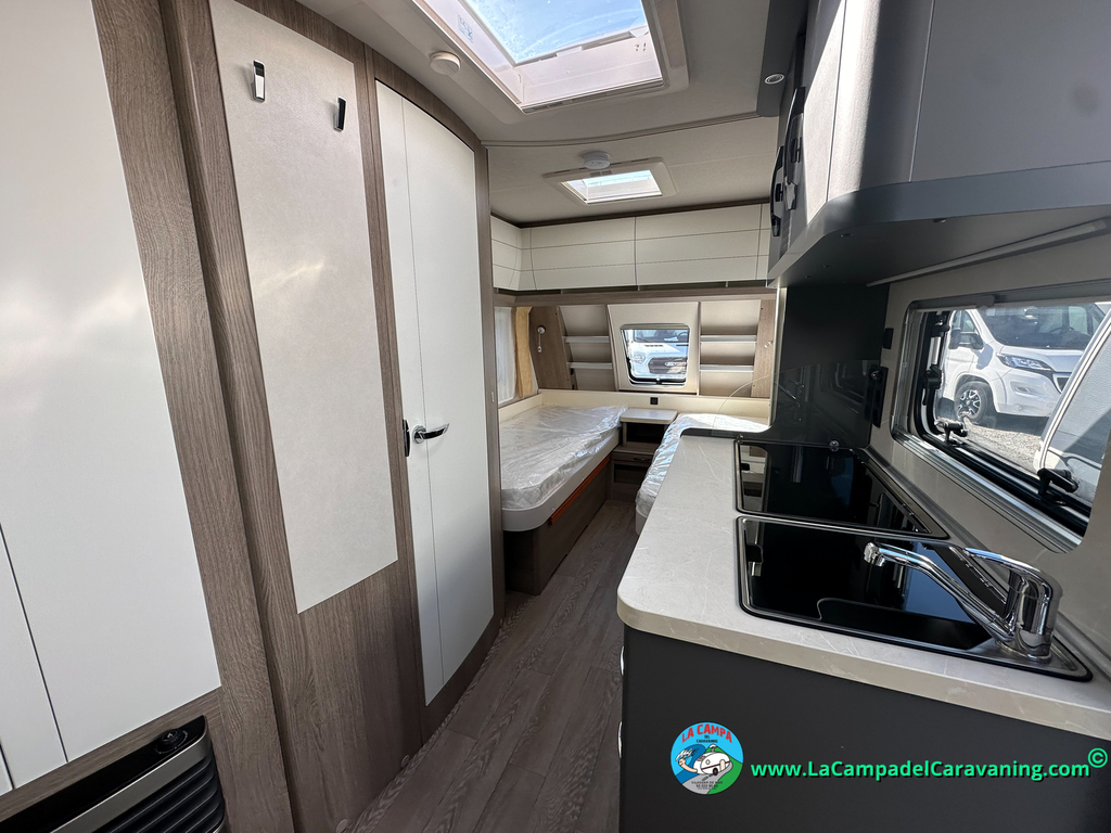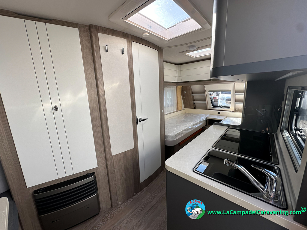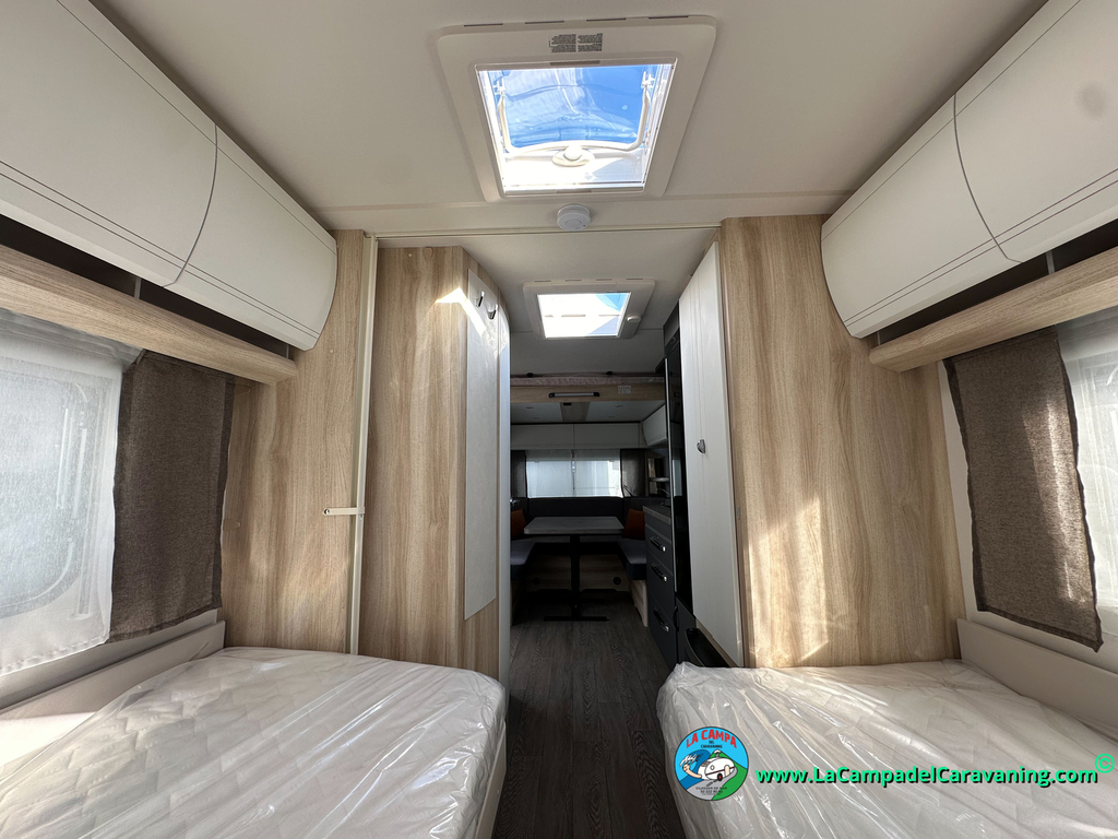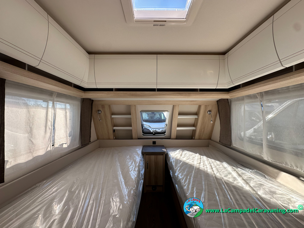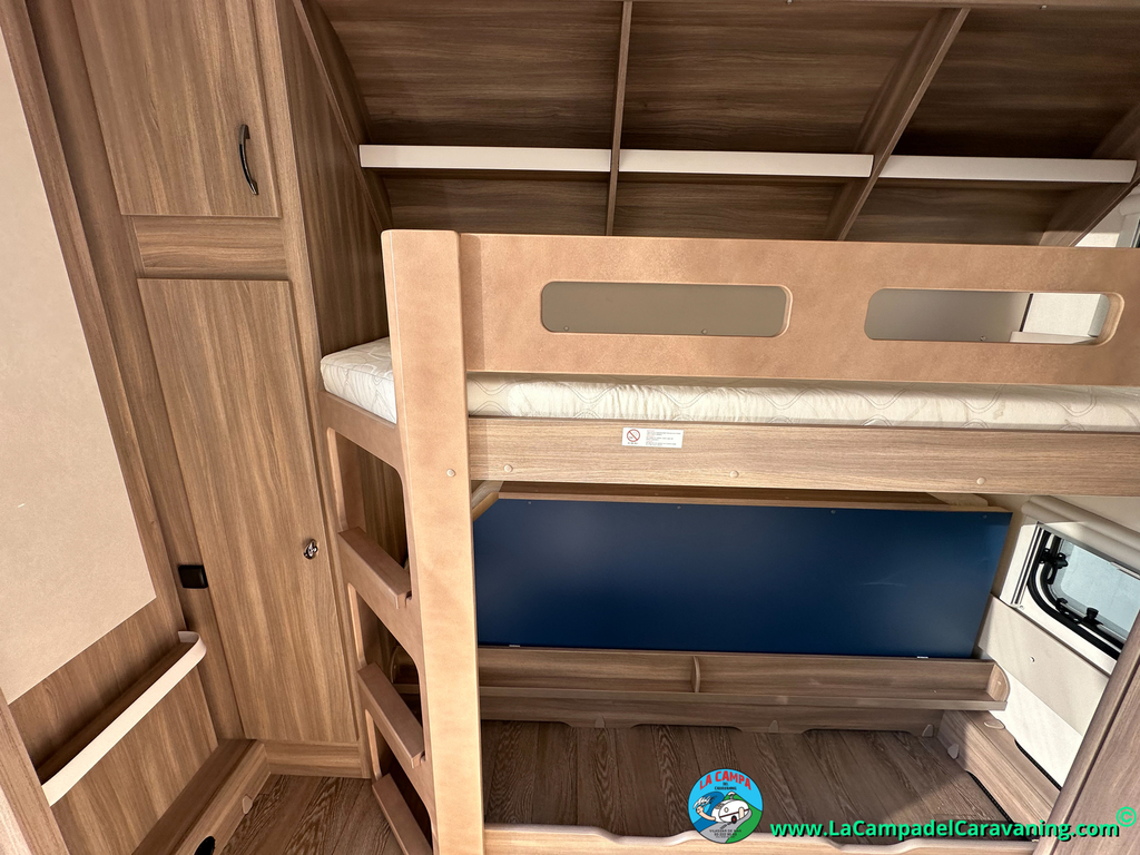 A destacar su baño con ducha independiente enorme. Un baño que enamora. Si buscas caravana y poder ducharte en ella con tu familia es de lo mas polivalente. Apta para parejas y familias con niños