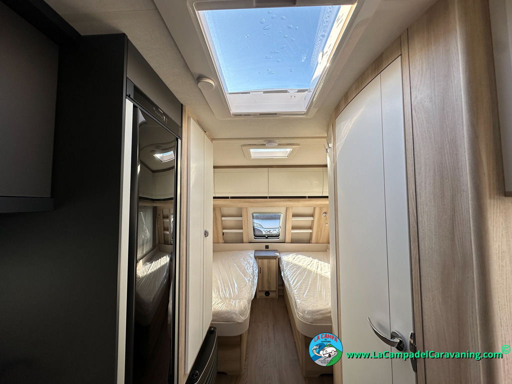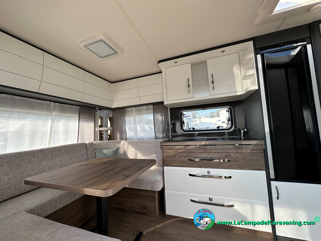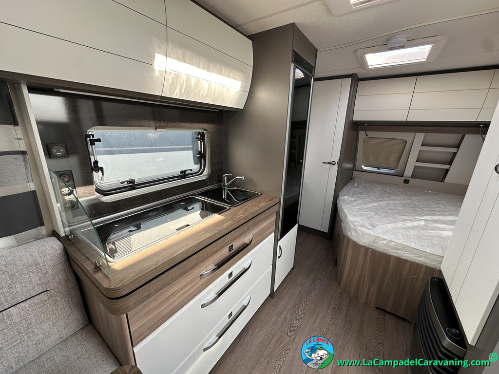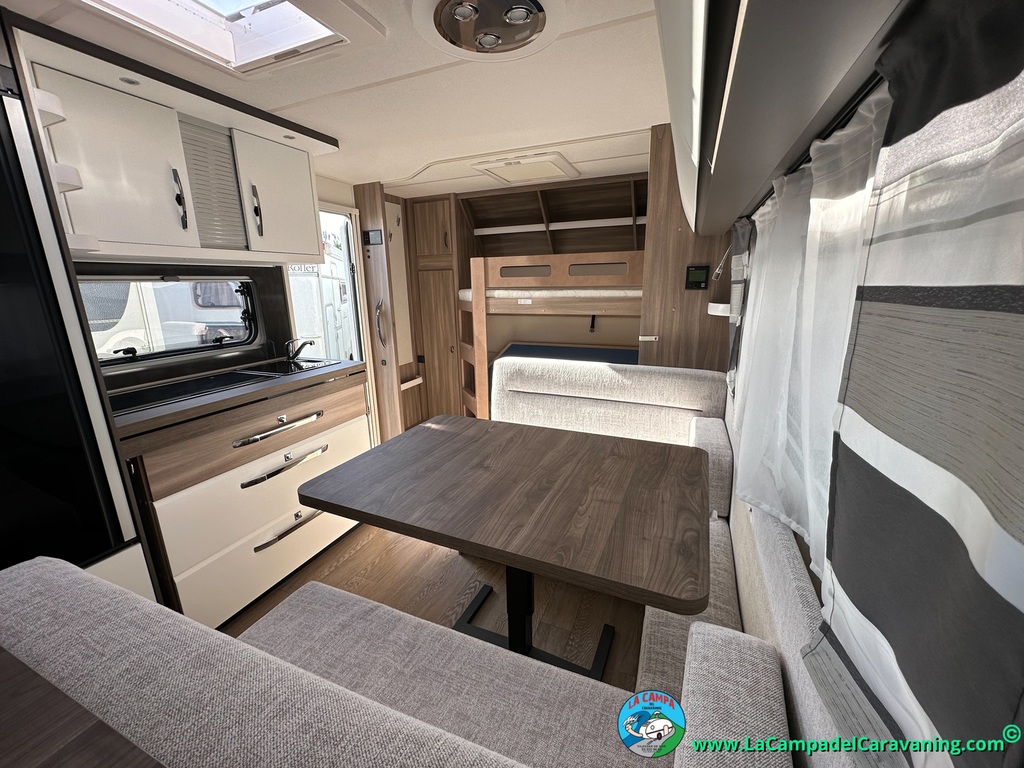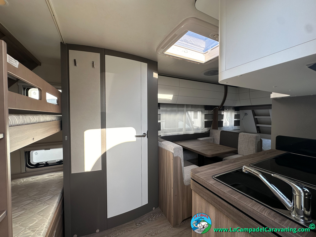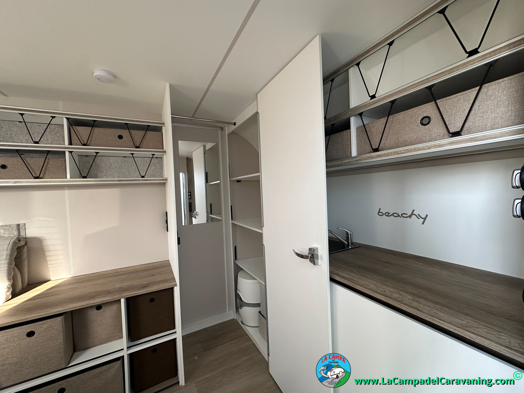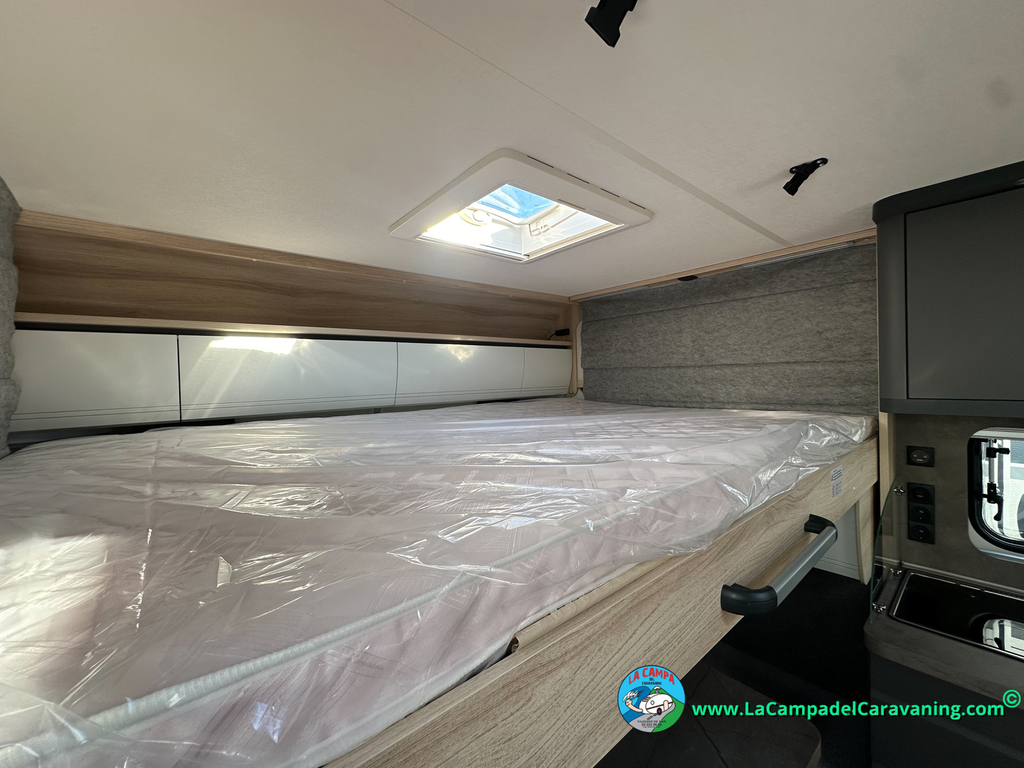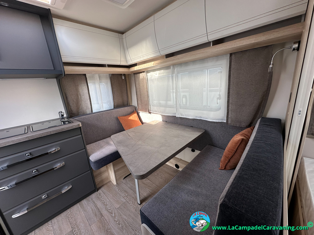 A destacar su baño con ducha independiente enorme. Un baño que enamora. Si buscas caravana y poder ducharte en ella con tu familia es de lo mas polivalente. Apta para parejas y familias con niños