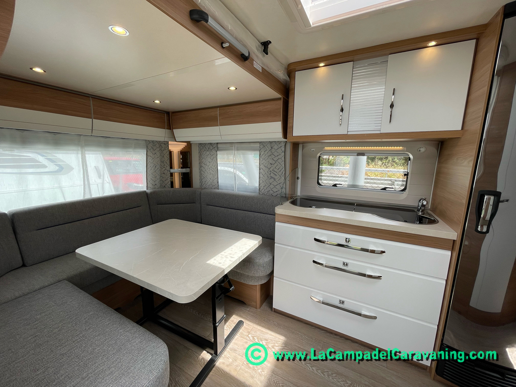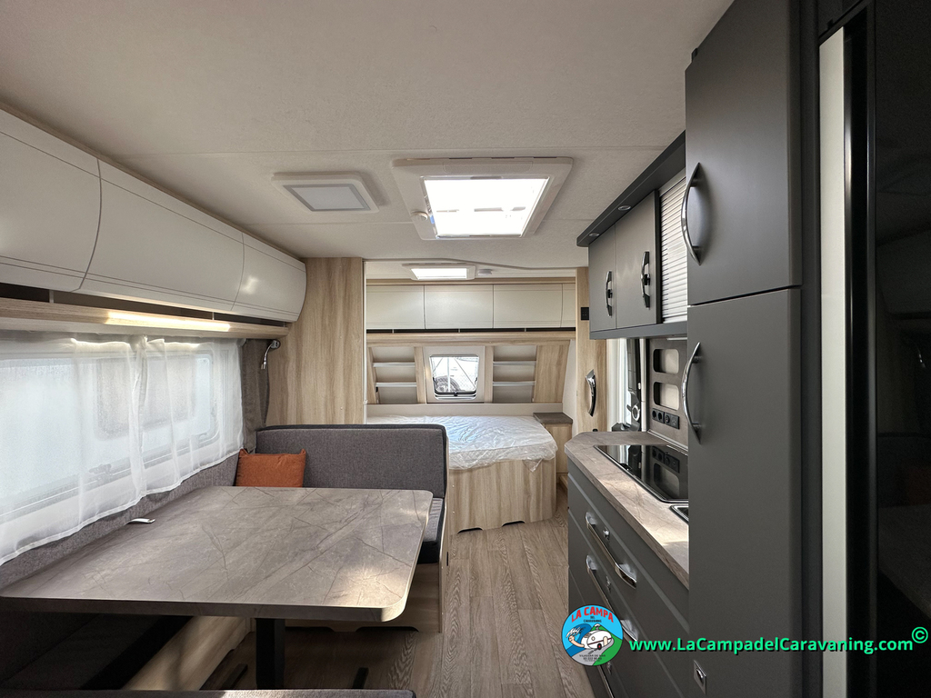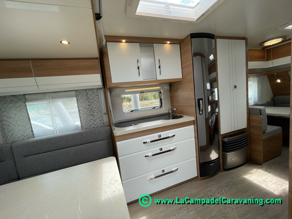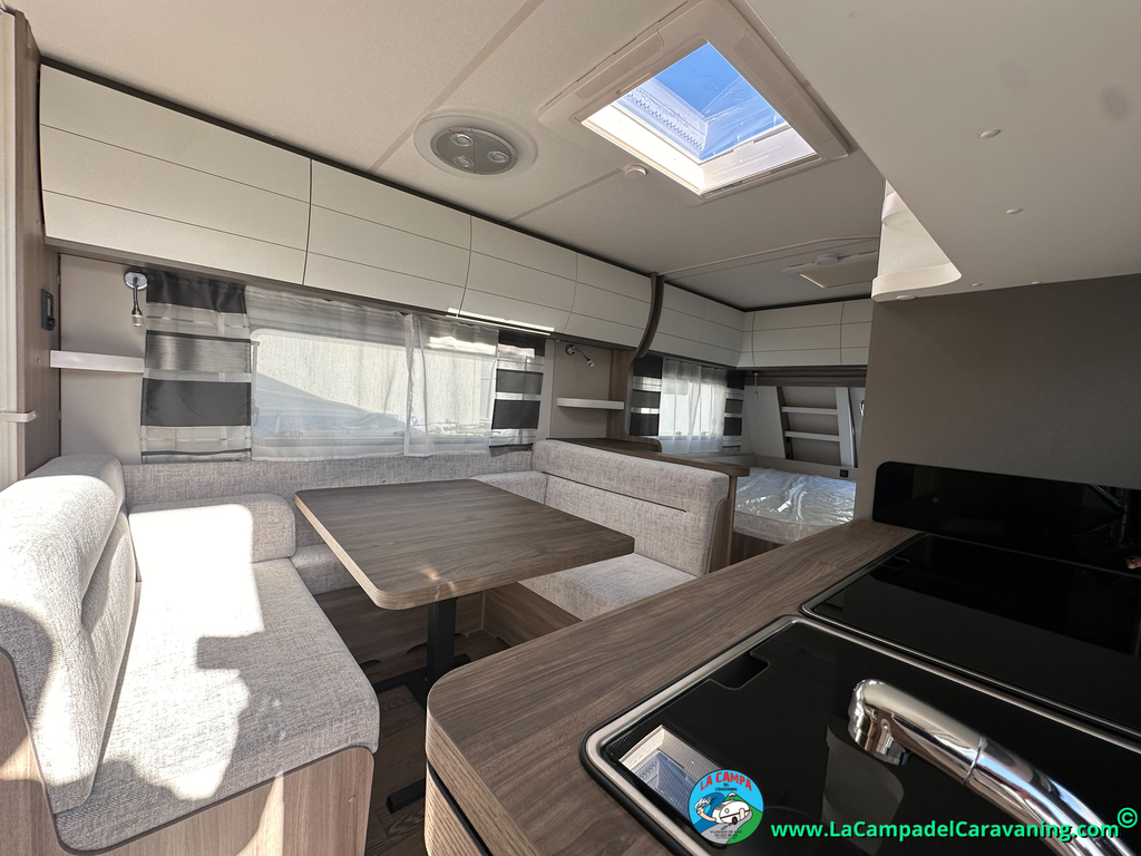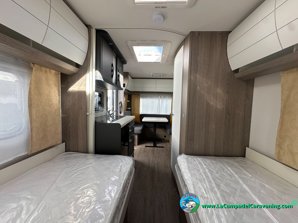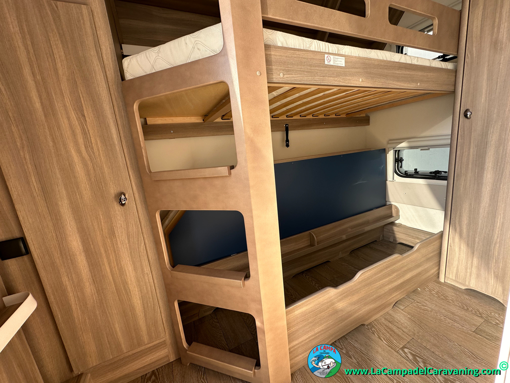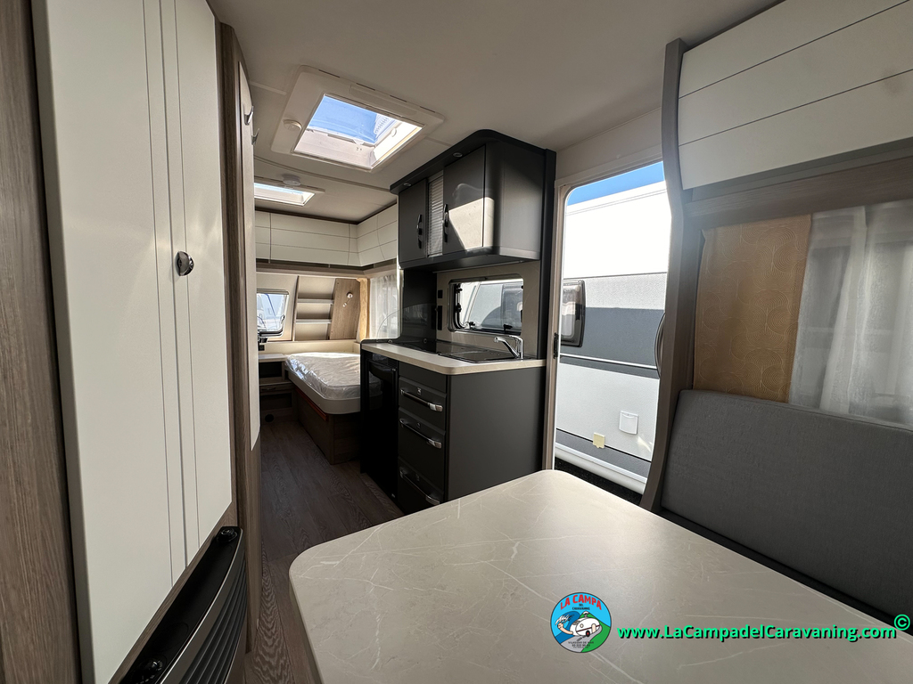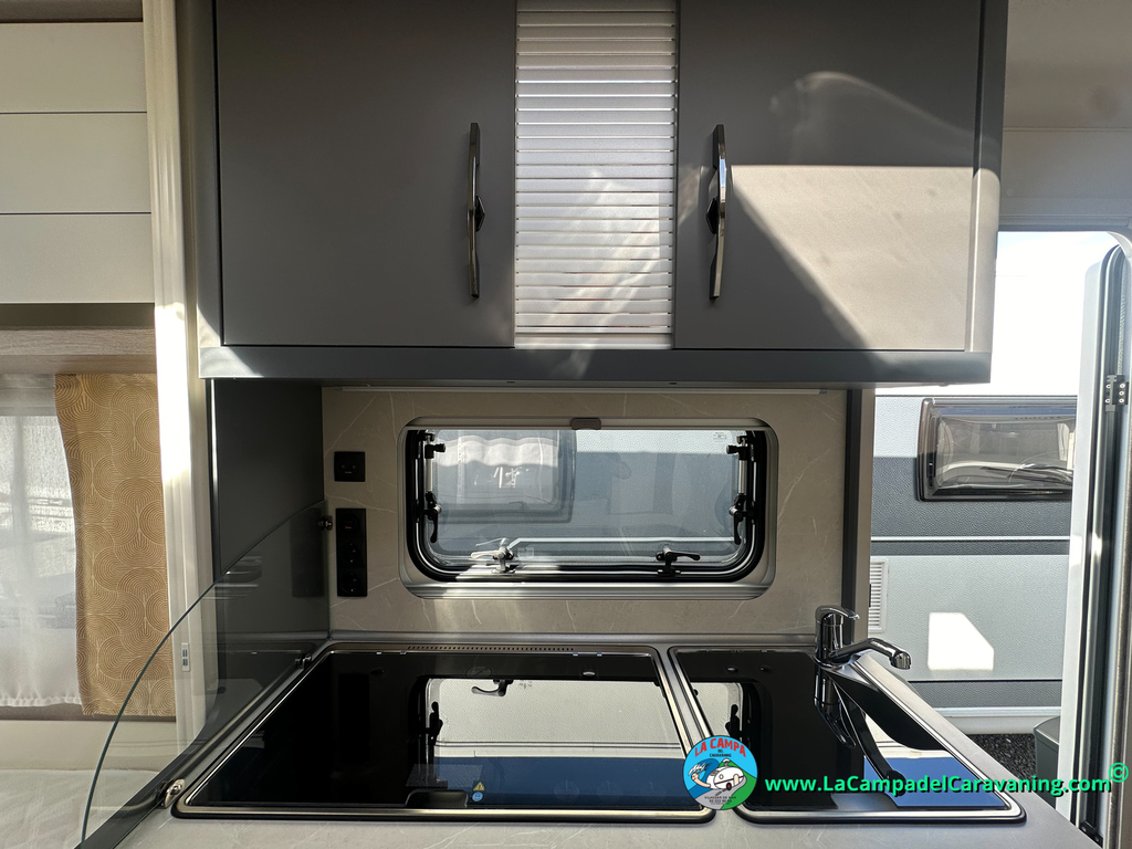 A destacar su baño con ducha independiente enorme. Un baño que enamora. Si buscas caravana y poder ducharte en ella con tu familia es de lo mas polivalente. Apta para parejas y familias con niños