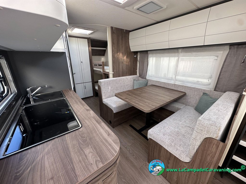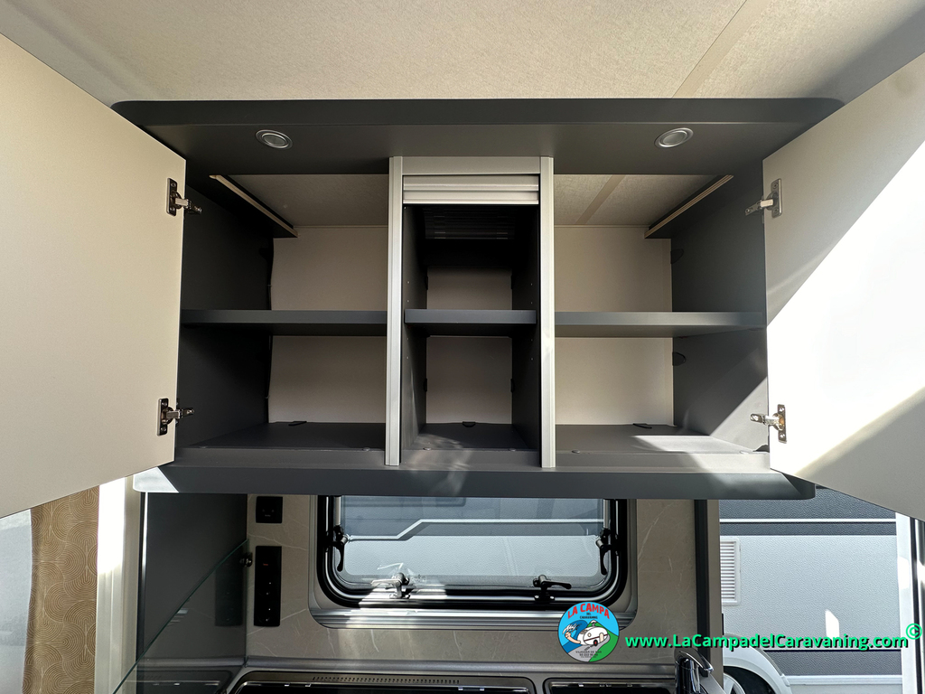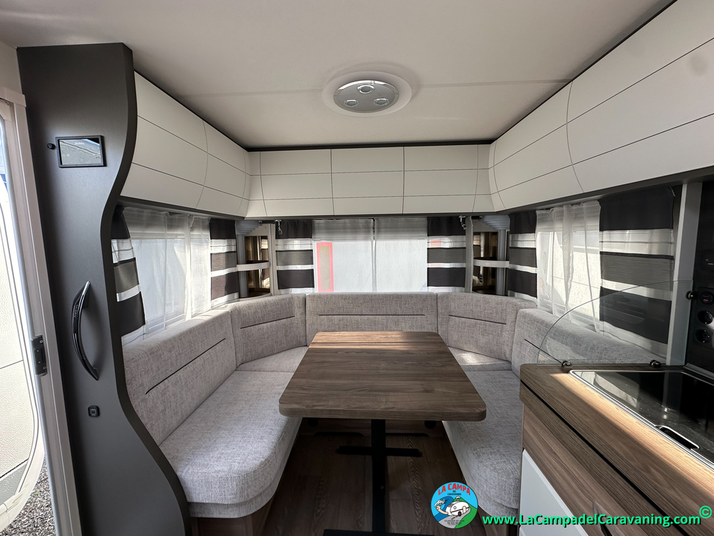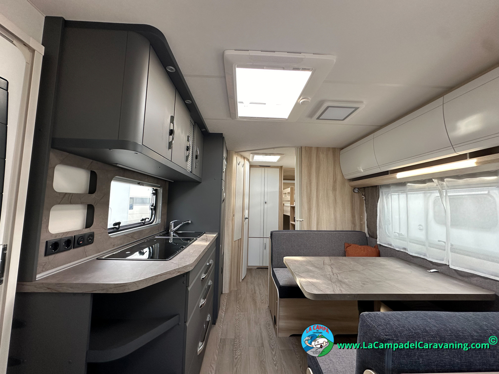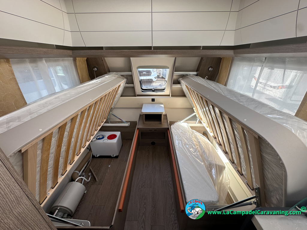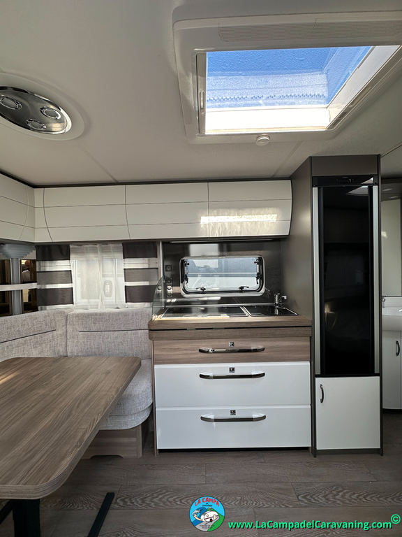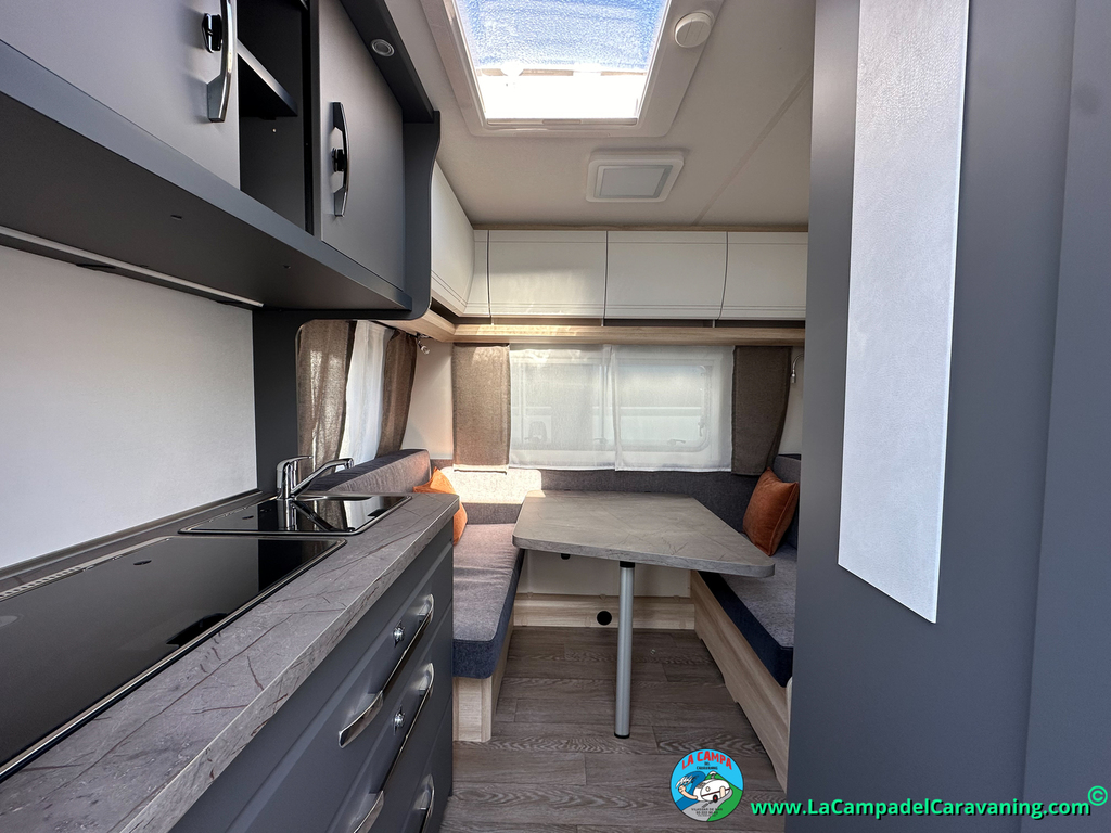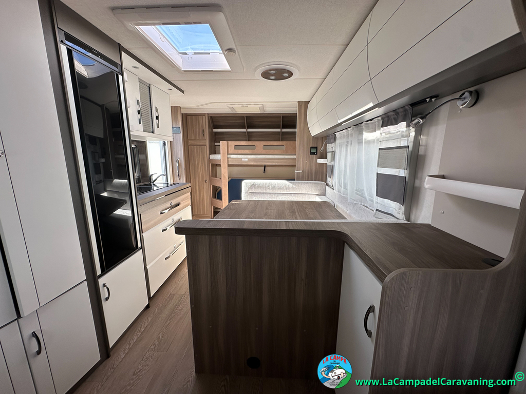 A destacar su baño con ducha independiente enorme. Un baño que enamora. Si buscas caravana y poder ducharte en ella con tu familia es de lo mas polivalente. Apta para parejas y familias con niños