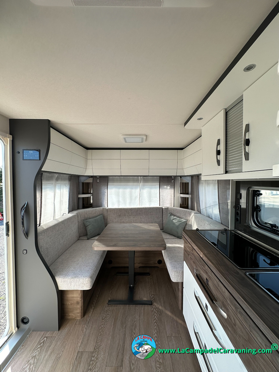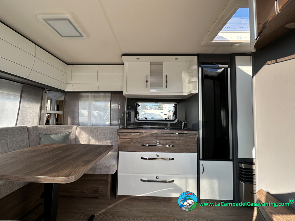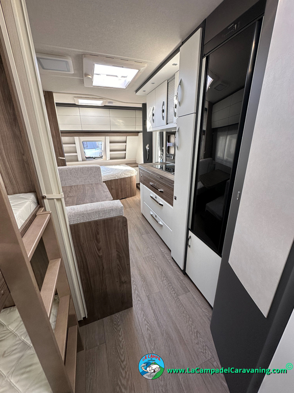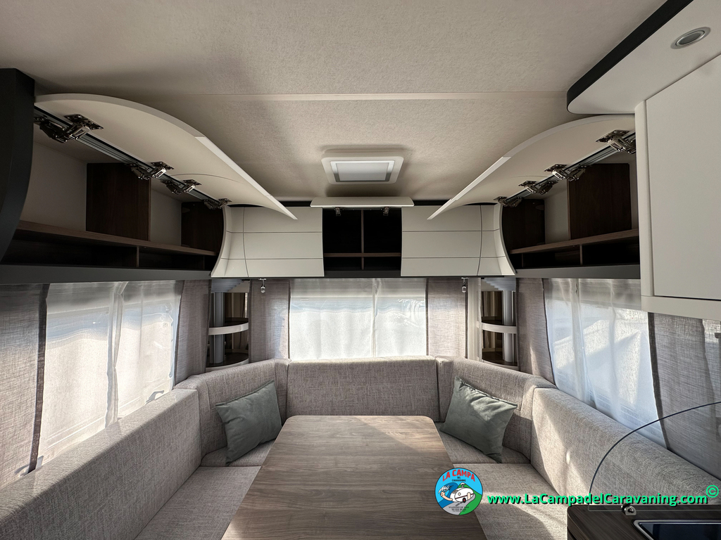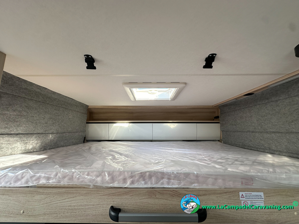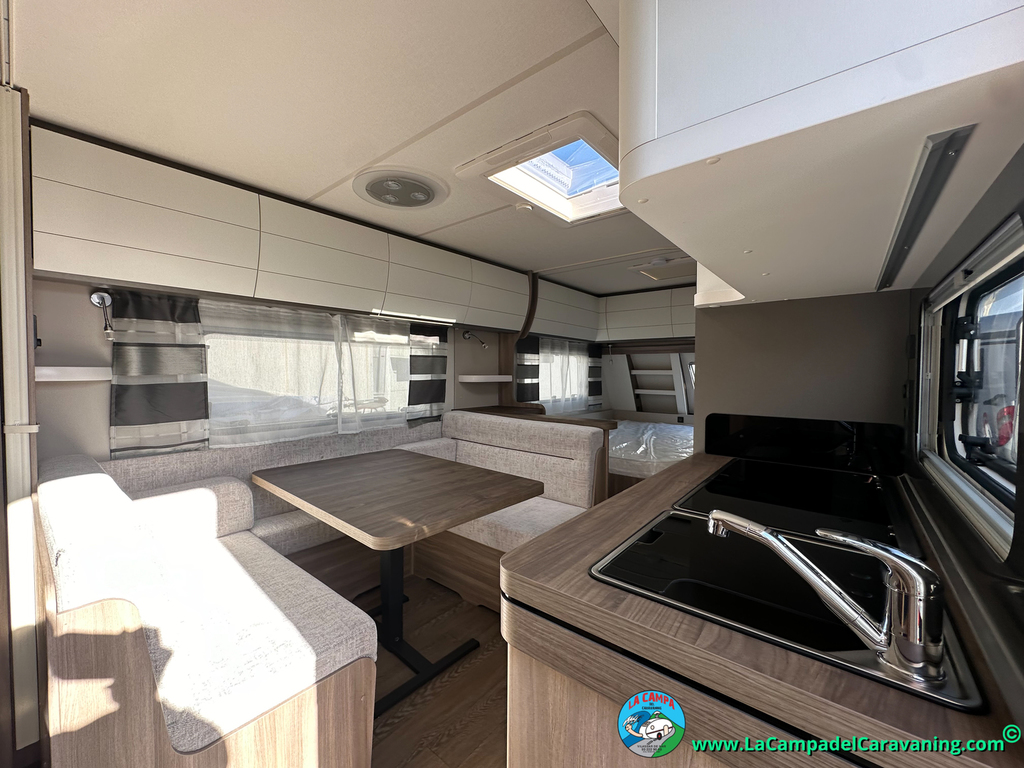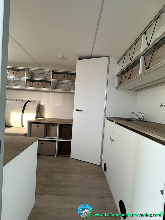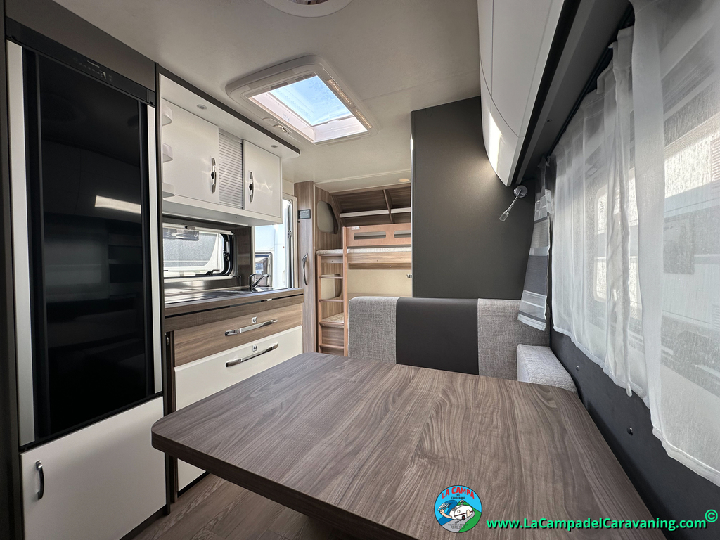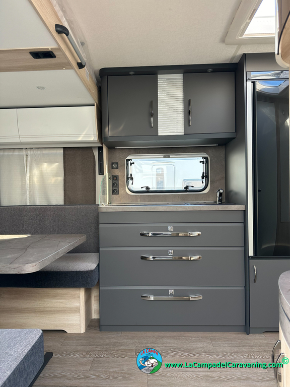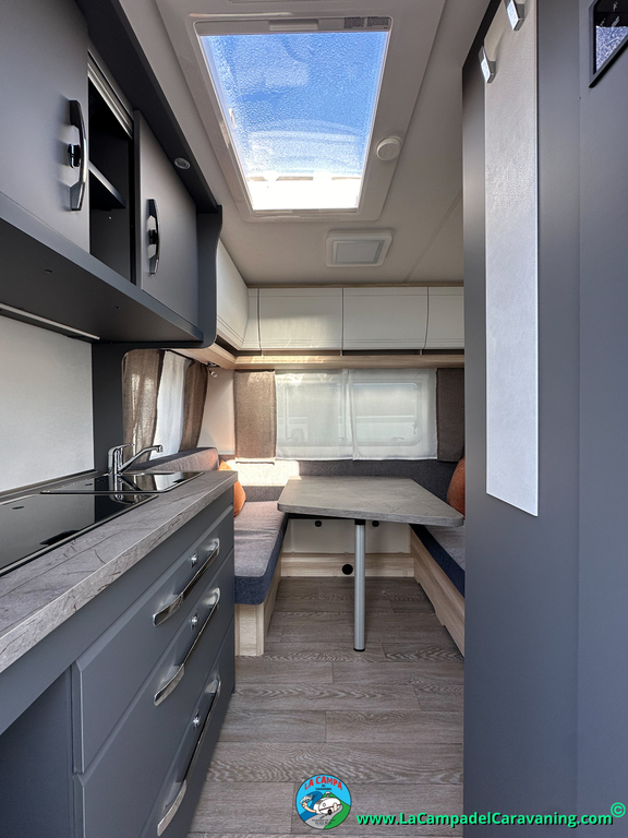 A destacar su baño con ducha independiente enorme. Un baño que enamora. Si buscas caravana y poder ducharte en ella con tu familia es de lo mas polivalente. Apta para parejas y familias con niños