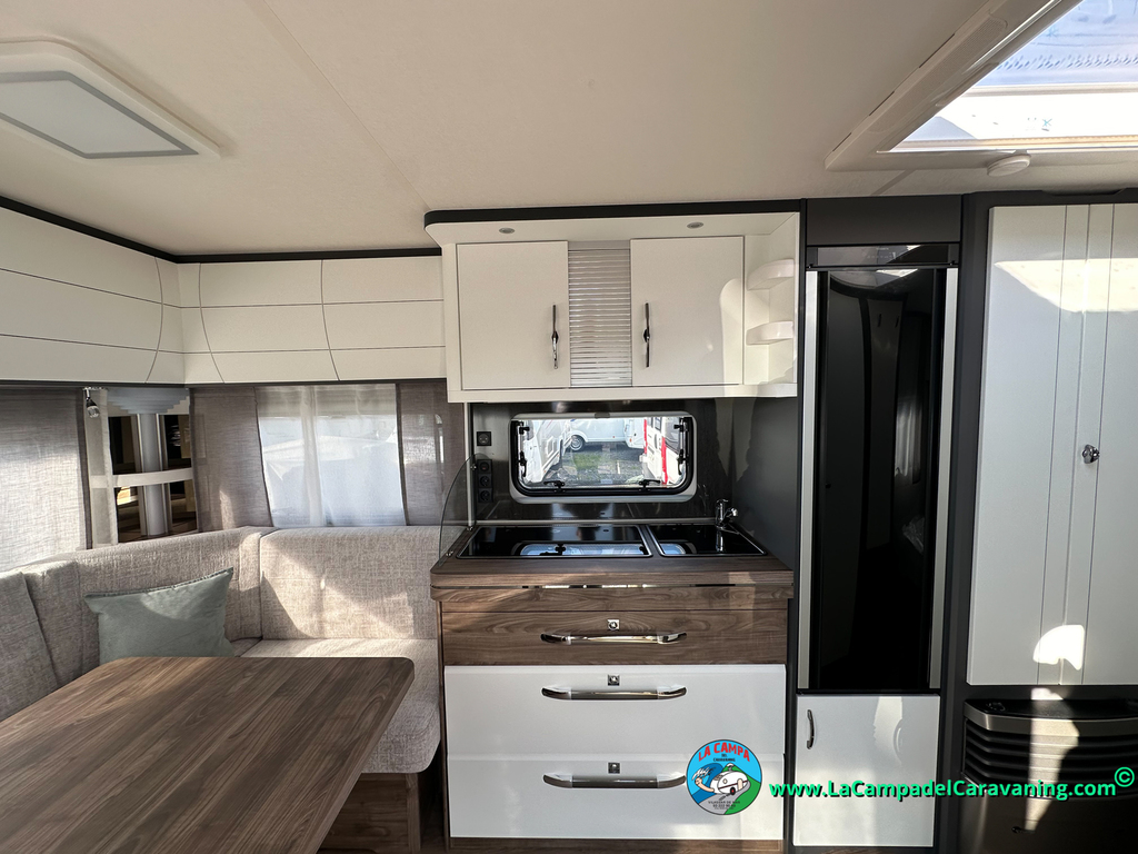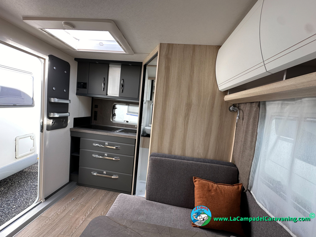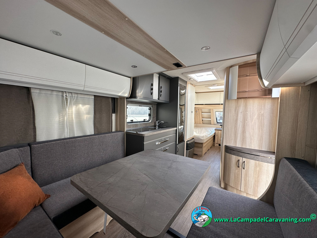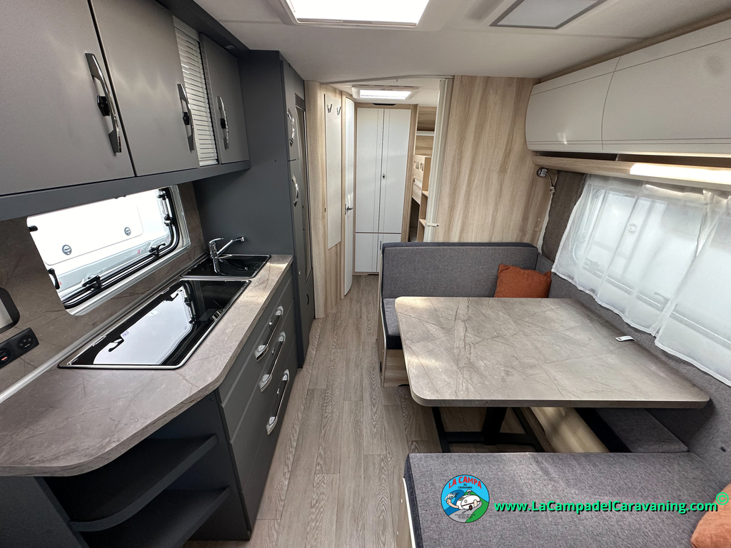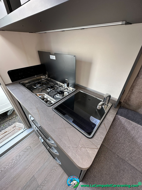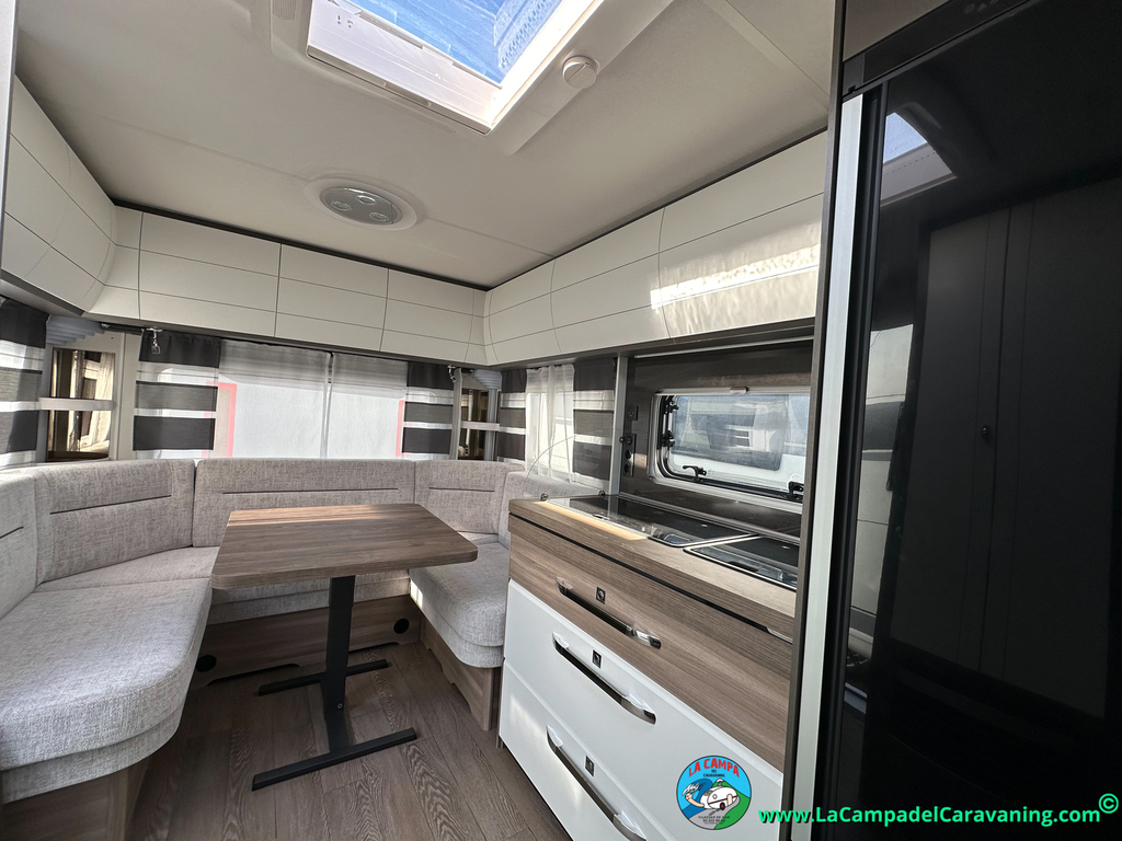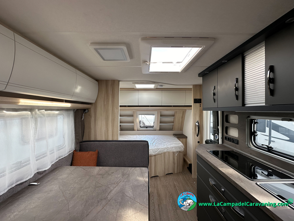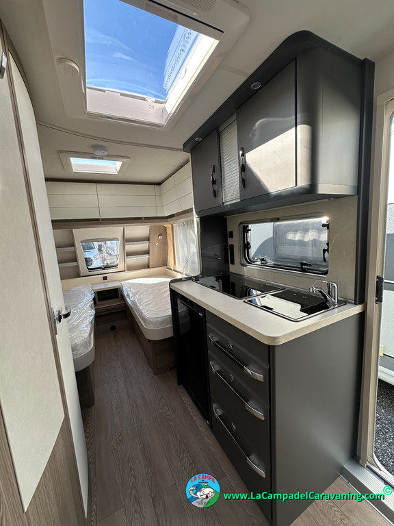 A destacar su baño con ducha independiente enorme. Un baño que enamora. Si buscas caravana y poder ducharte en ella con tu familia es de lo mas polivalente. Apta para parejas y familias con niños