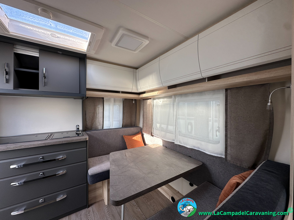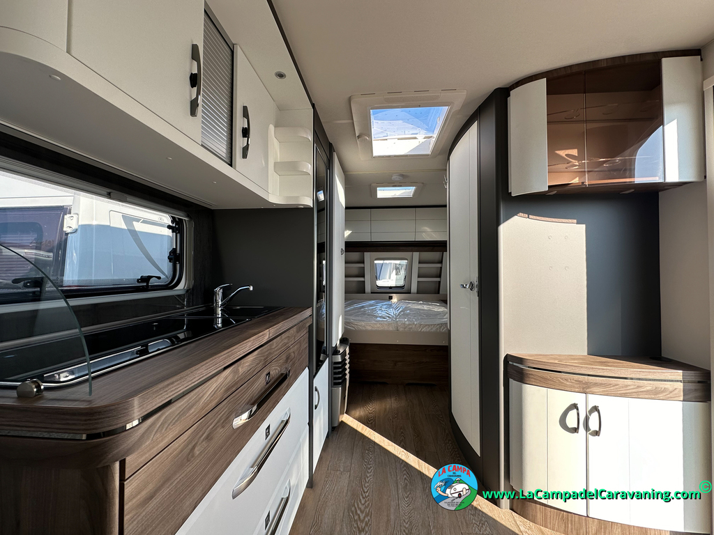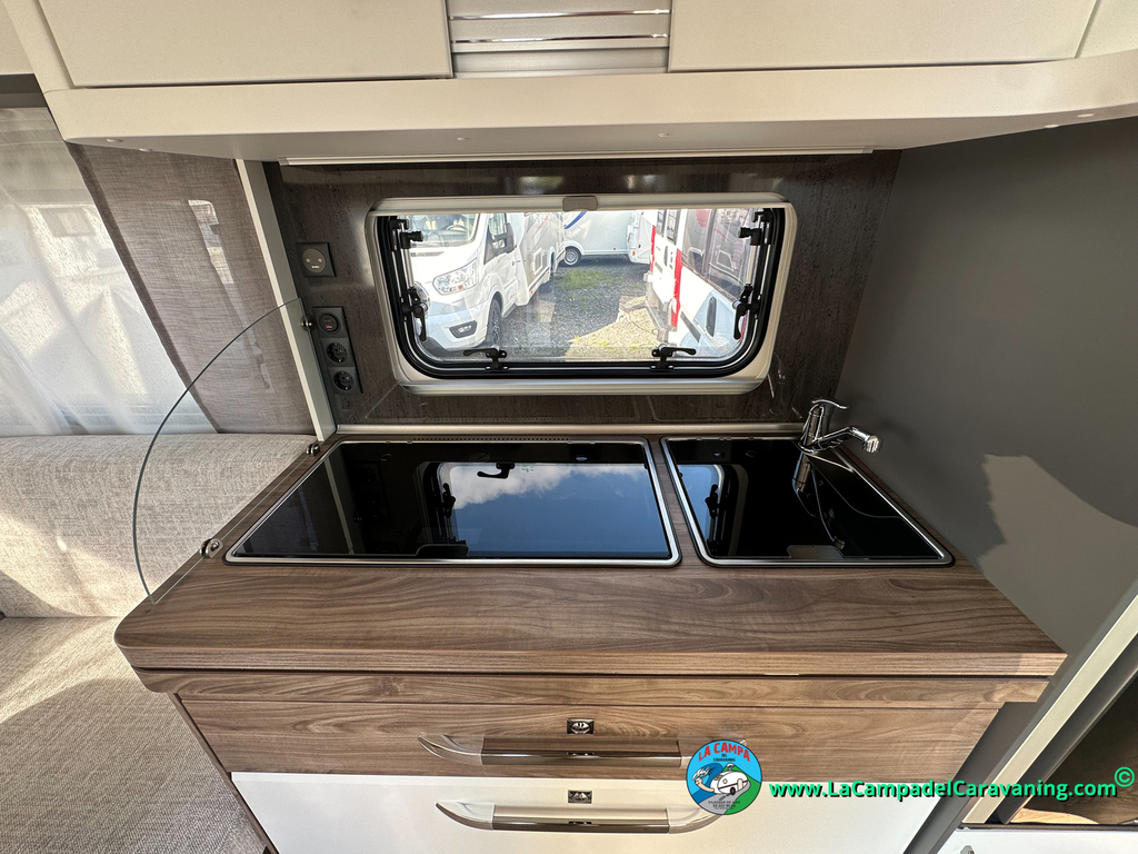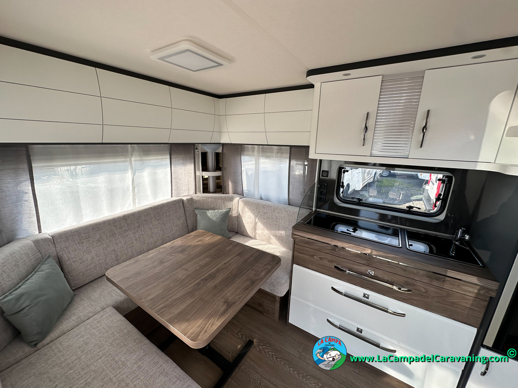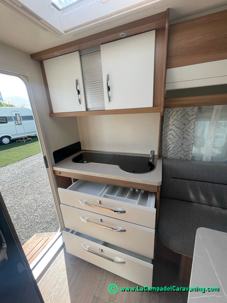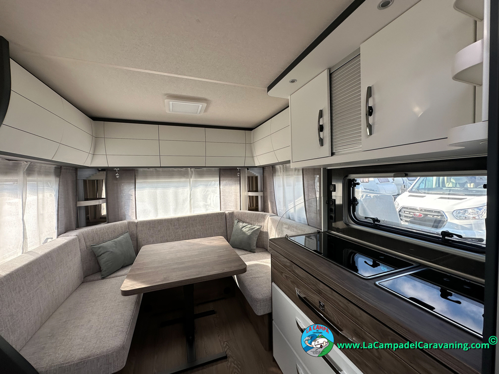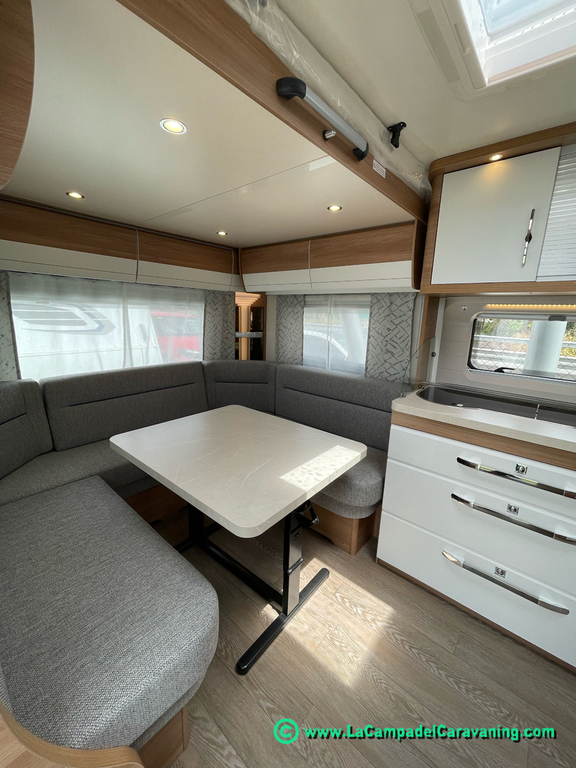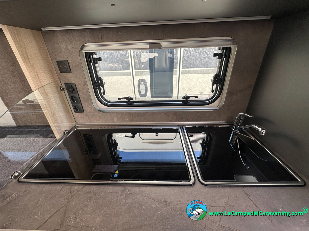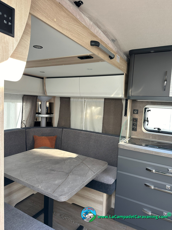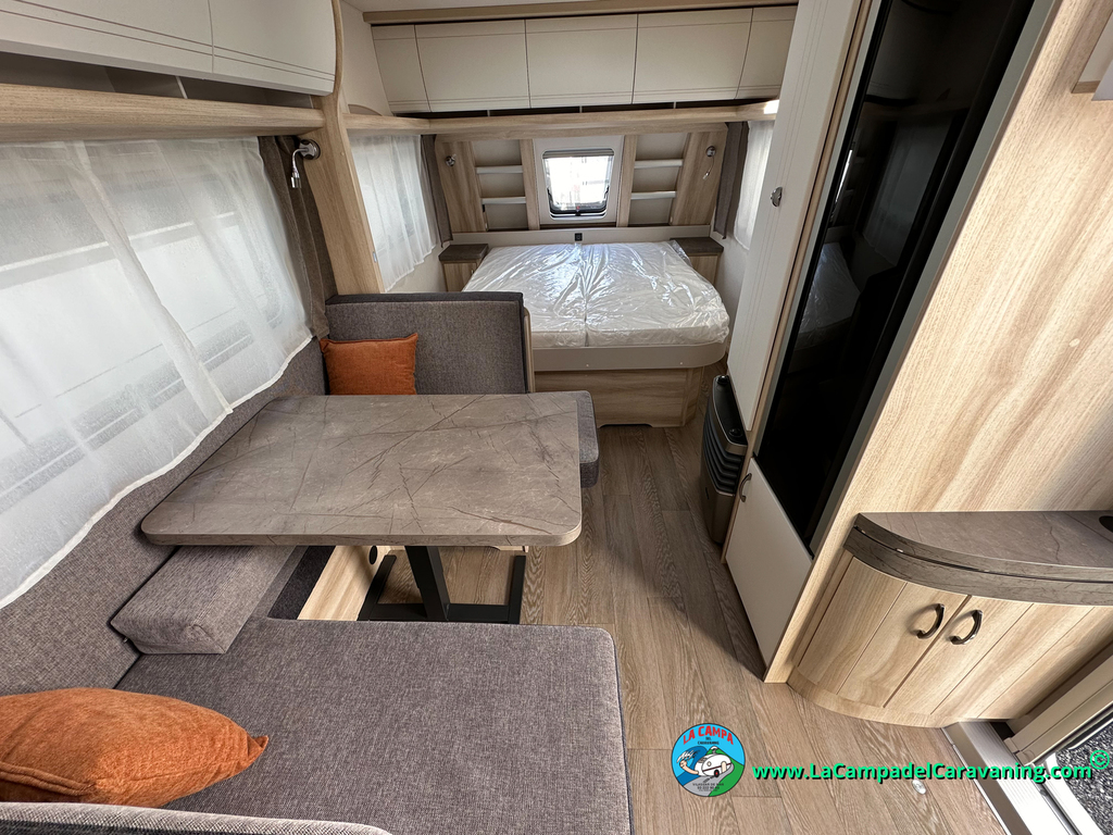 A destacar su baño con ducha independiente enorme. Un baño que enamora. Si buscas caravana y poder ducharte en ella con tu familia es de lo mas polivalente. Apta para parejas y familias con niños