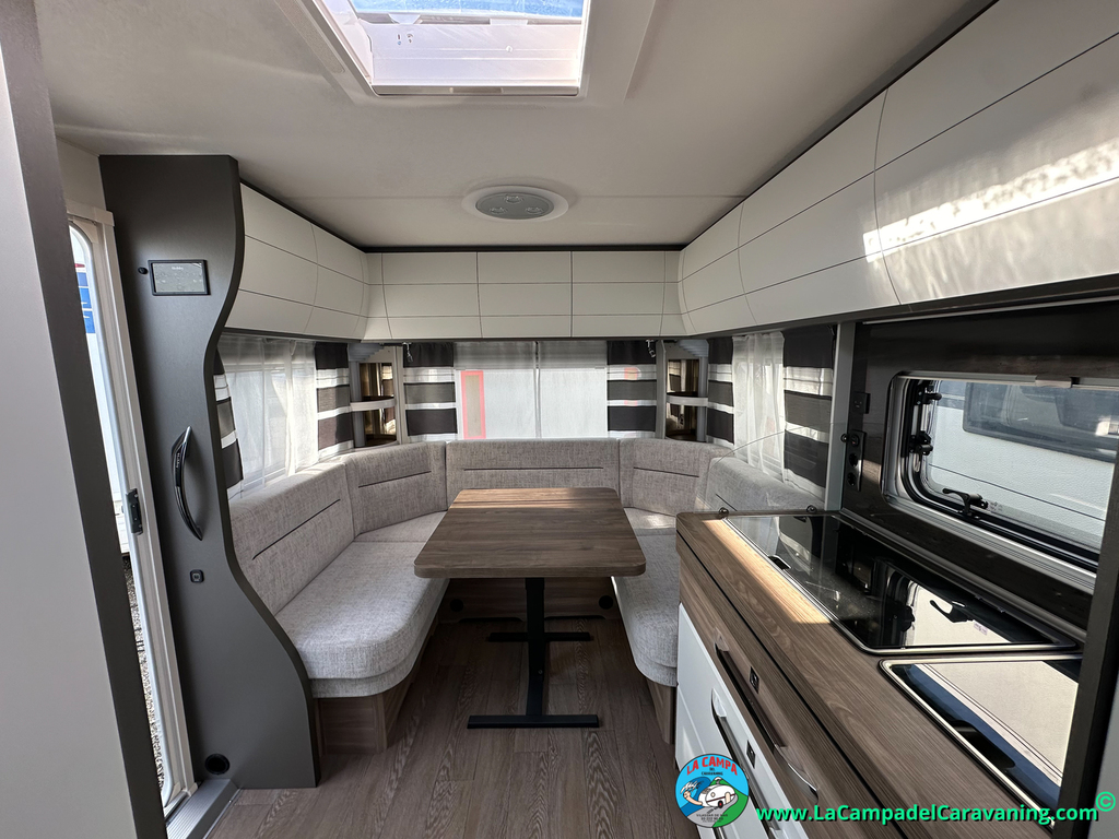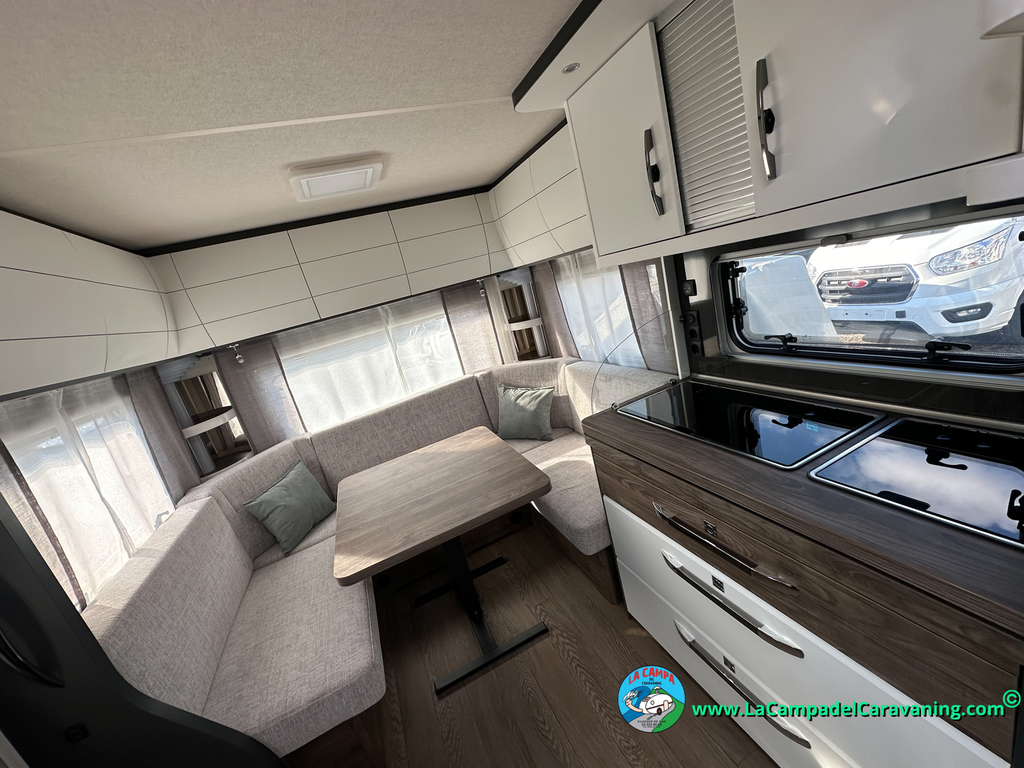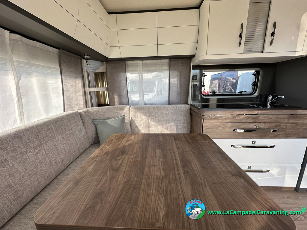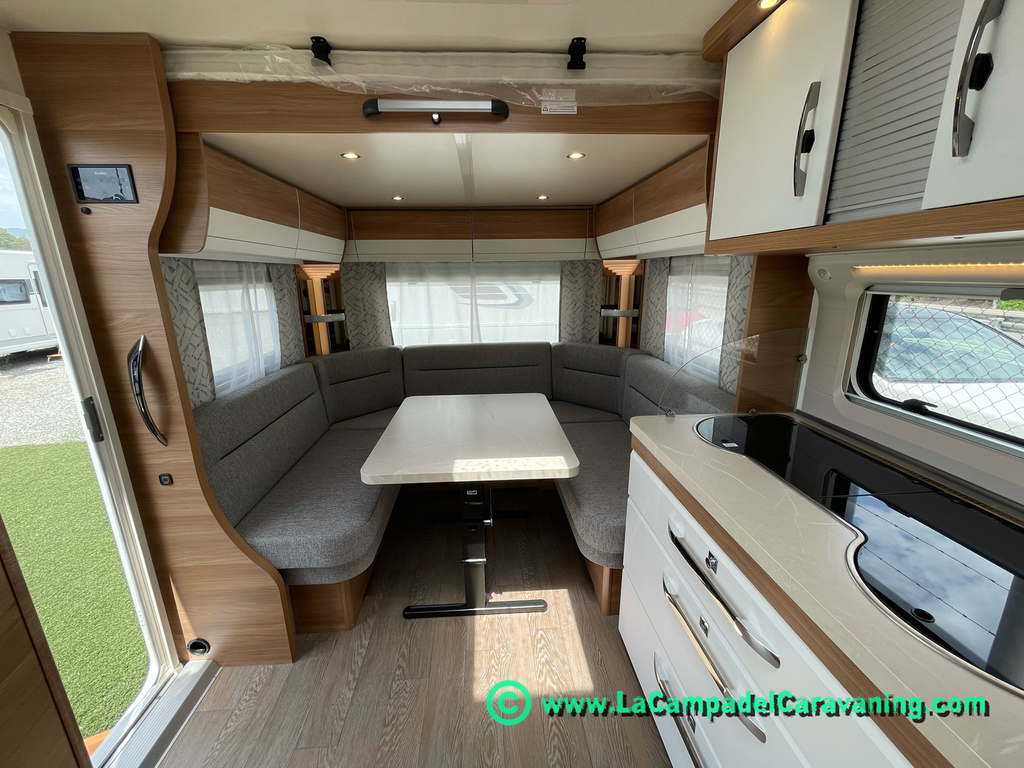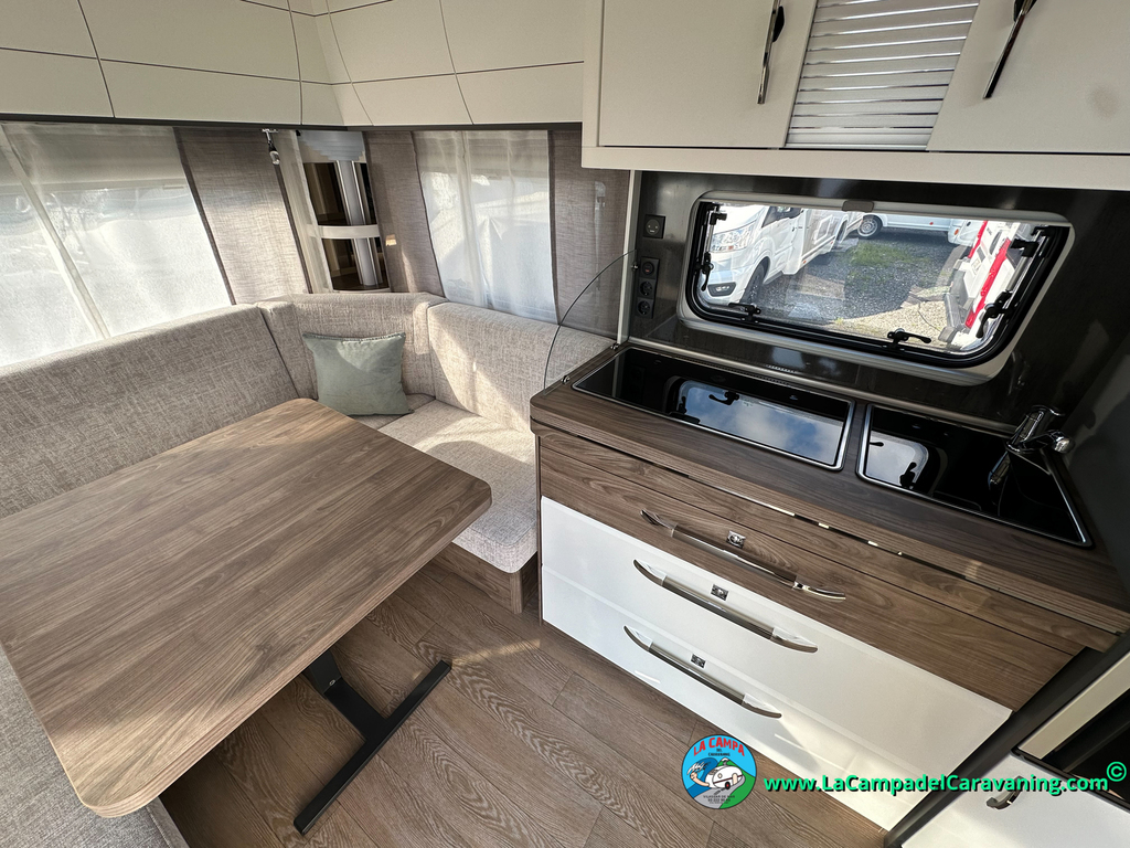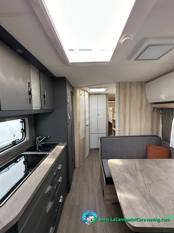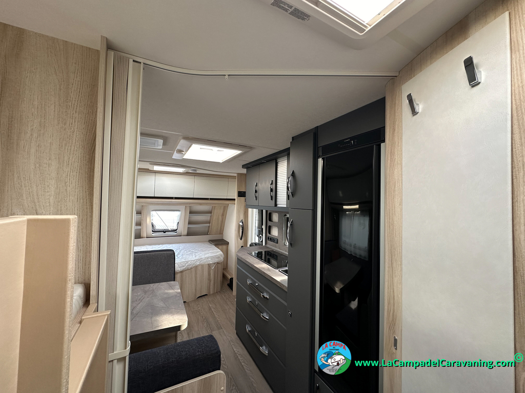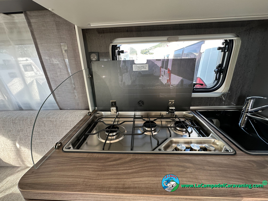 A destacar su baño con ducha independiente enorme. Un baño que enamora. Si buscas caravana y poder ducharte en ella con tu familia es de lo mas polivalente. Apta para parejas y familias con niños