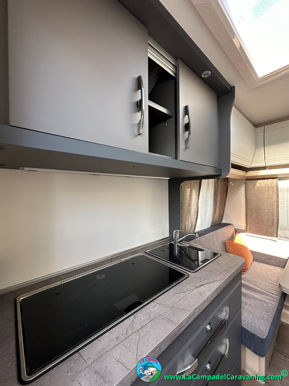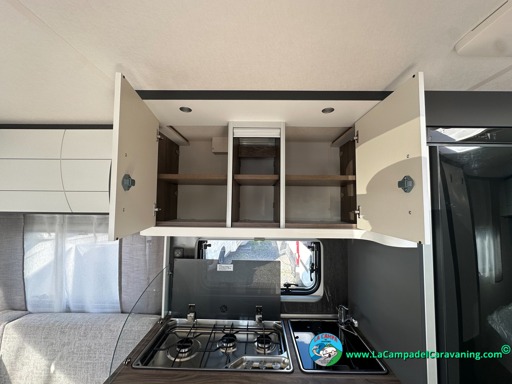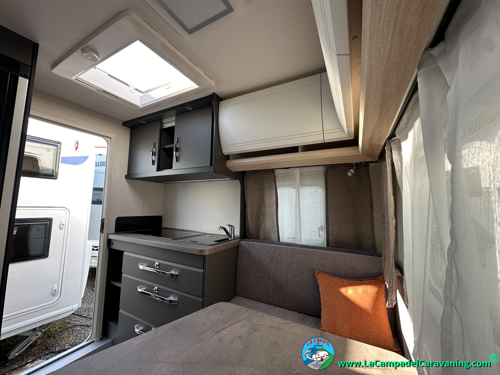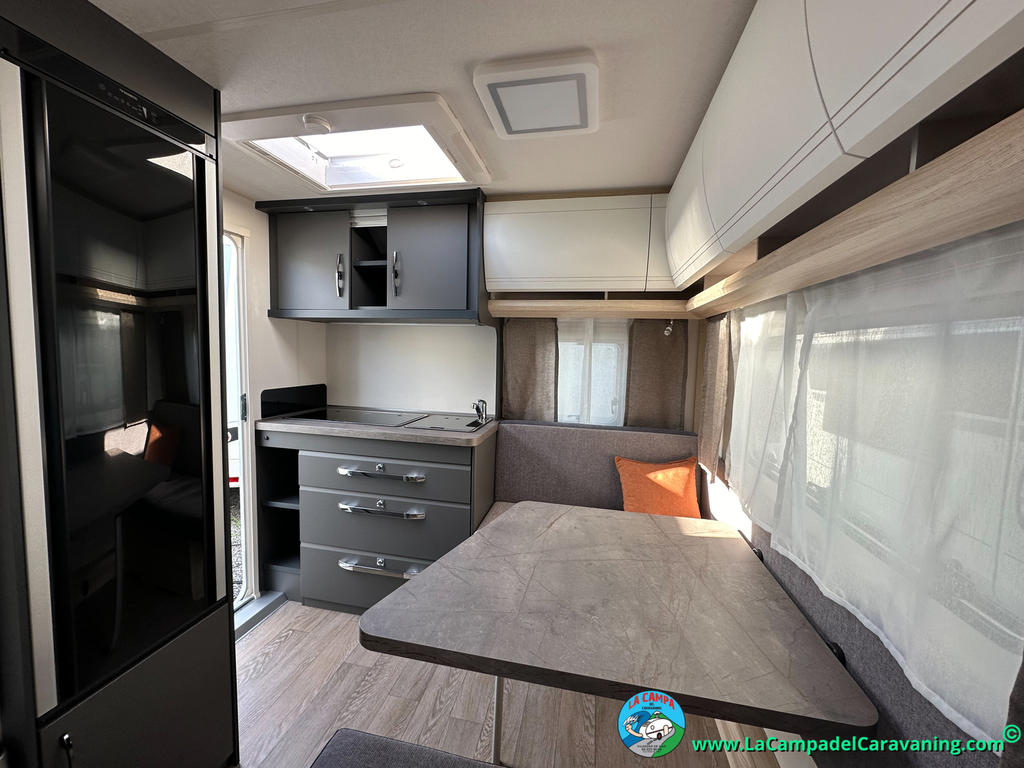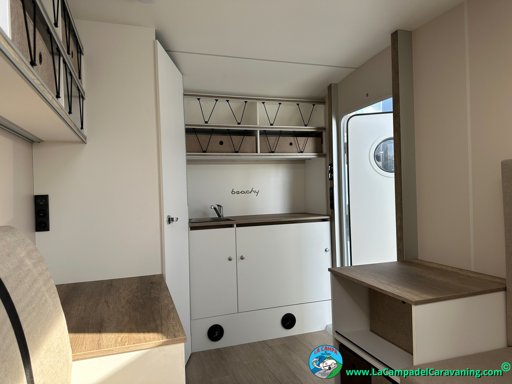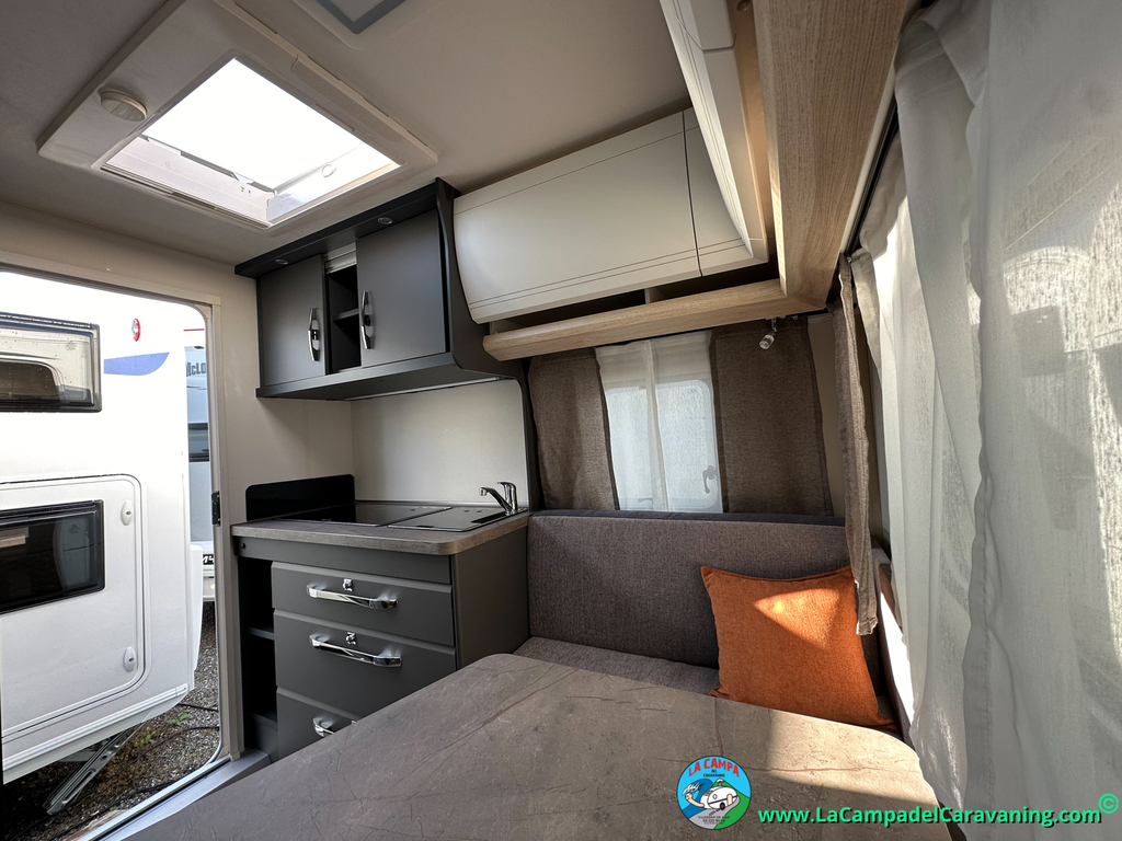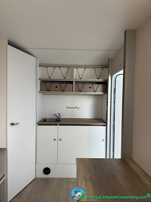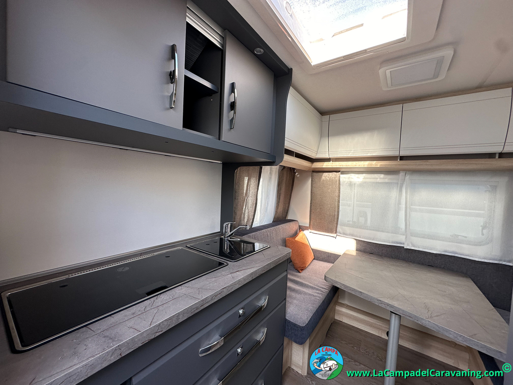 A destacar su baño con ducha independiente enorme. Un baño que enamora. Si buscas caravana y poder ducharte en ella con tu familia es de lo mas polivalente. Apta para parejas y familias con niños