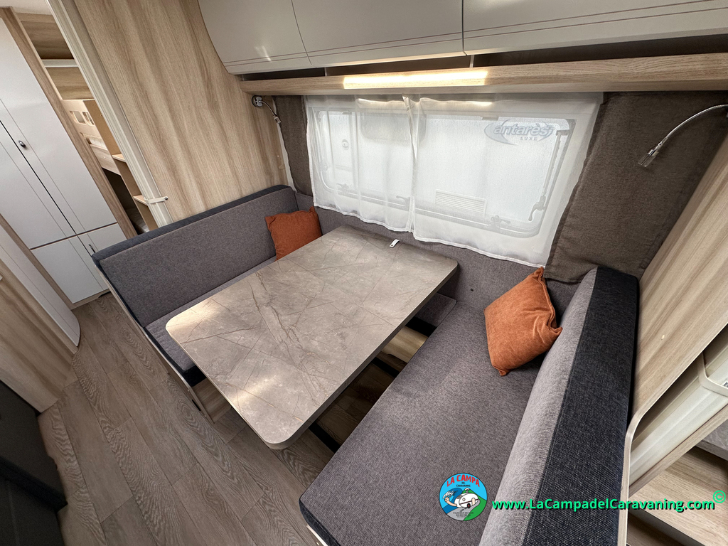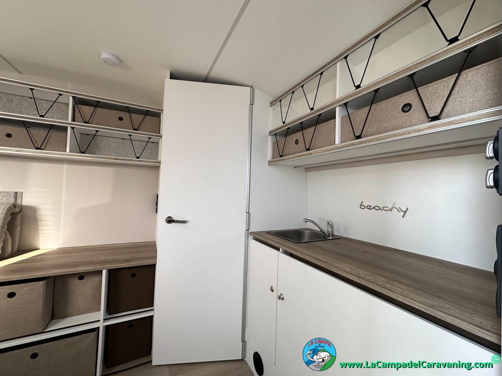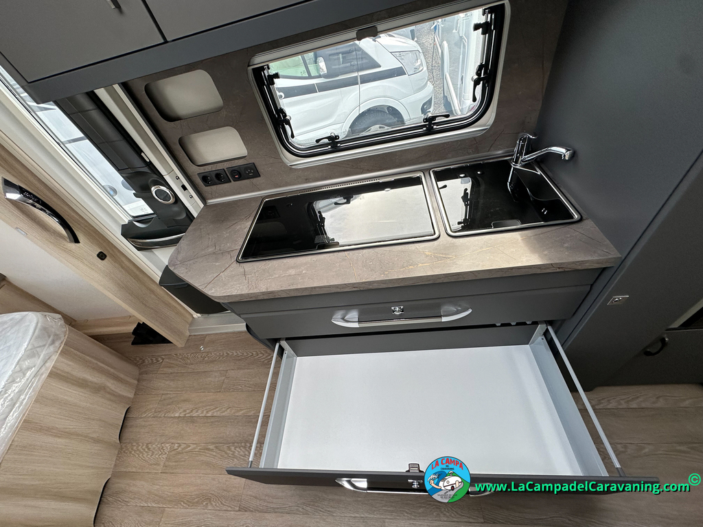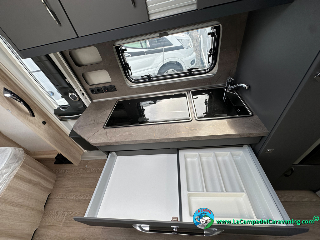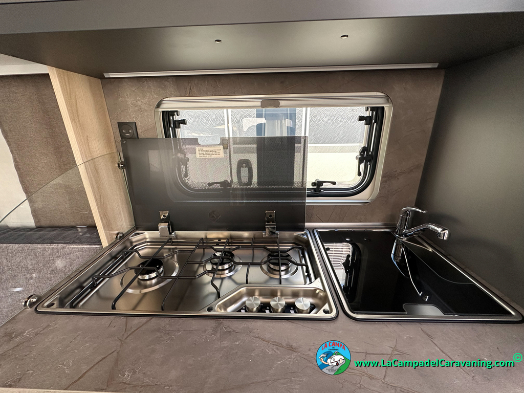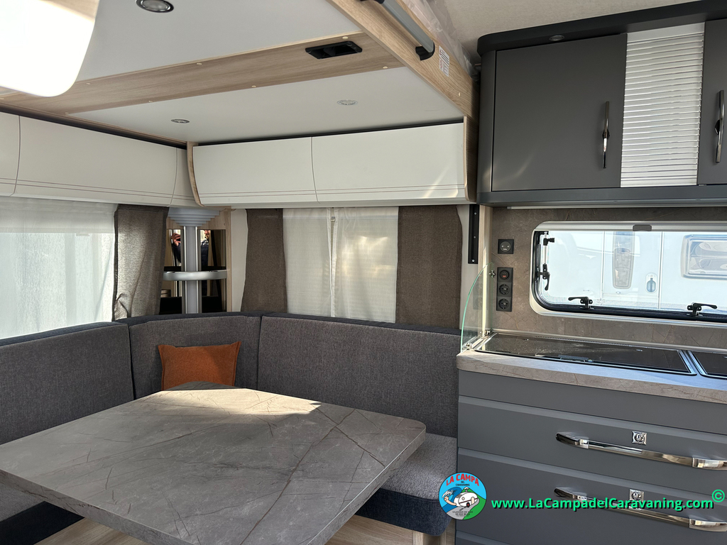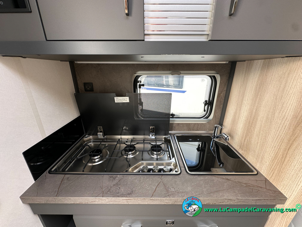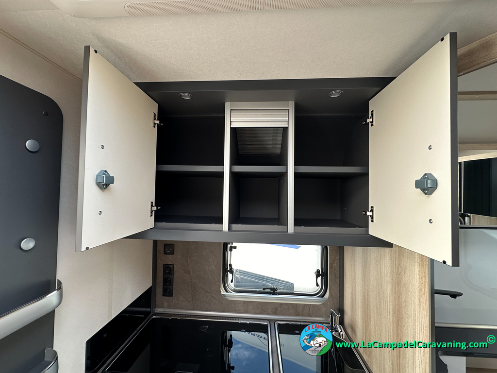 A destacar su baño con ducha independiente enorme. Un baño que enamora. Si buscas caravana y poder ducharte en ella con tu familia es de lo mas polivalente. Apta para parejas y familias con niños