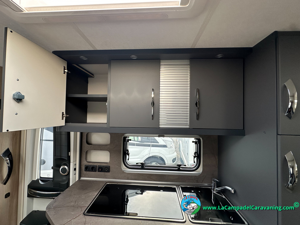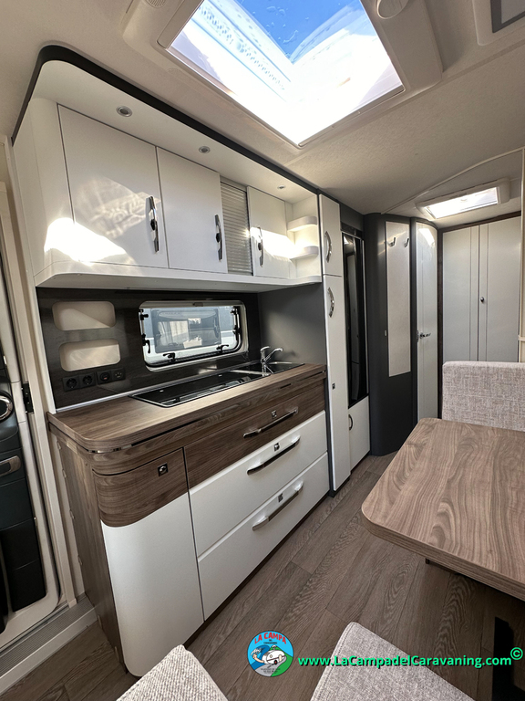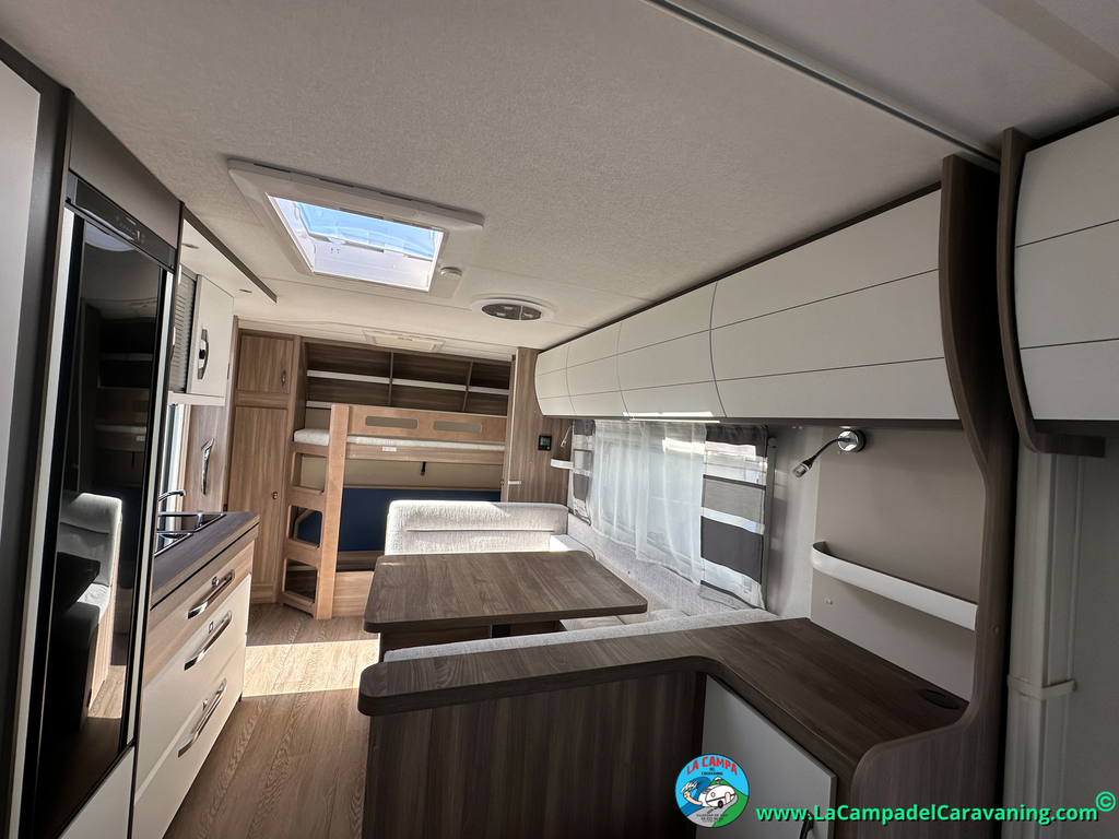 Nevera trivalente 150l diseño especial hobby, calefacción con distribución por conductos, 3 claraboyas (1 SuperPanoramica, 1 panorámica + 1 normal), luces leeds, estabilizador, WC químico, agua