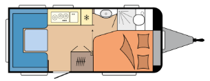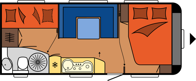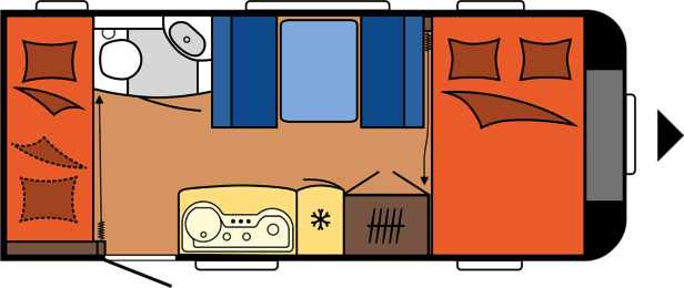La caravana Hobby mas economica, la mas pequeña, la mas rutera! pero aun asi, muy amplia y espaciosa gracias a su gran distribucion.