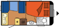 Una caravana compacta, sencilla, con un estilo muy peculiar por sus formas redondeadas.