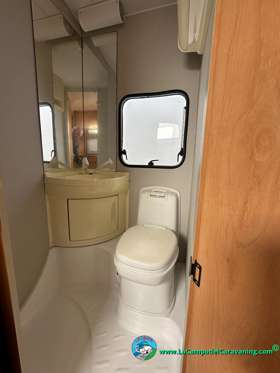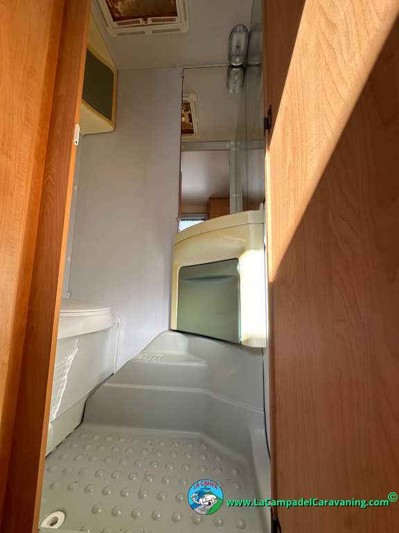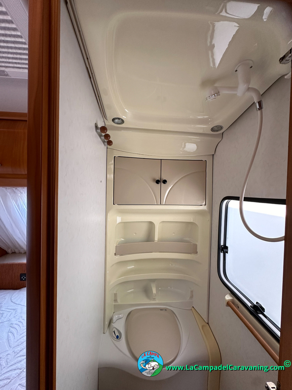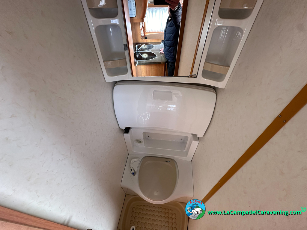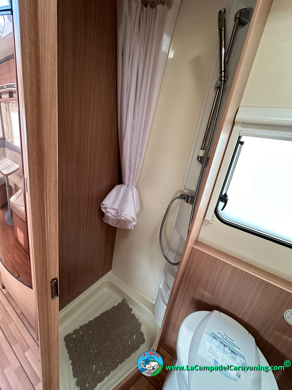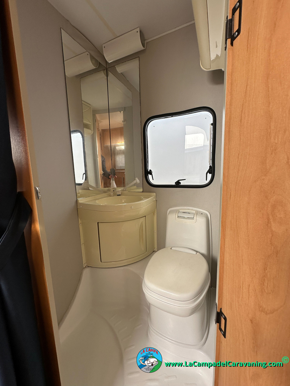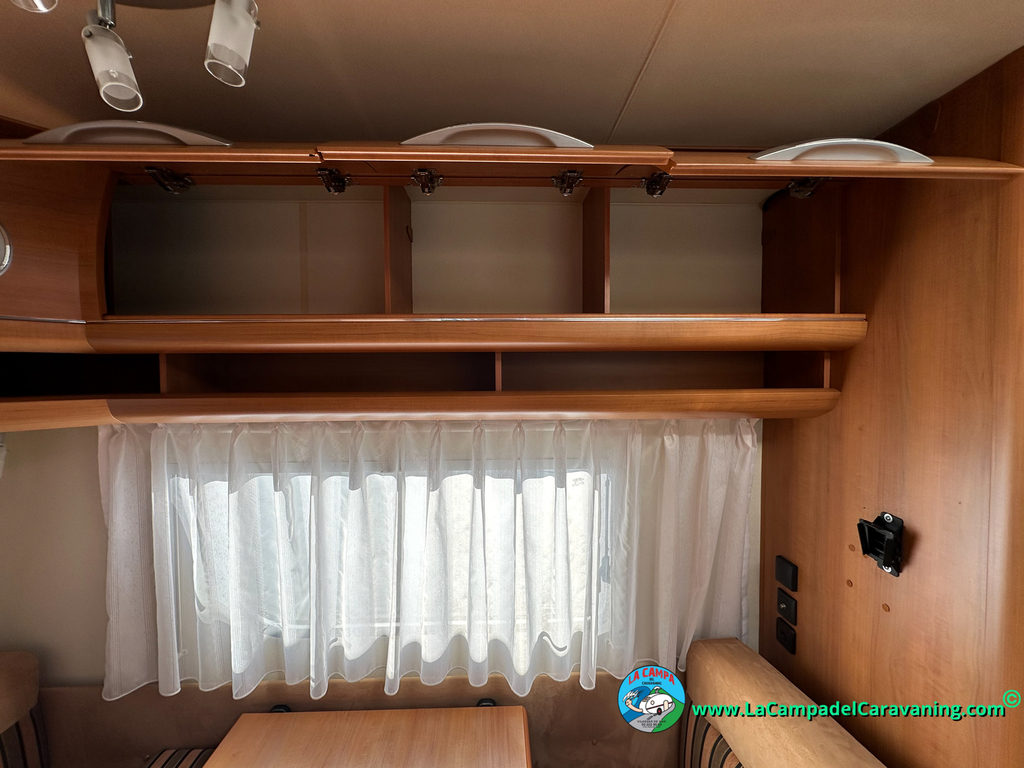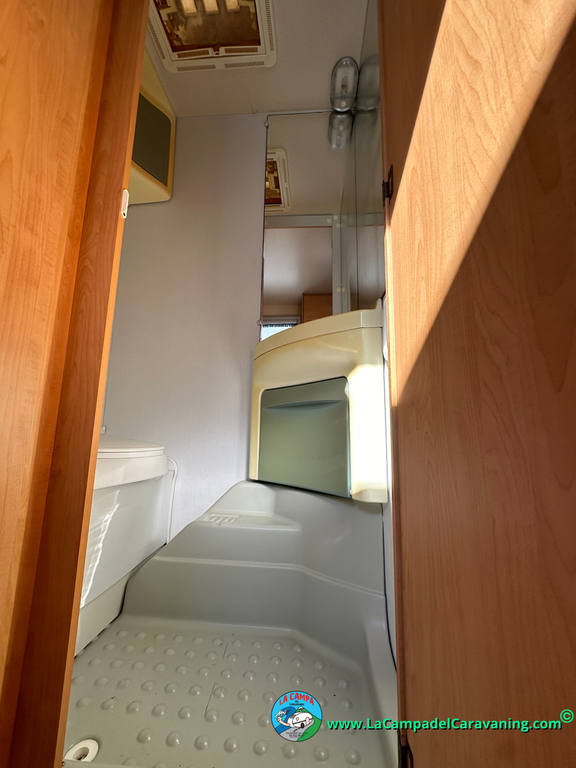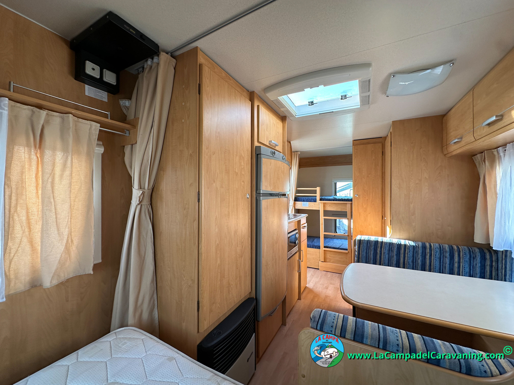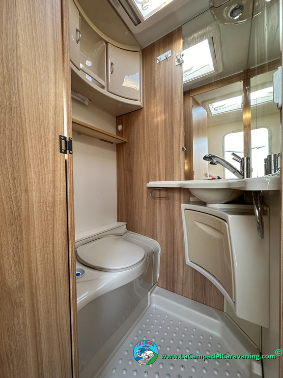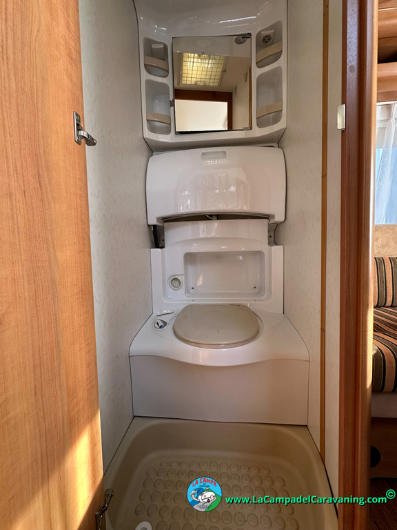 Nevera trivalente con congelador, WC químico, ducha semindependiente, antena TV, microondas, calefaccion con distribución por conductos, 2 claraboyas (1 panorámica), mosquitera en puerta de entrada, estabilizador Alko.