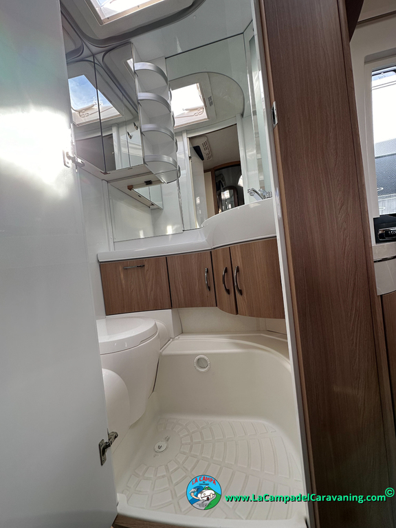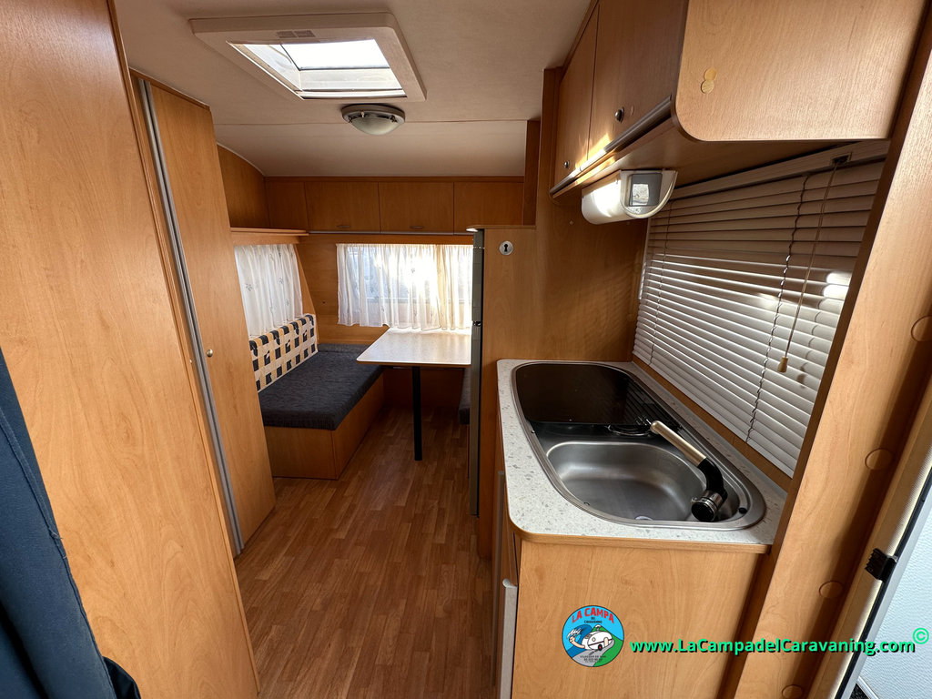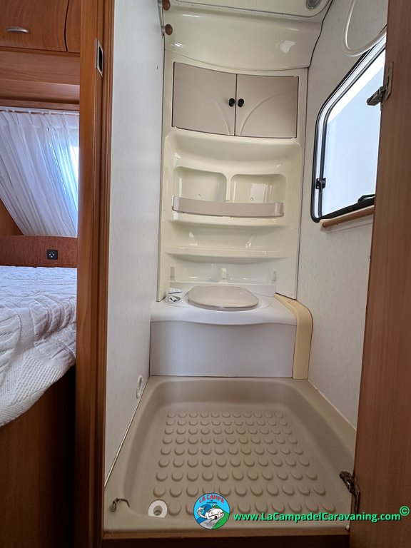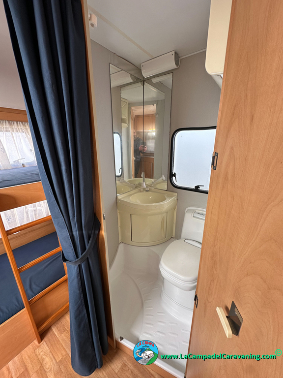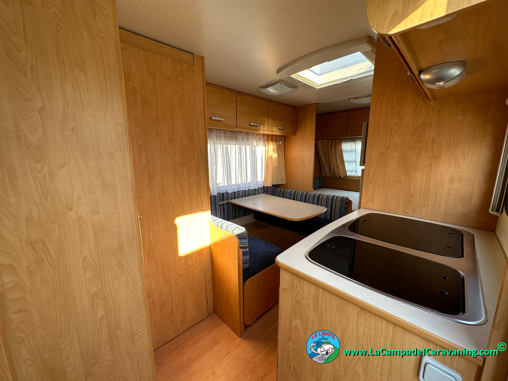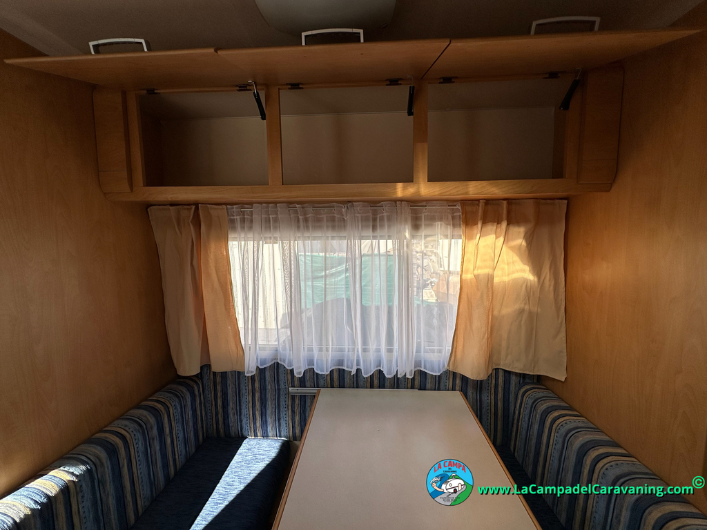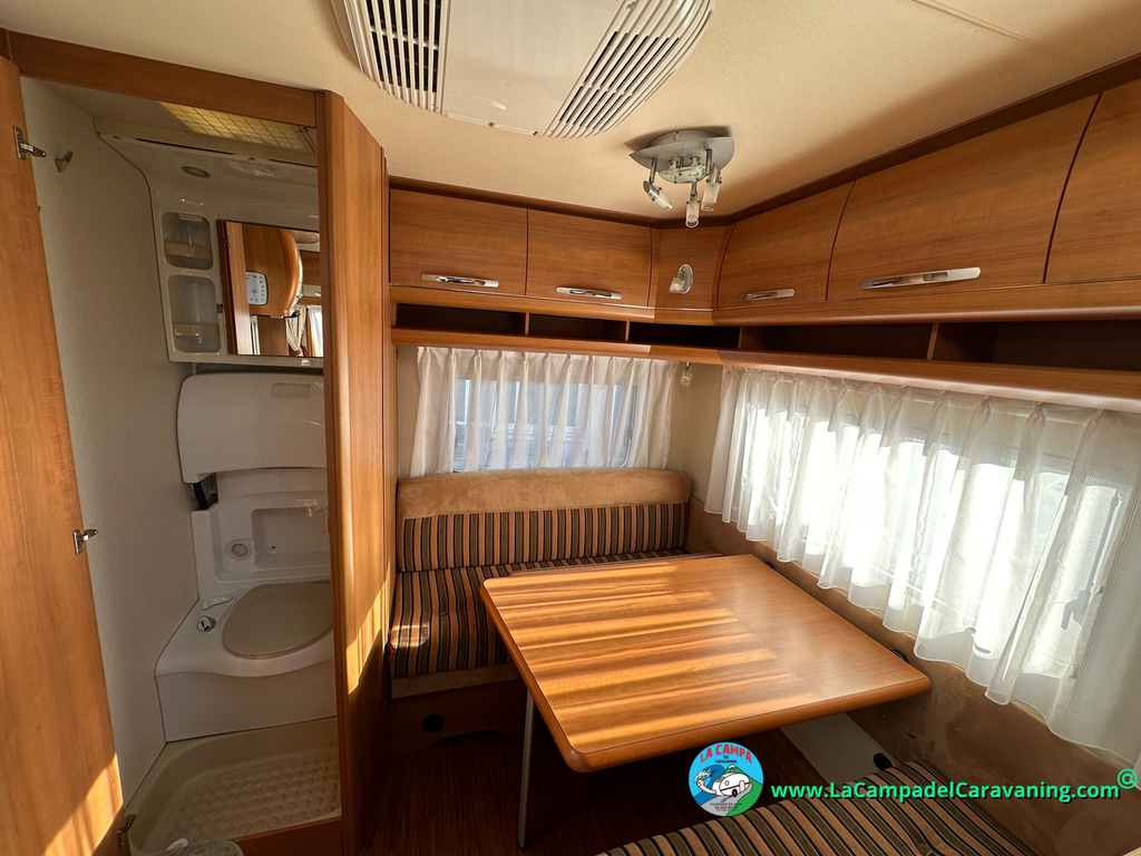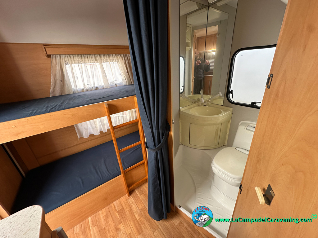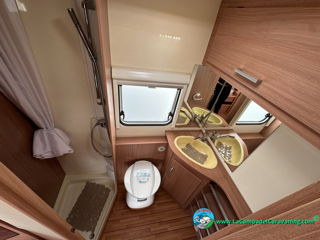 Nevera trivalente con congelador, WC químico, ducha semindependiente, antena TV, microondas, calefaccion con distribución por conductos, 2 claraboyas (1 panorámica), mosquitera en puerta de entrada, estabilizador Alko.