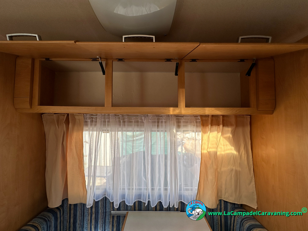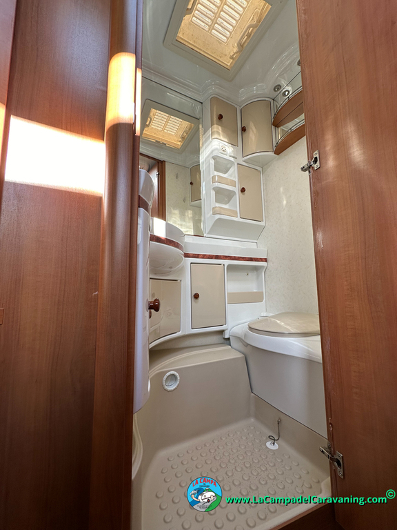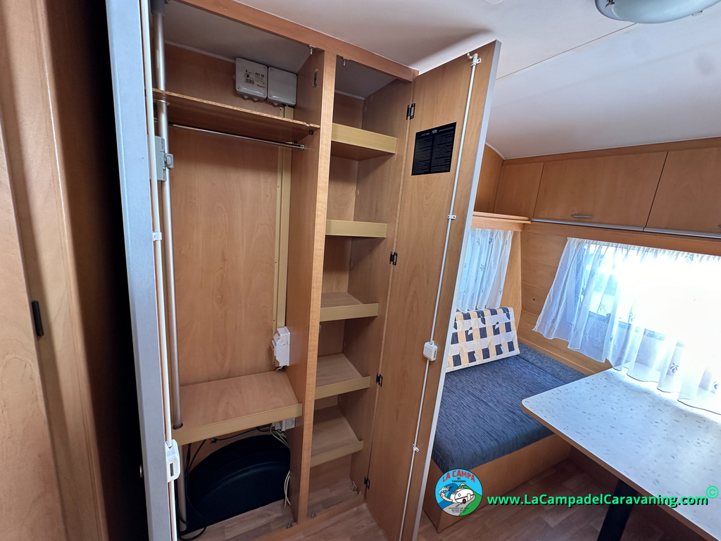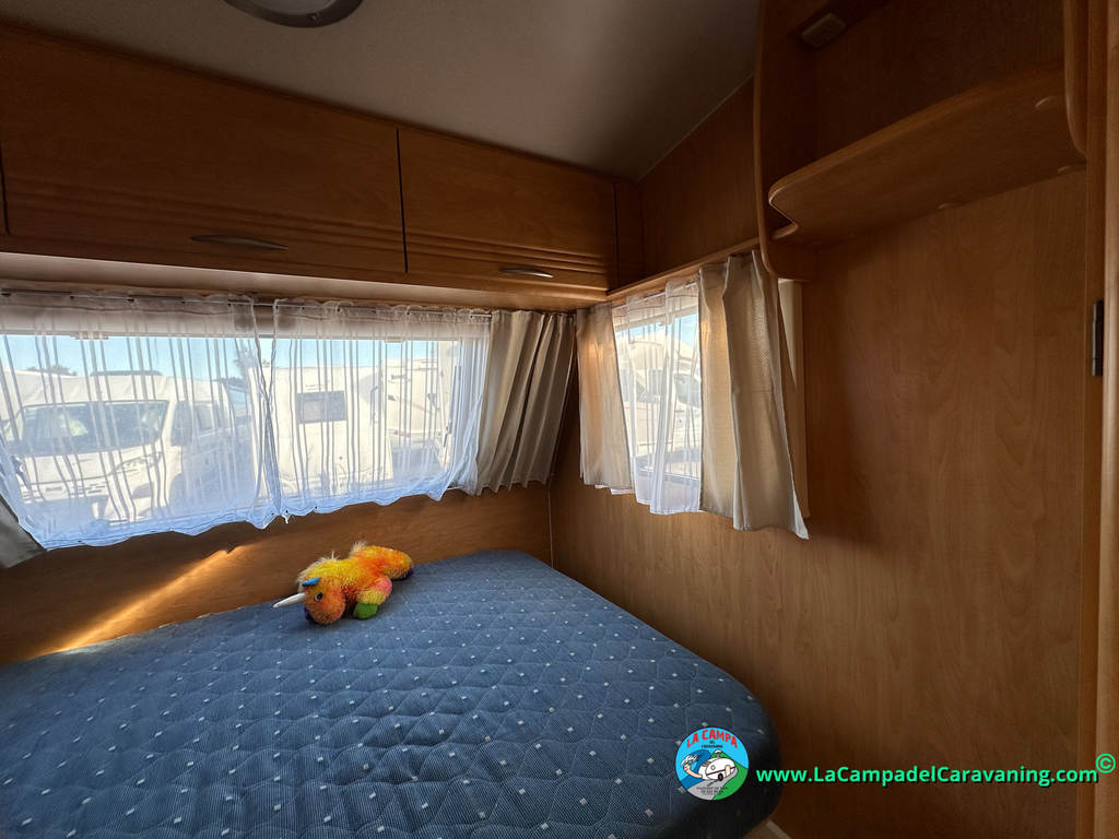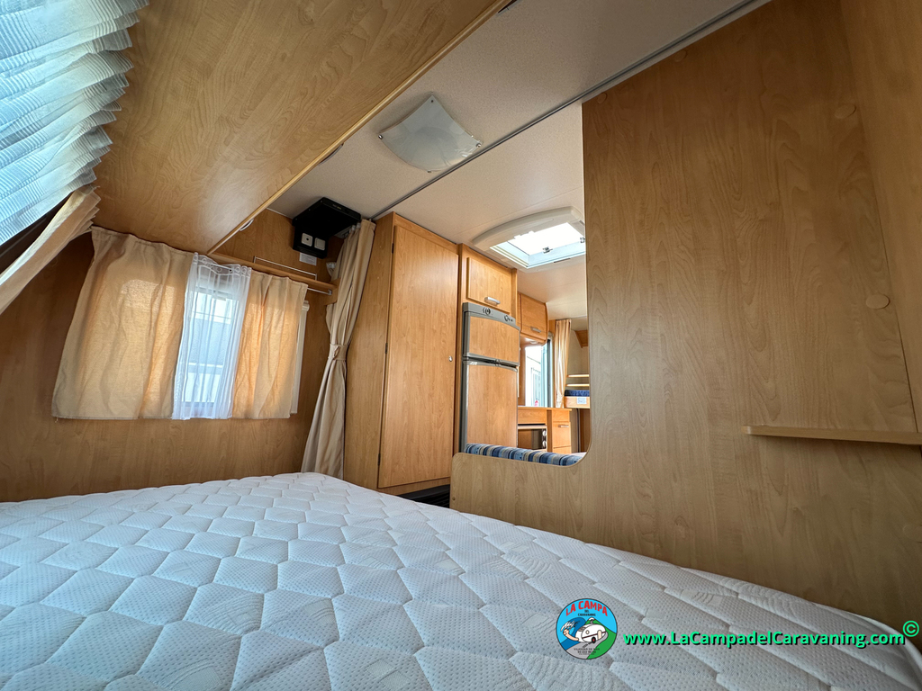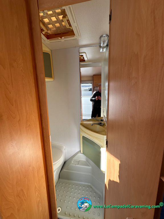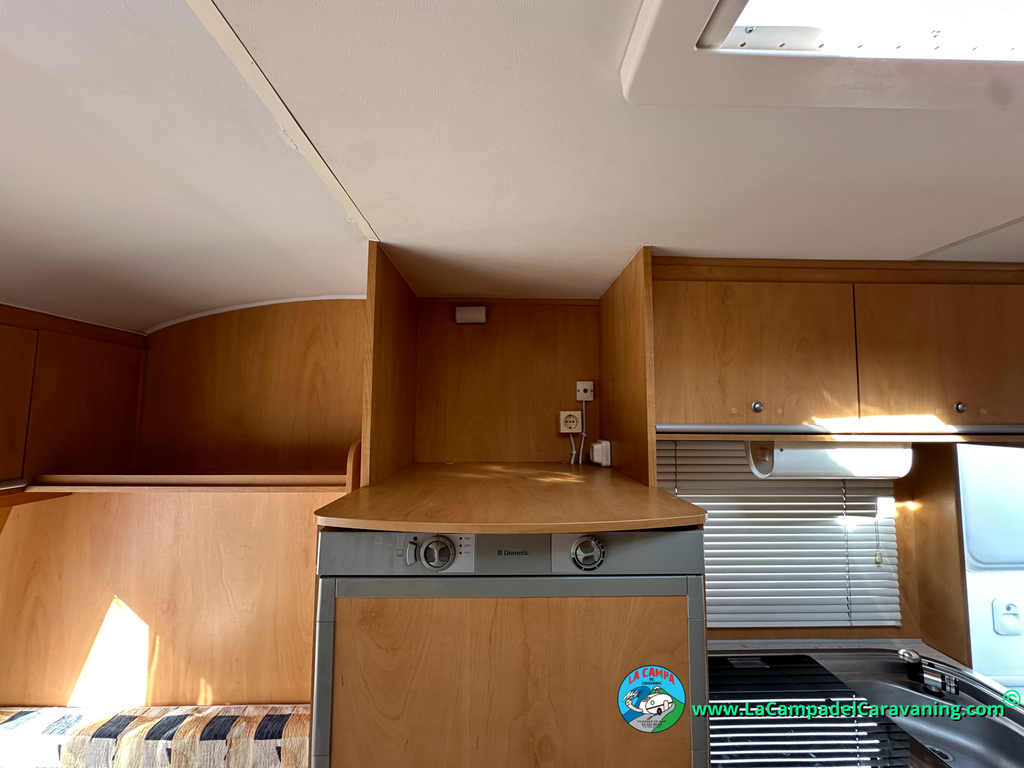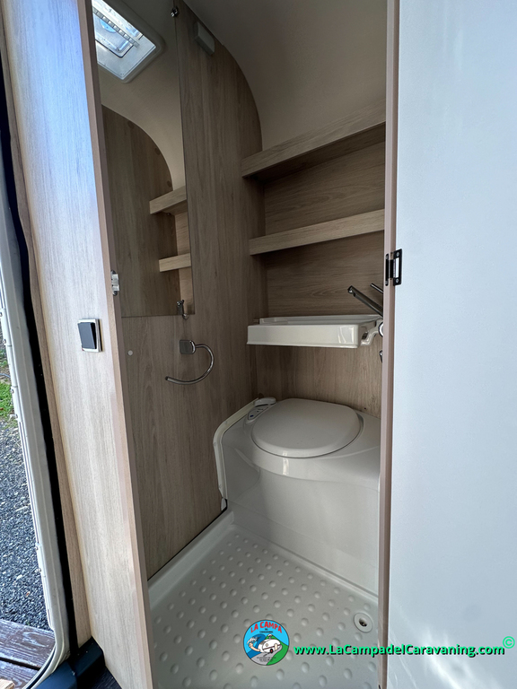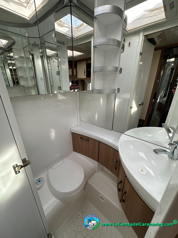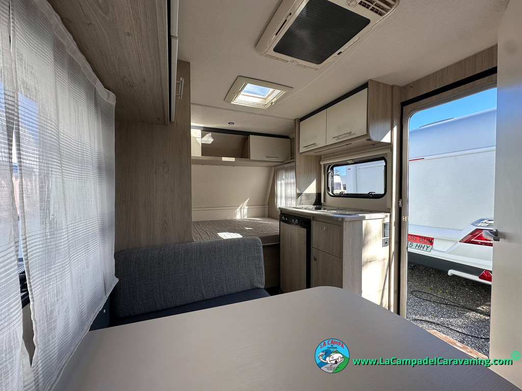 Nevera trivalente con congelador, WC químico, ducha semindependiente, antena TV, microondas, calefaccion con distribución por conductos, 2 claraboyas (1 panorámica), mosquitera en puerta de entrada, estabilizador Alko.