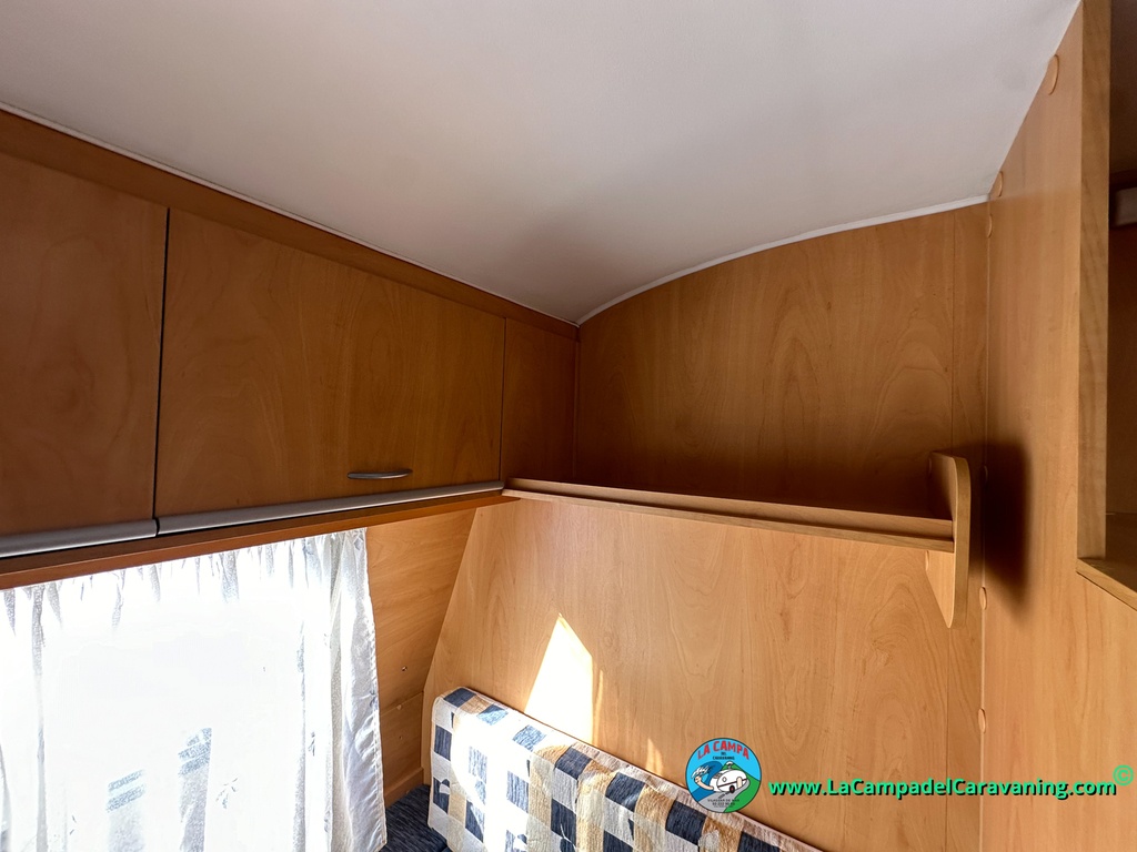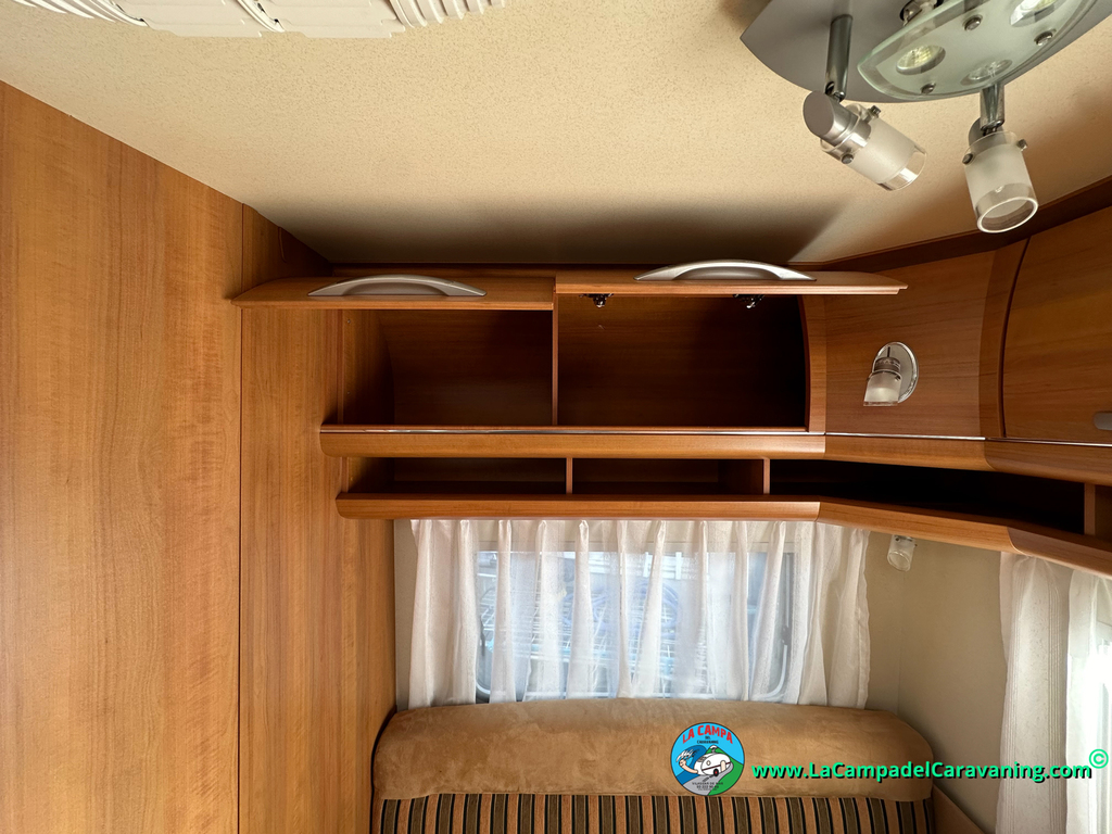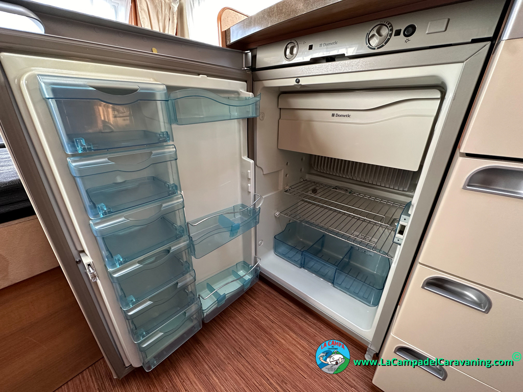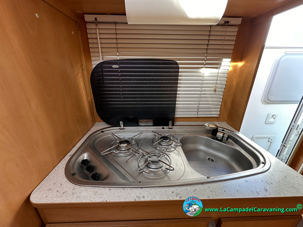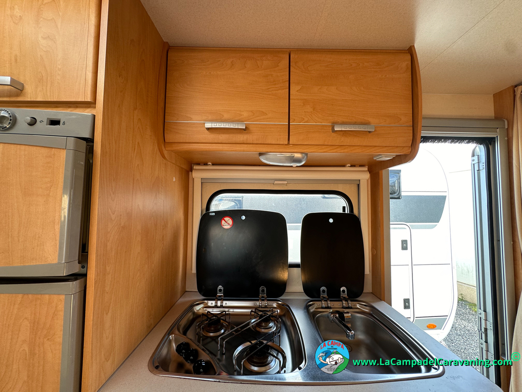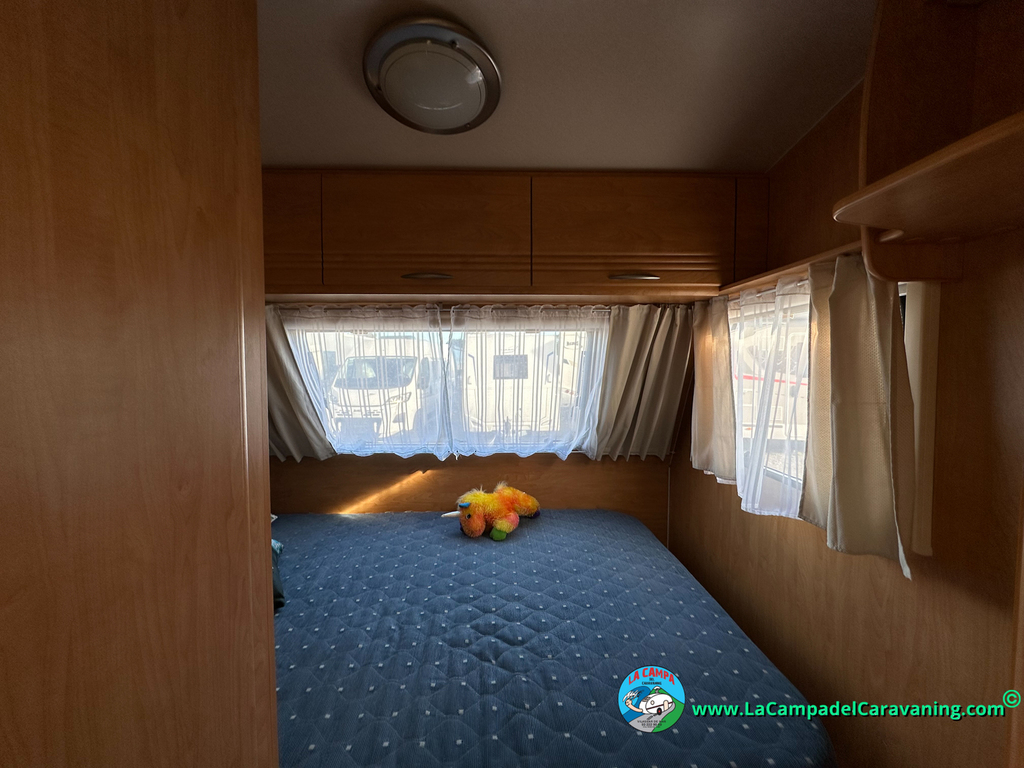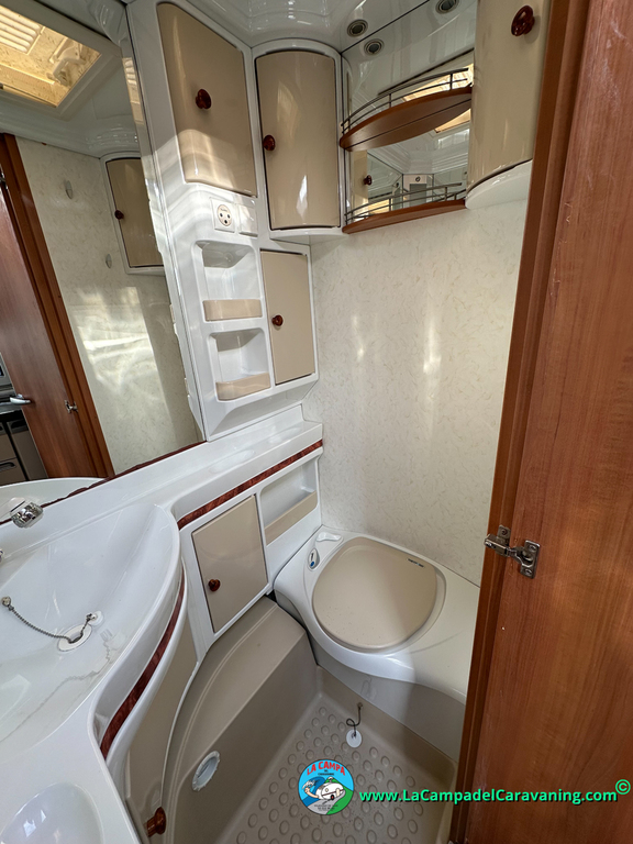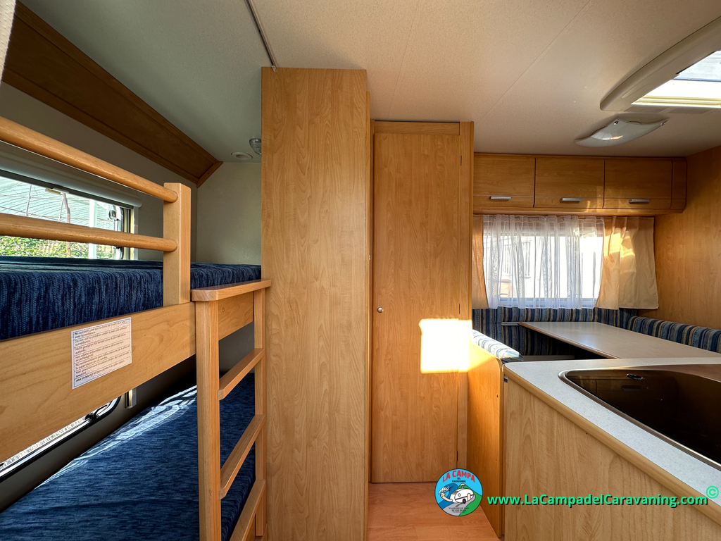 Nevera trivalente con congelador, WC químico, ducha semindependiente, antena TV, microondas, calefaccion con distribución por conductos, 2 claraboyas (1 panorámica), mosquitera en puerta de entrada, estabilizador Alko.