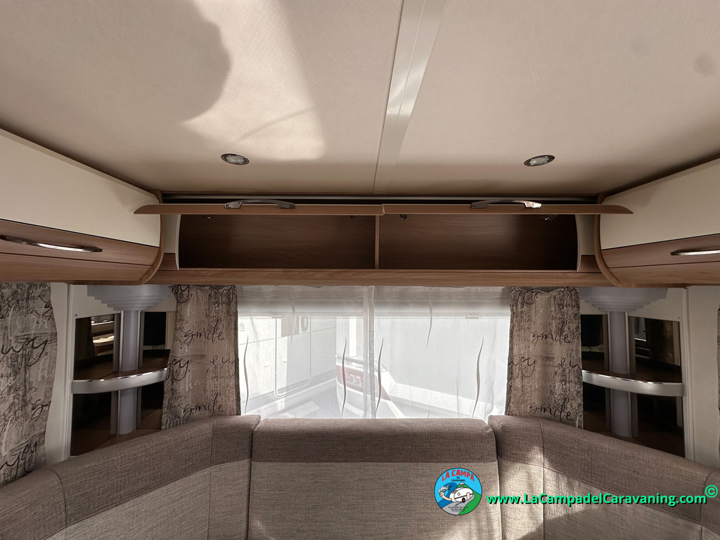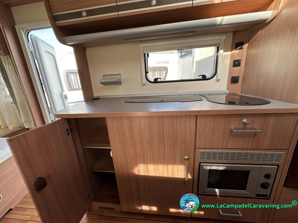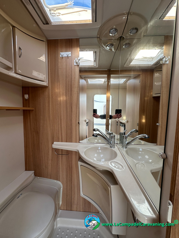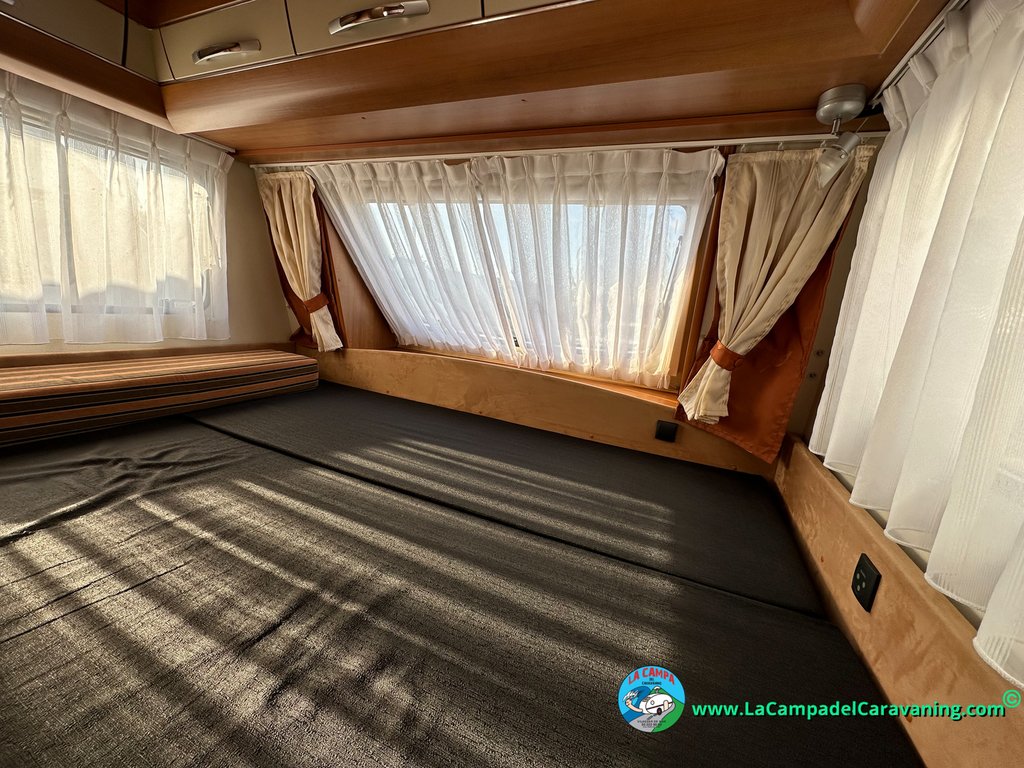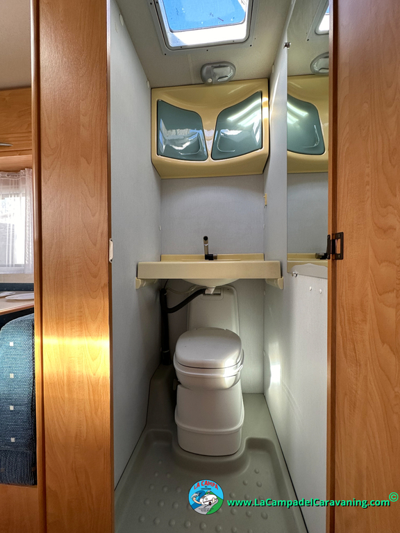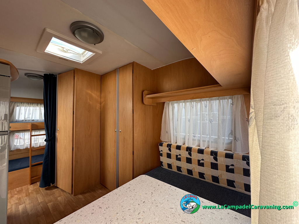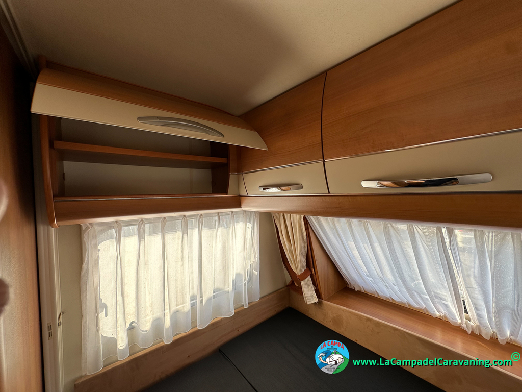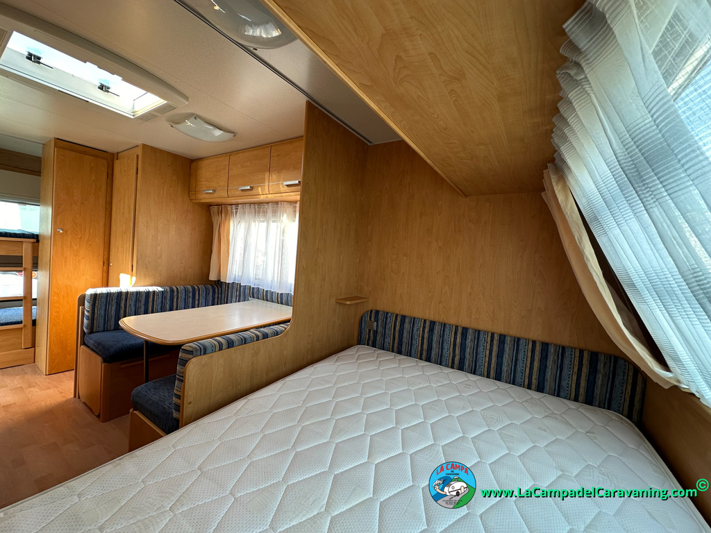 Nevera trivalente con congelador, WC químico, ducha semindependiente, antena TV, microondas, calefaccion con distribución por conductos, 2 claraboyas (1 panorámica), mosquitera en puerta de entrada, estabilizador Alko.