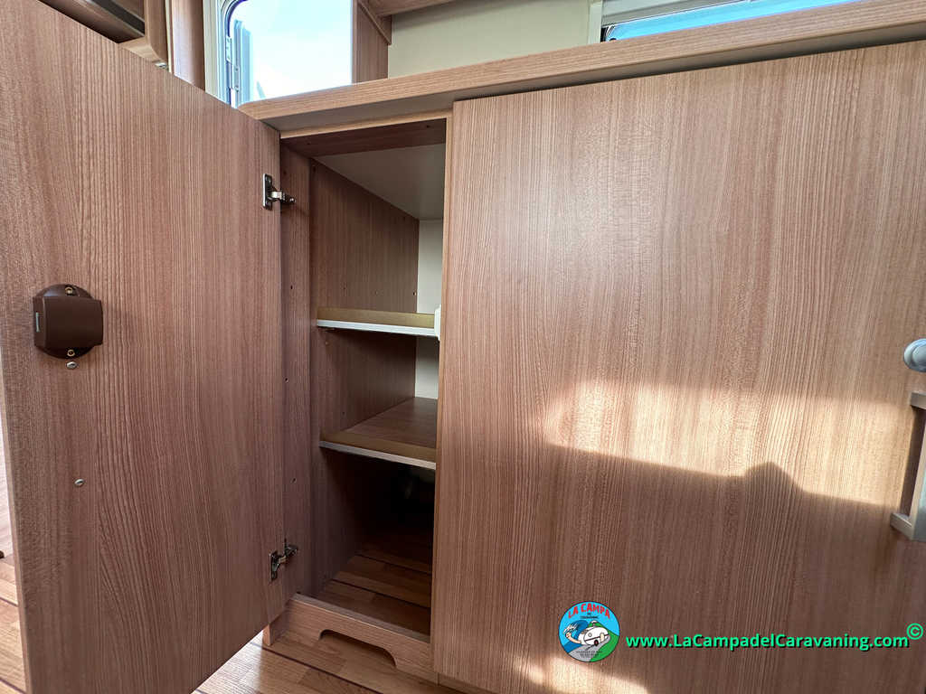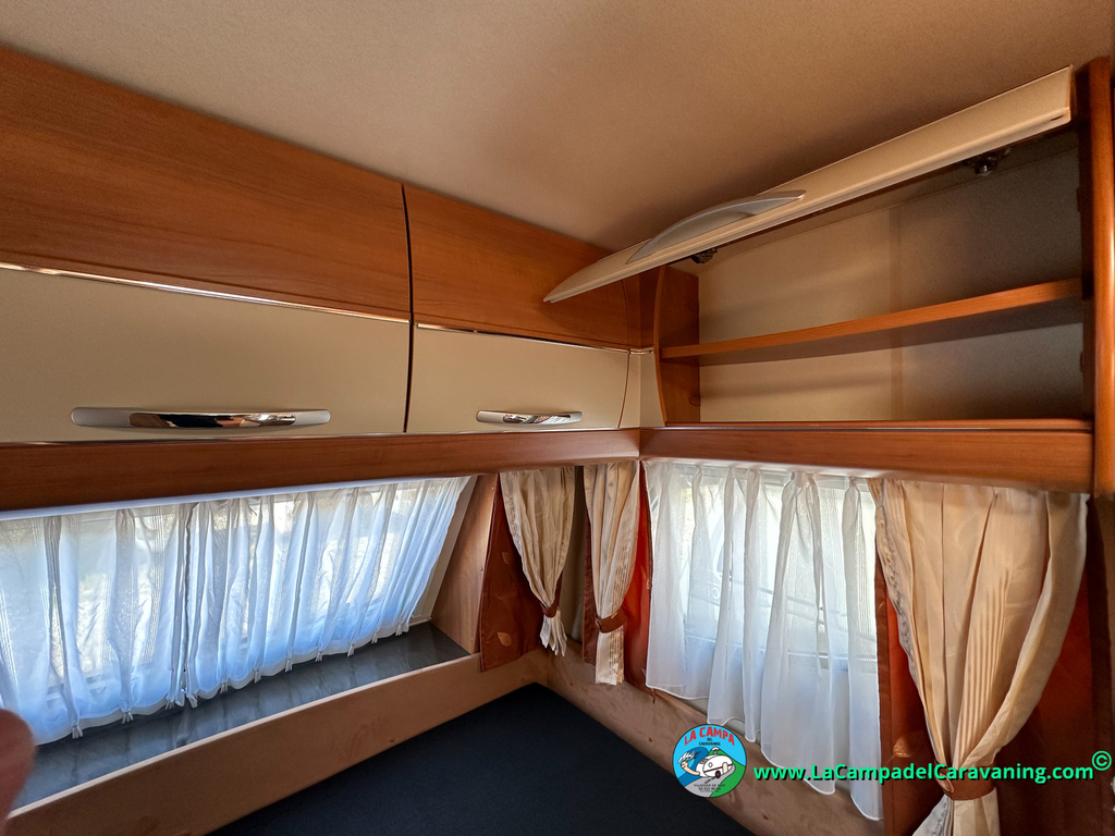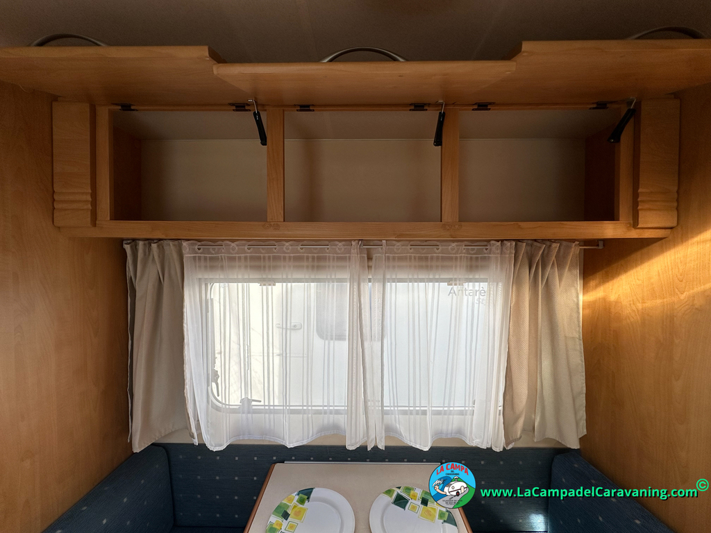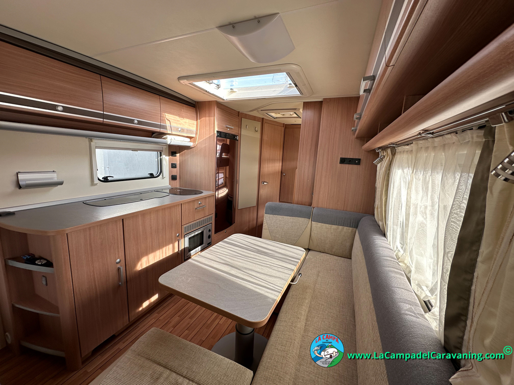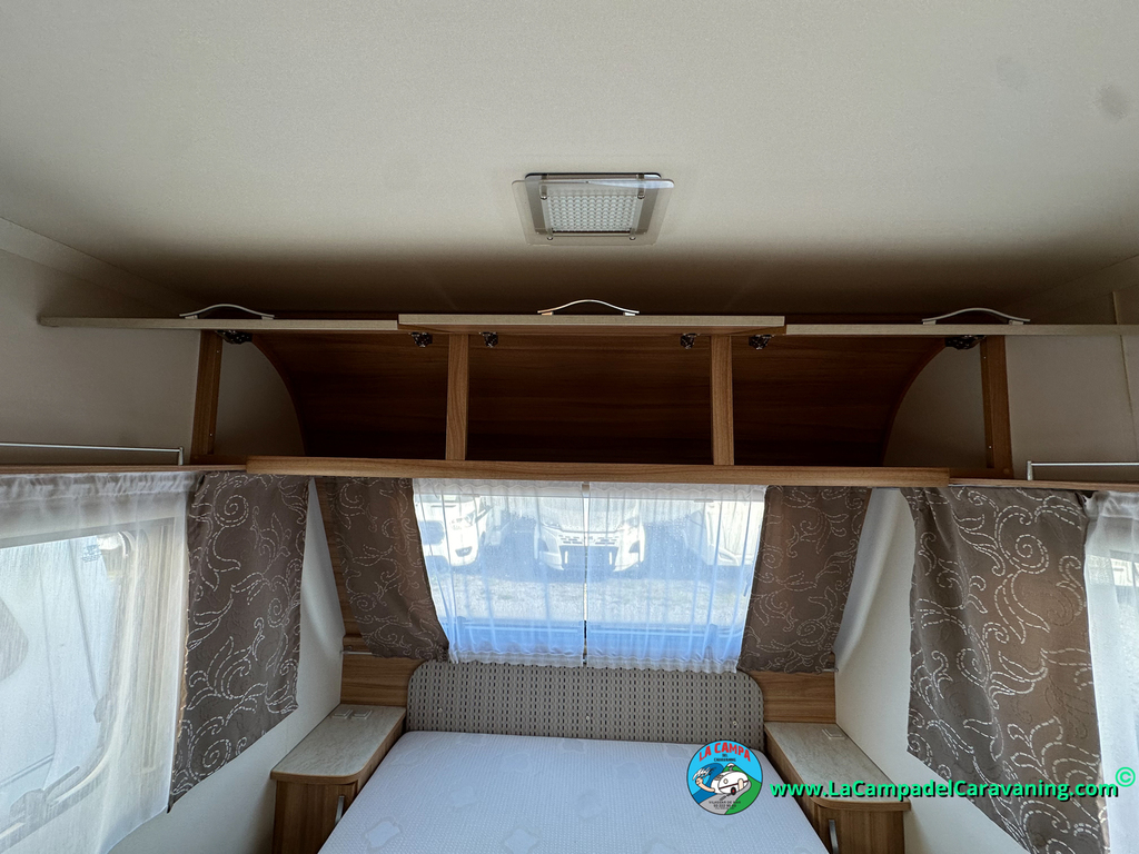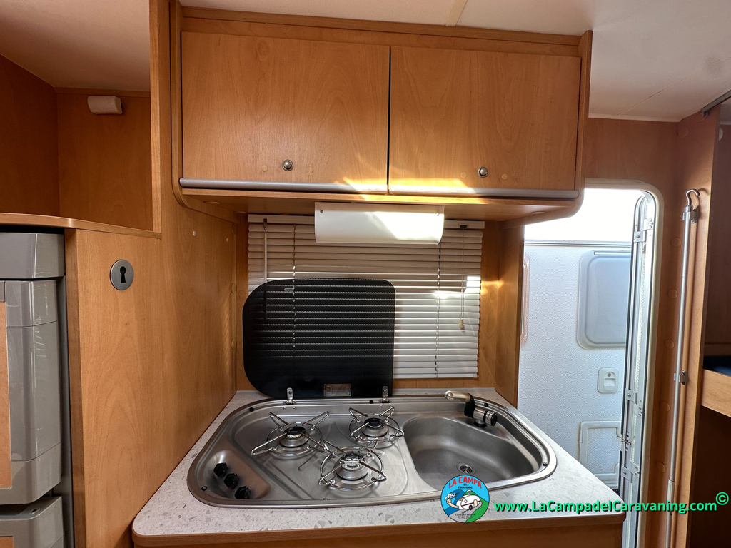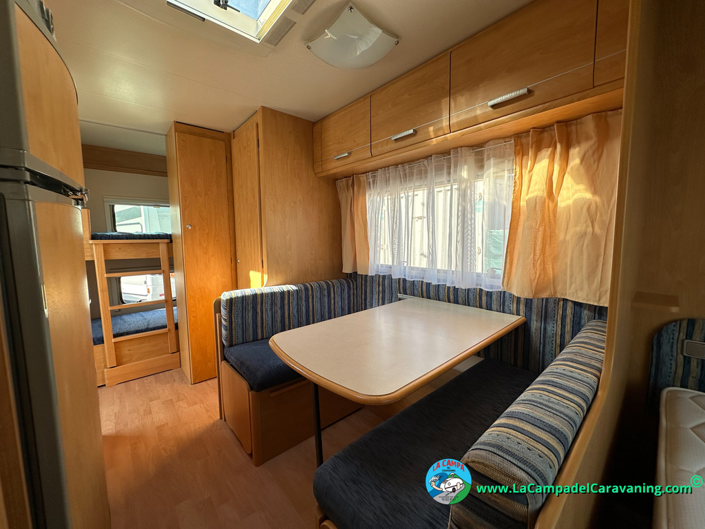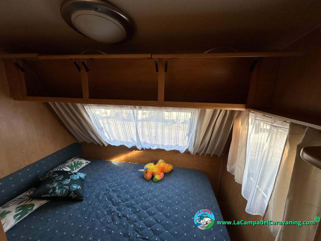 Nevera trivalente con congelador, WC químico, ducha semindependiente, antena TV, microondas, calefaccion con distribución por conductos, 2 claraboyas (1 panorámica), mosquitera en puerta de entrada, estabilizador Alko.