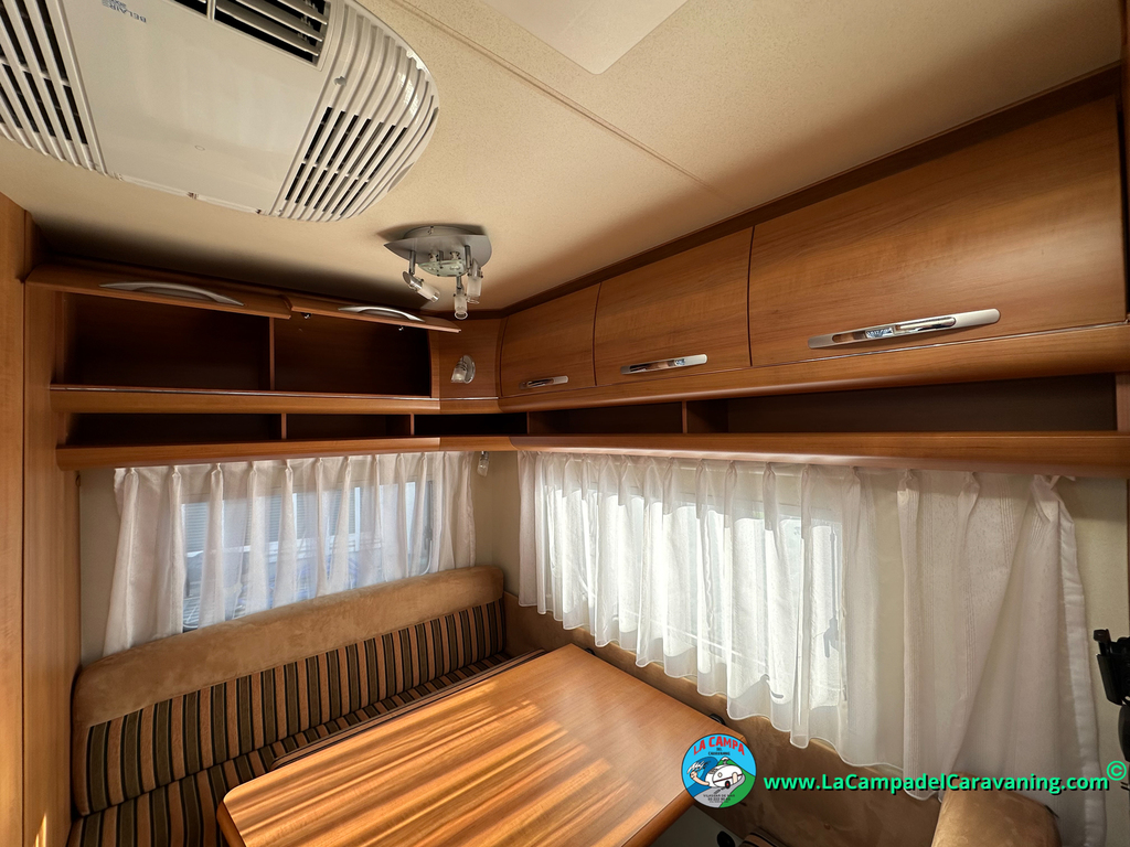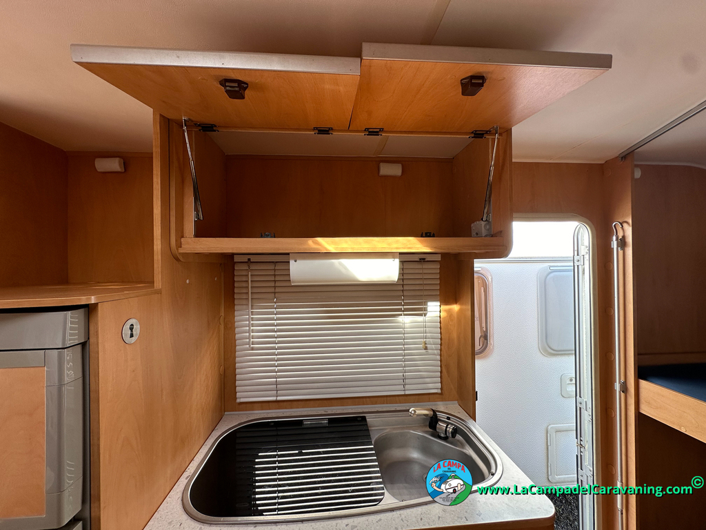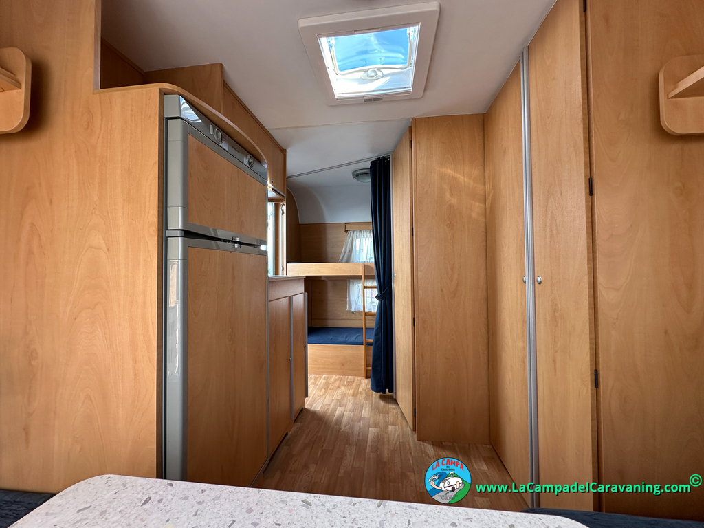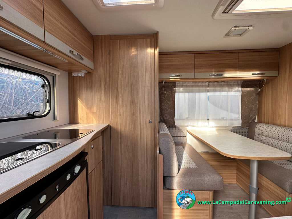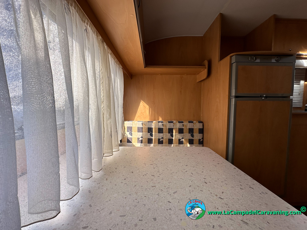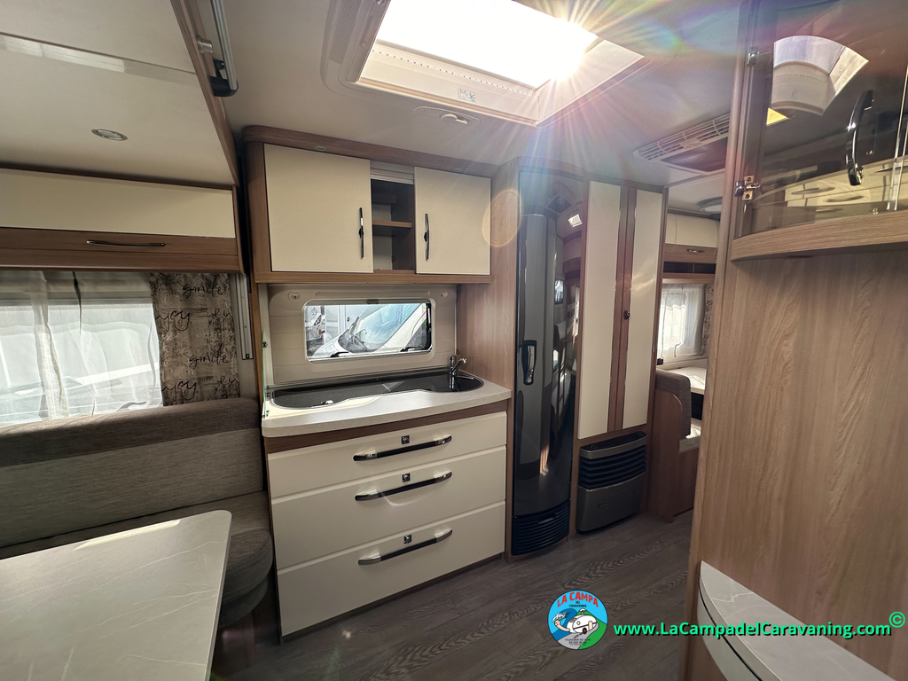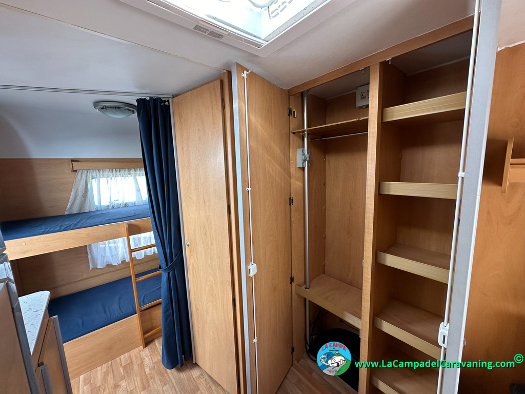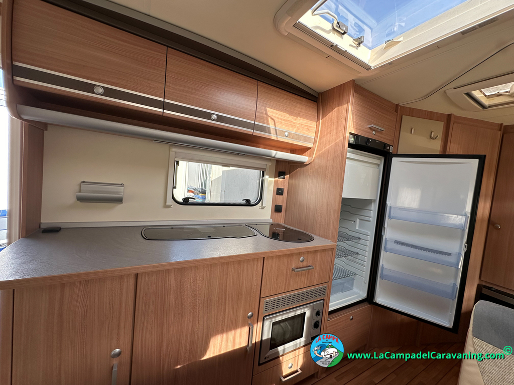 Nevera trivalente con congelador, WC químico, ducha semindependiente, antena TV, microondas, calefaccion con distribución por conductos, 2 claraboyas (1 panorámica), mosquitera en puerta de entrada, estabilizador Alko.