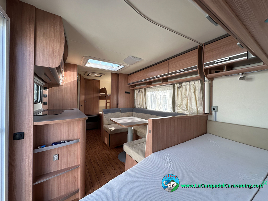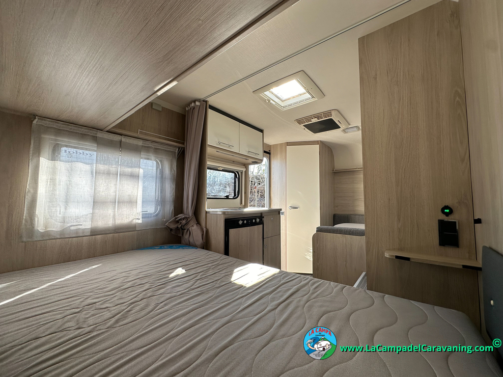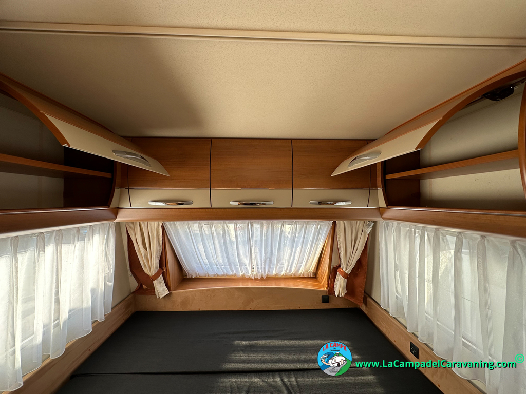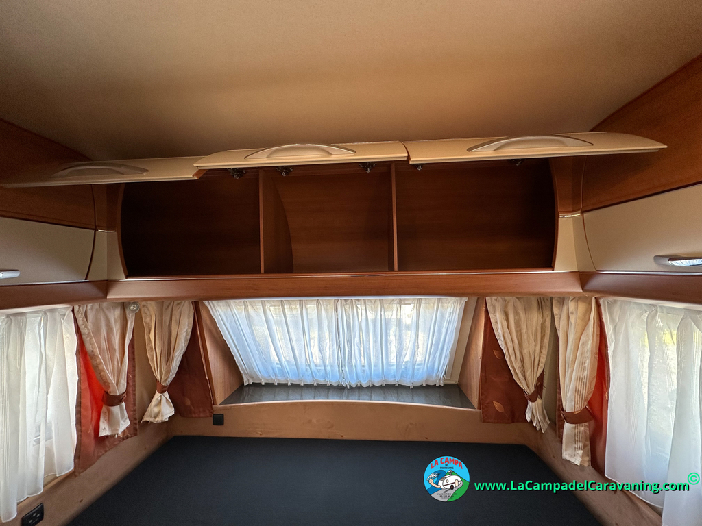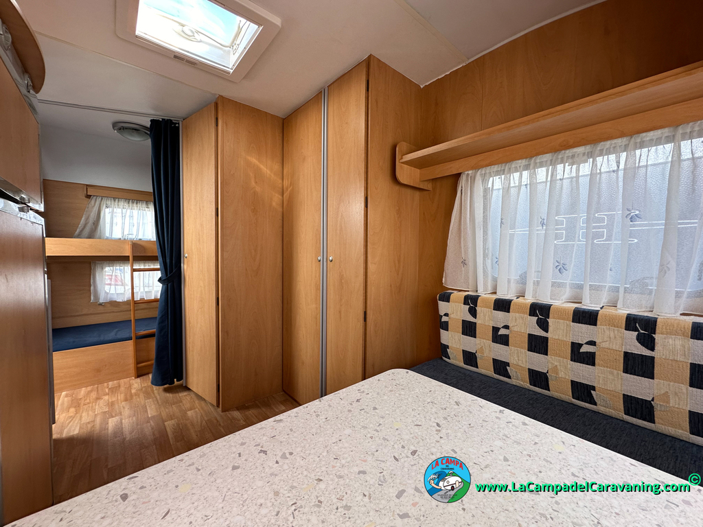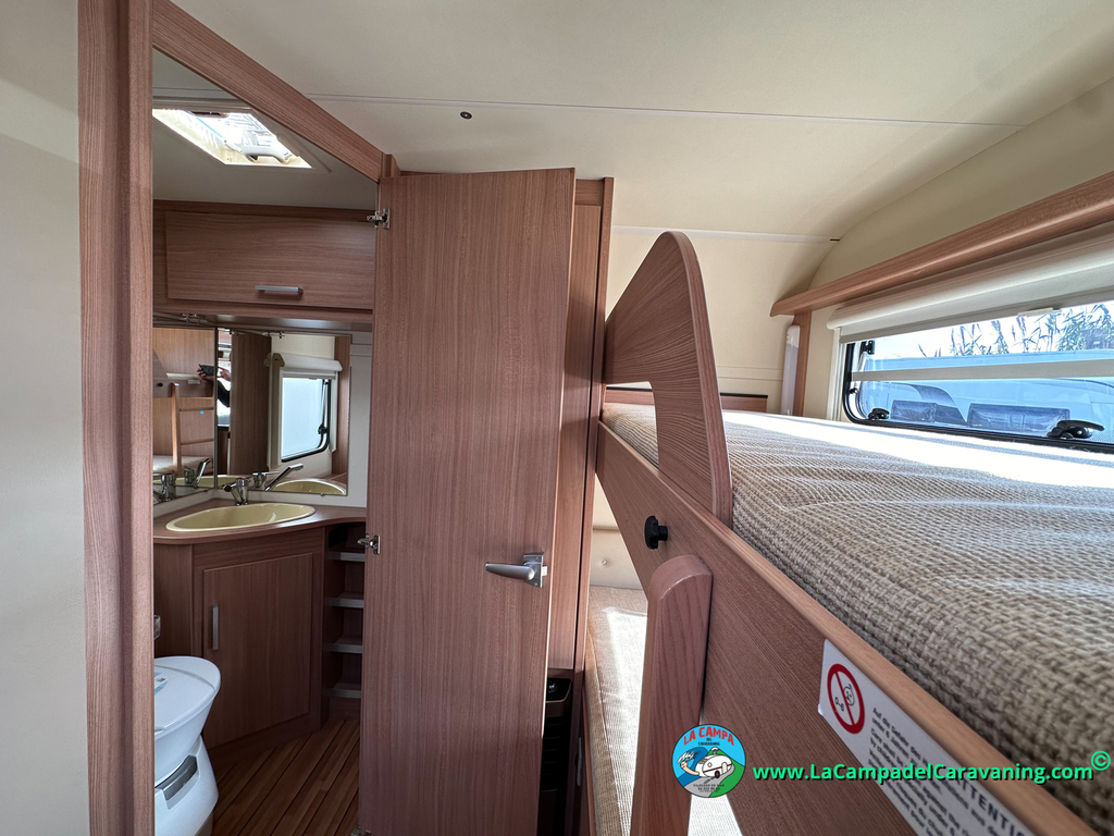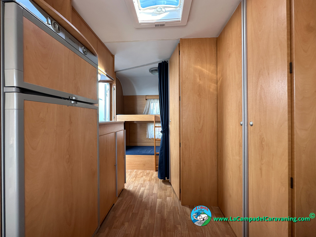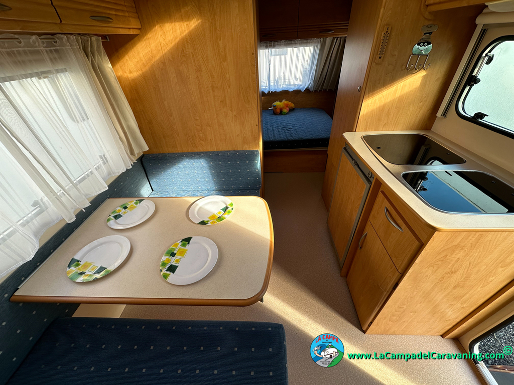 Nevera trivalente con congelador, WC químico, ducha semindependiente, antena TV, microondas, calefaccion con distribución por conductos, 2 claraboyas (1 panorámica), mosquitera en puerta de entrada, estabilizador Alko.