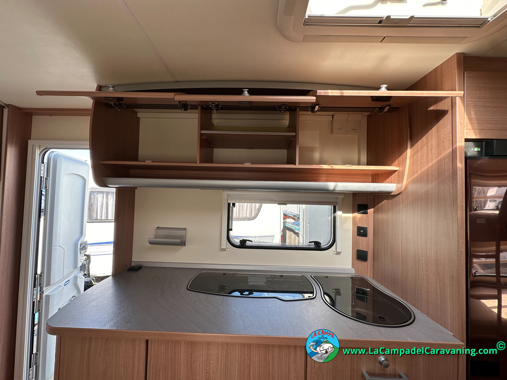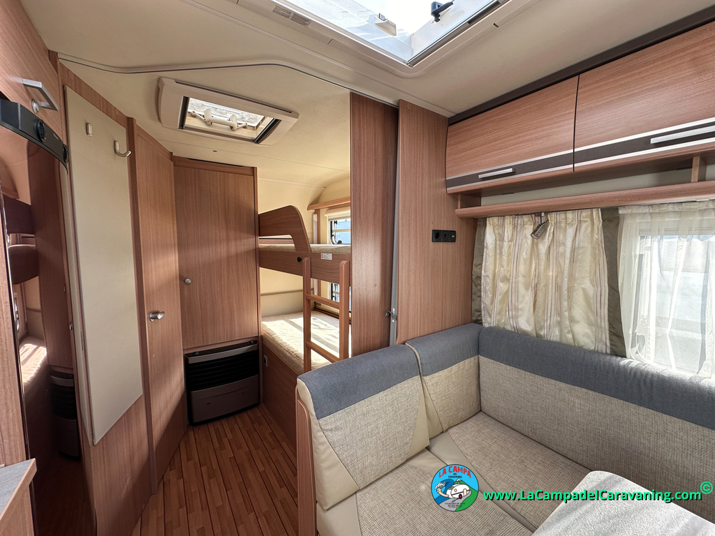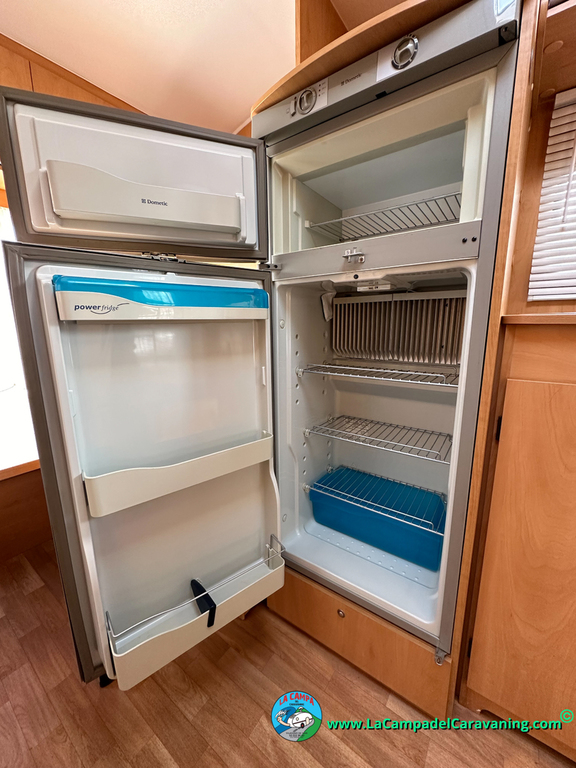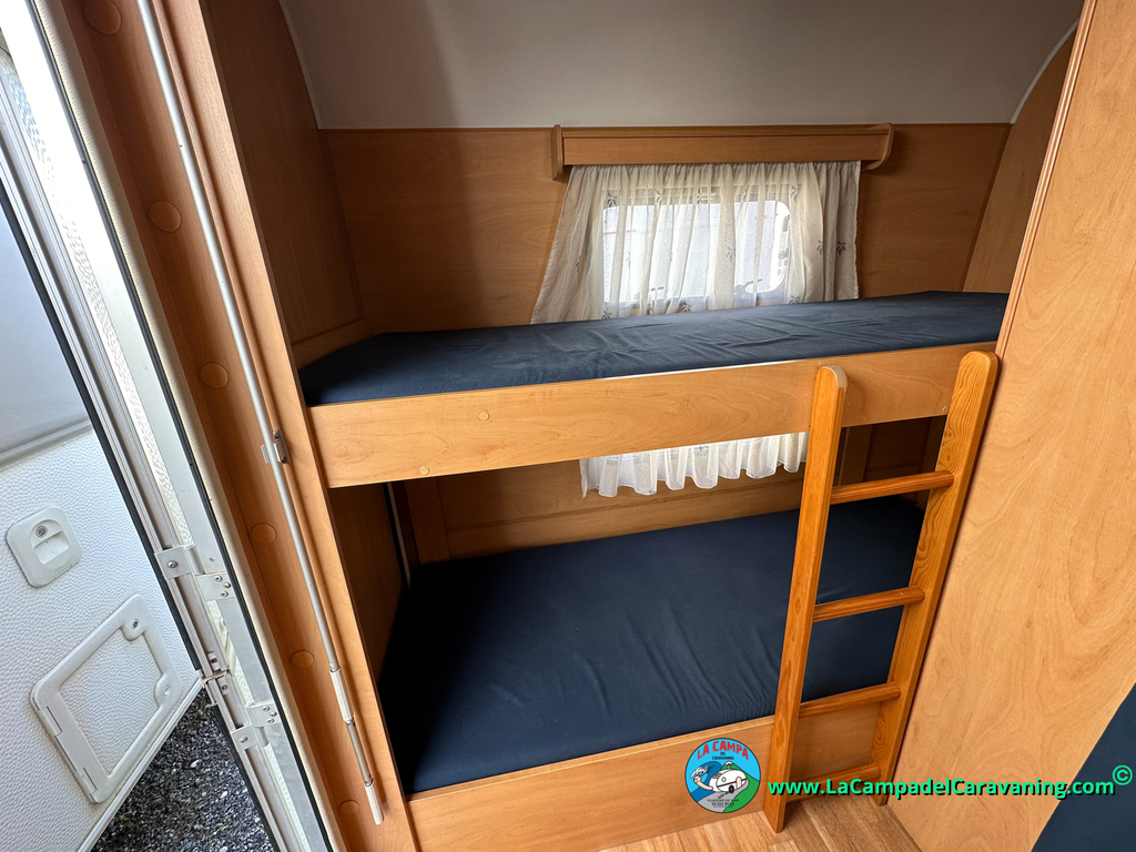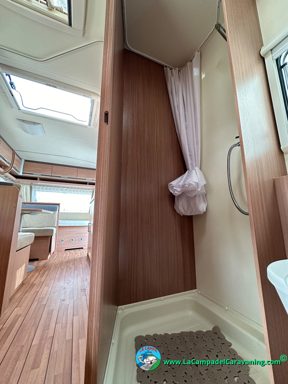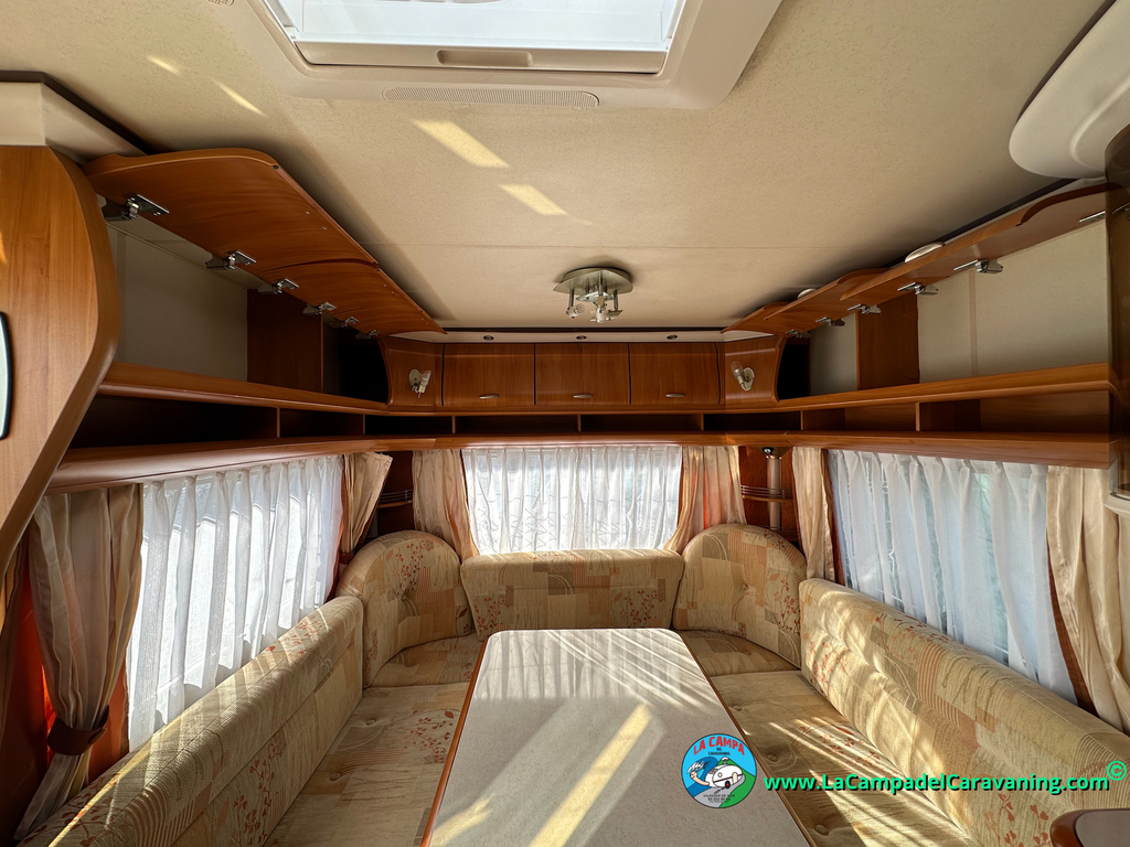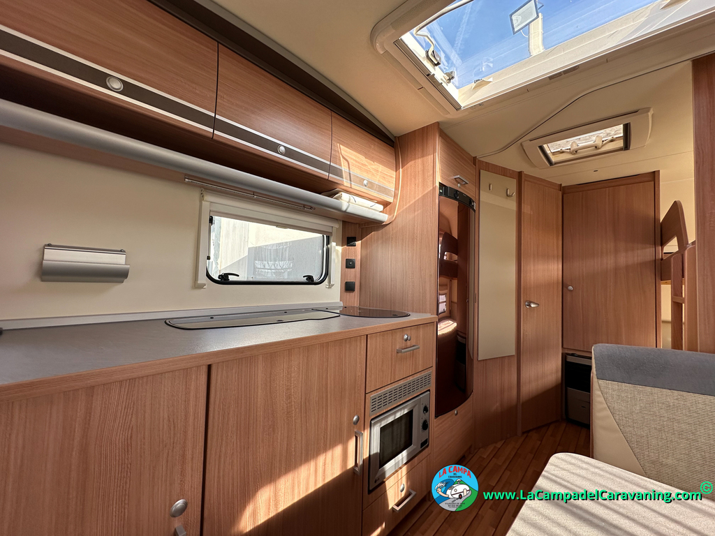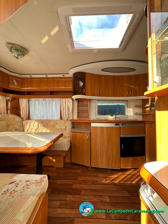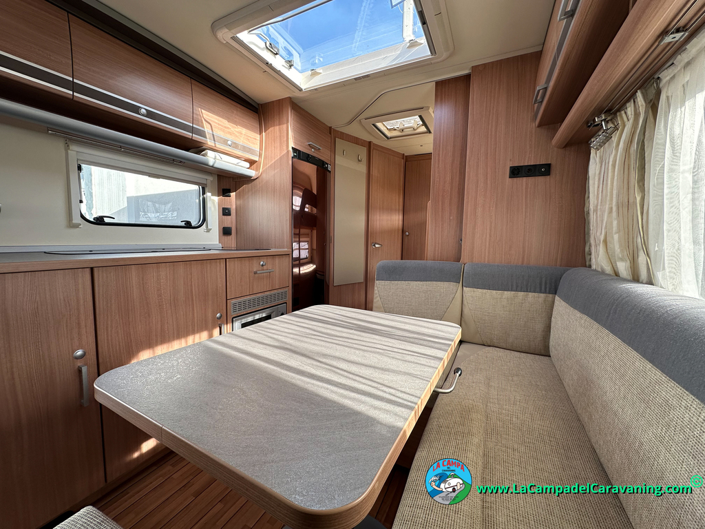 Nevera trivalente con congelador, WC químico, ducha semindependiente, antena TV, microondas, calefaccion con distribución por conductos, 2 claraboyas (1 panorámica), mosquitera en puerta de entrada, estabilizador Alko.