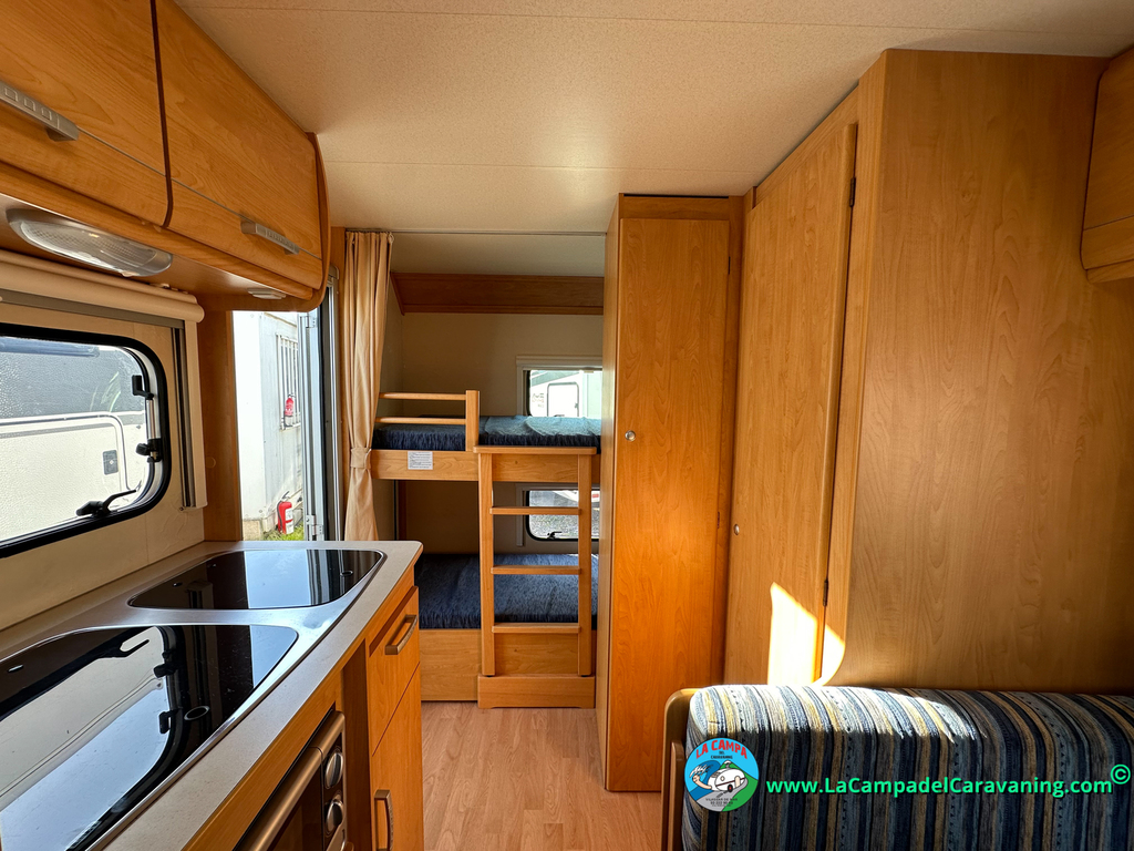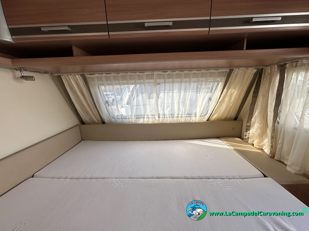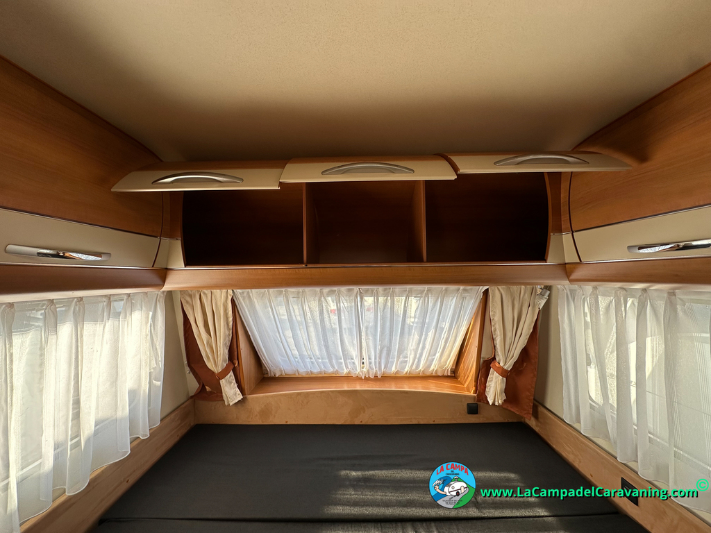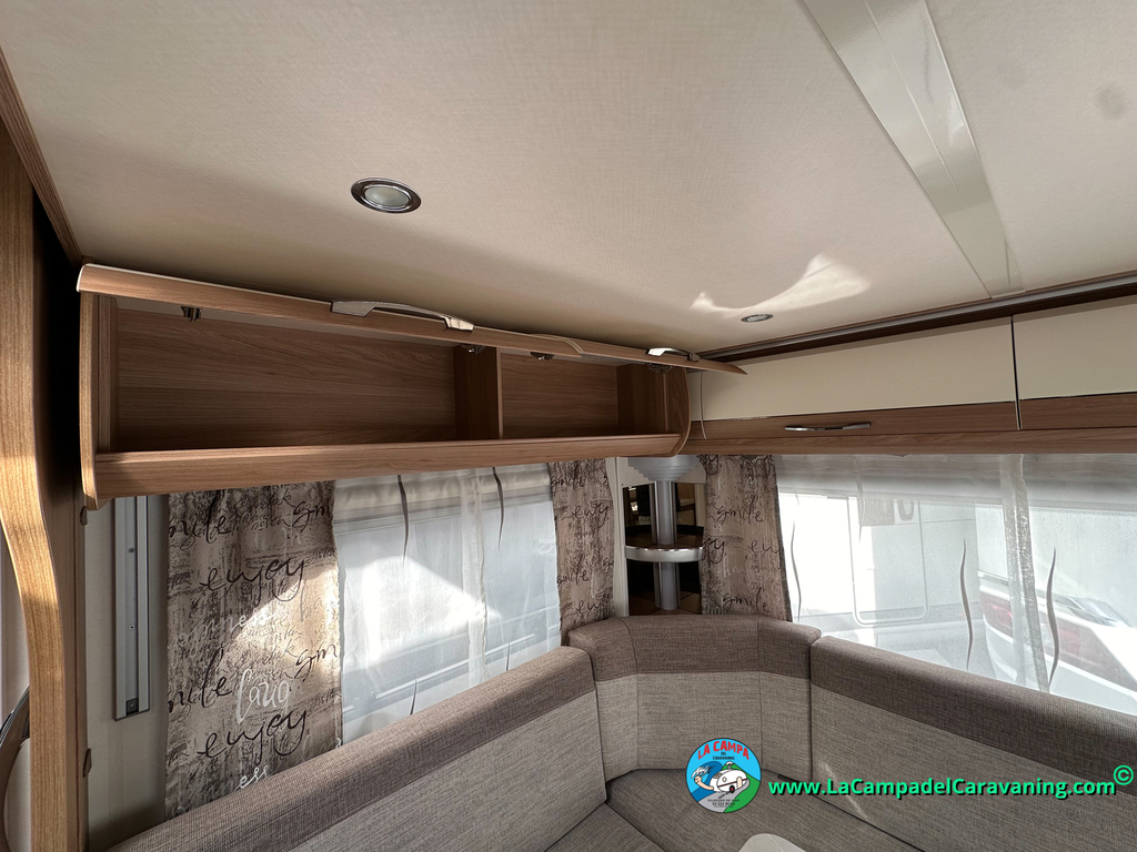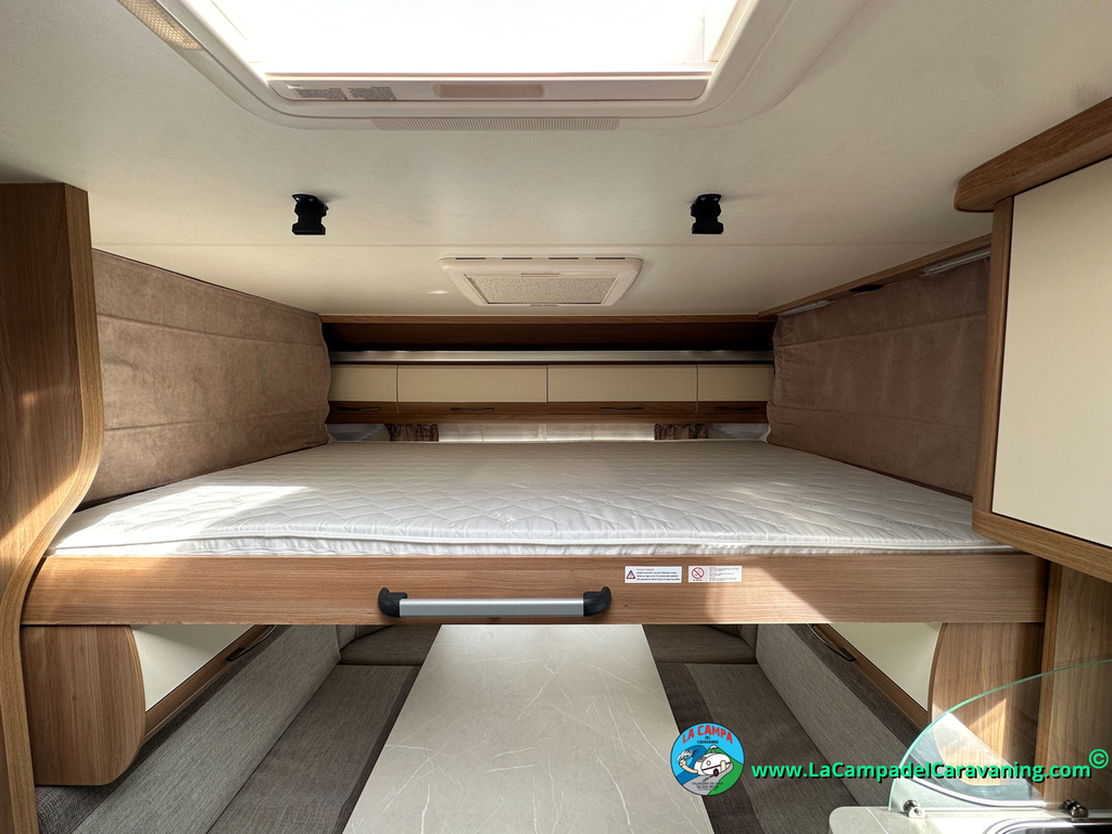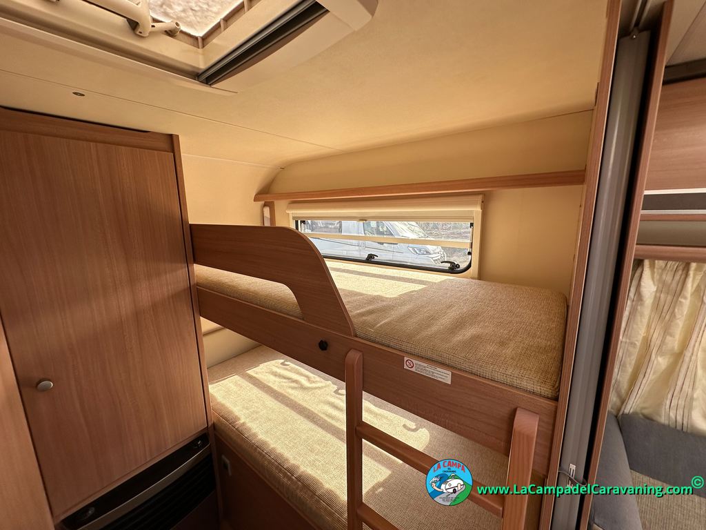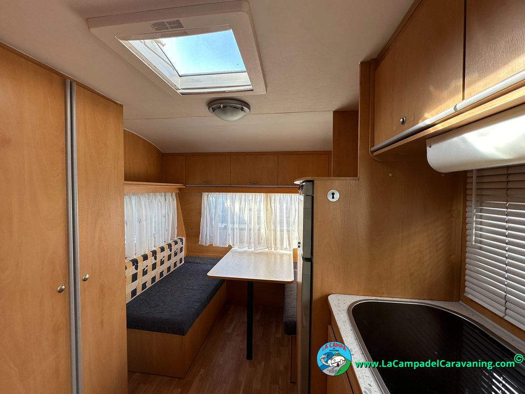 Nevera trivalente con congelador, WC químico, ducha semindependiente, antena TV, microondas, calefaccion con distribución por conductos, 2 claraboyas (1 panorámica), mosquitera en puerta de entrada, estabilizador Alko.