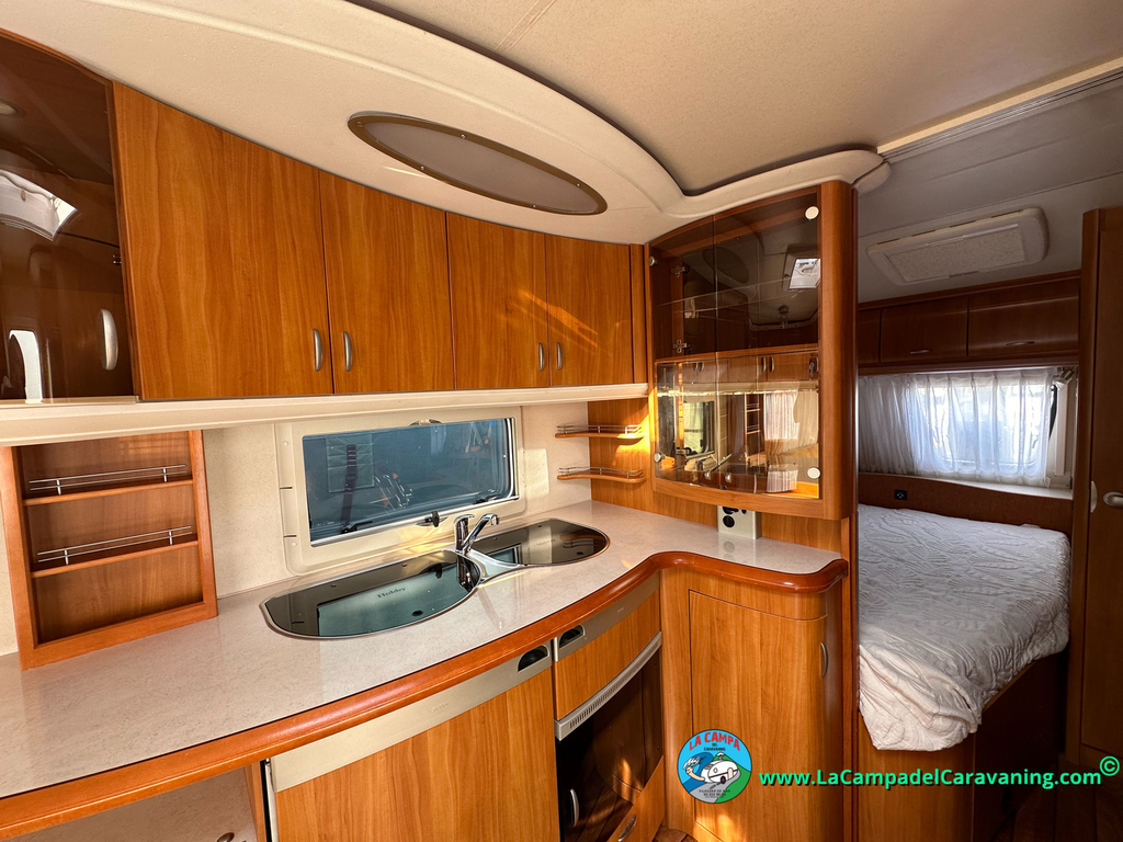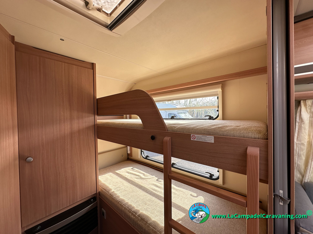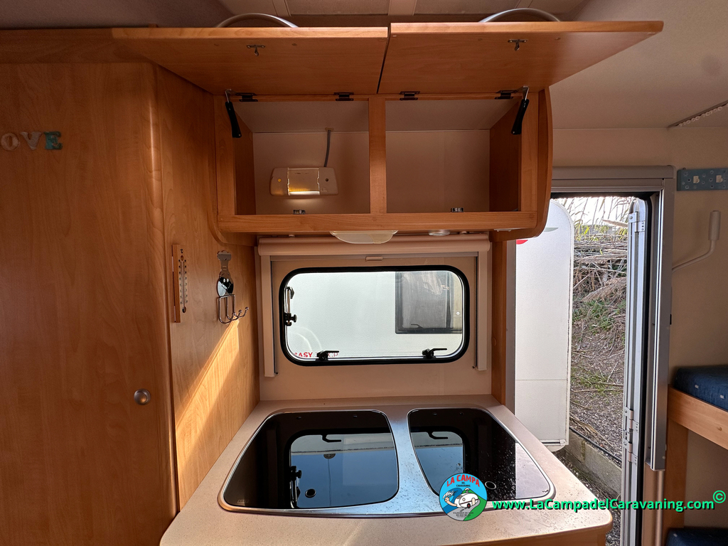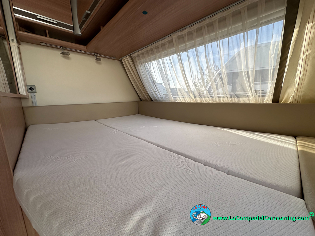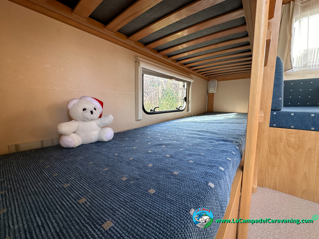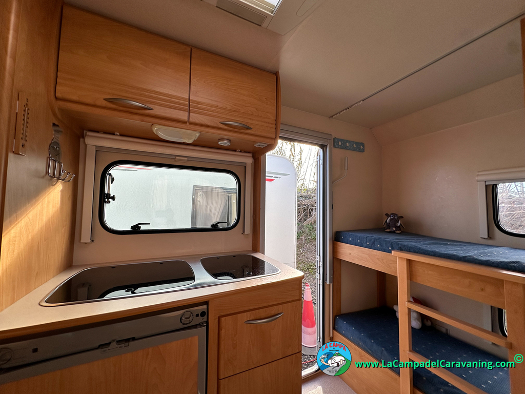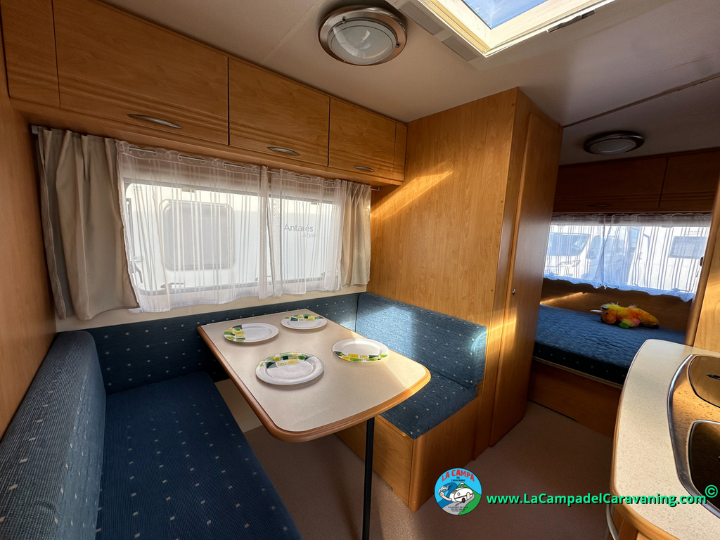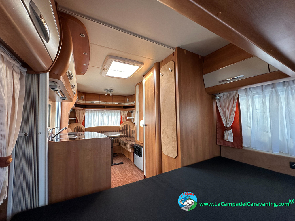 Nevera trivalente con congelador, WC químico, ducha semindependiente, antena TV, microondas, calefaccion con distribución por conductos, 2 claraboyas (1 panorámica), mosquitera en puerta de entrada, estabilizador Alko.
