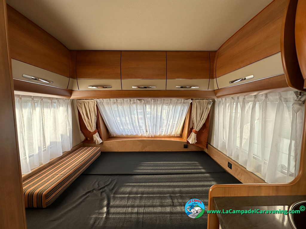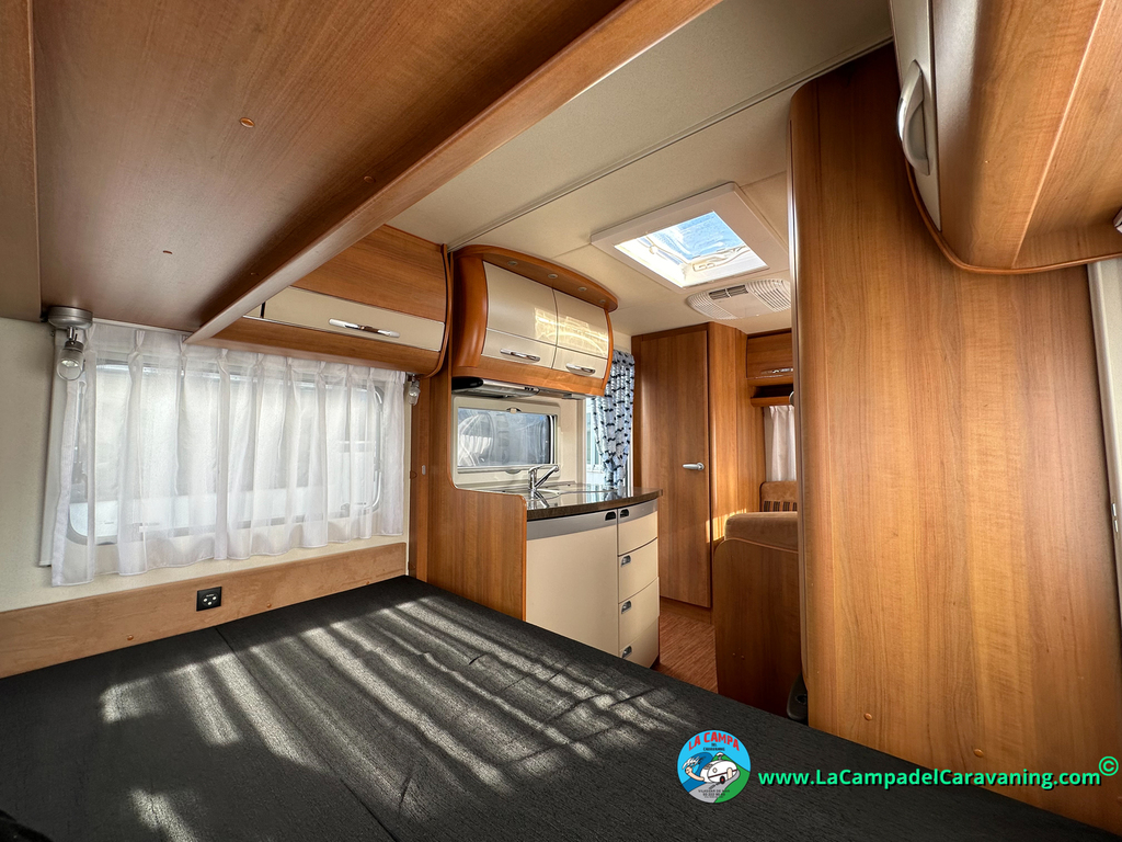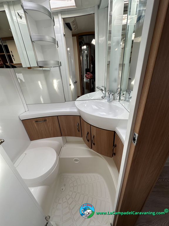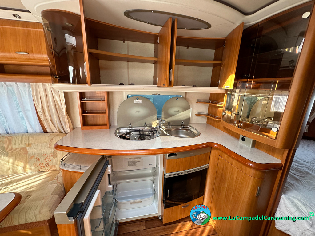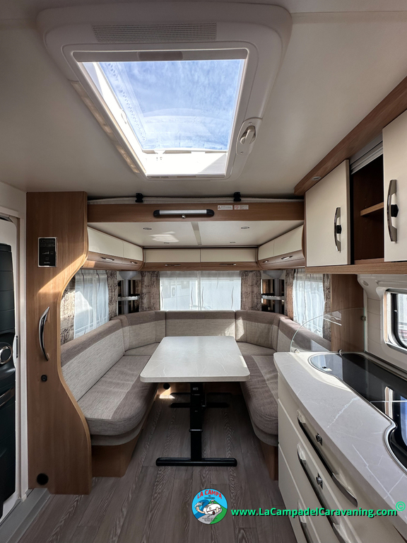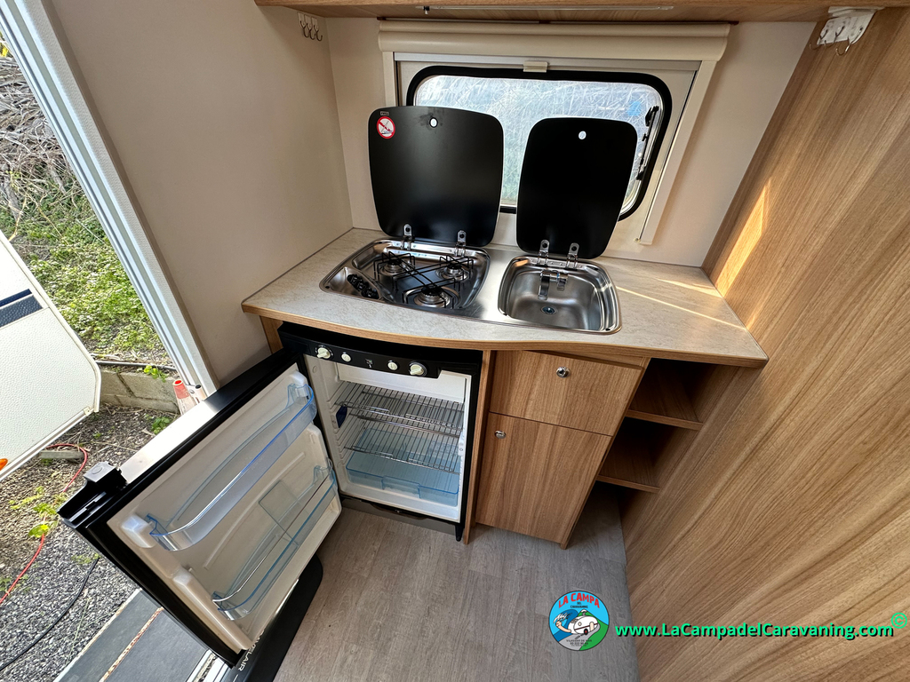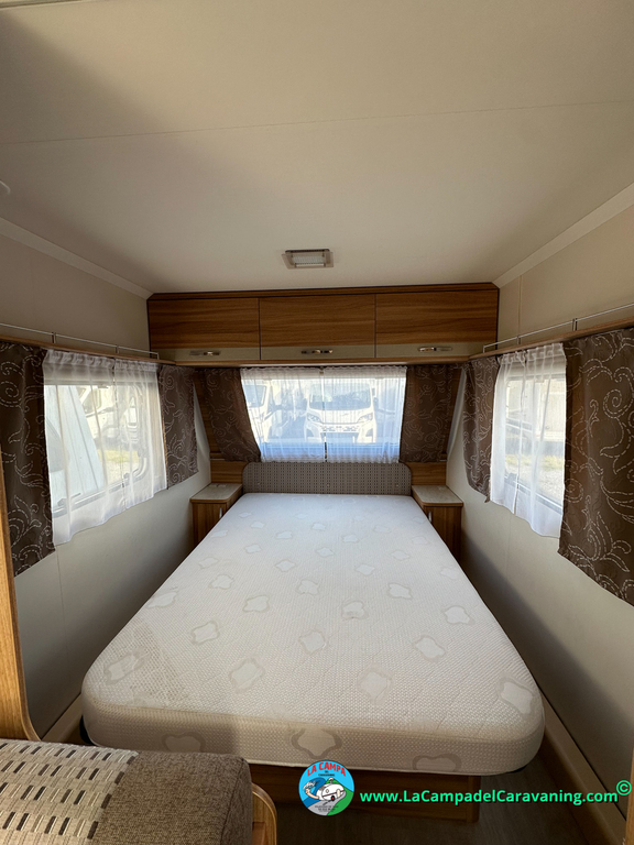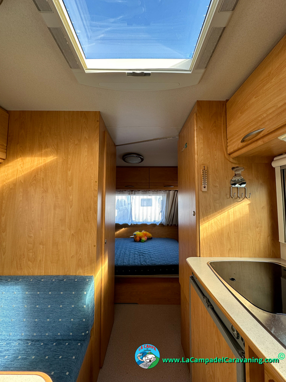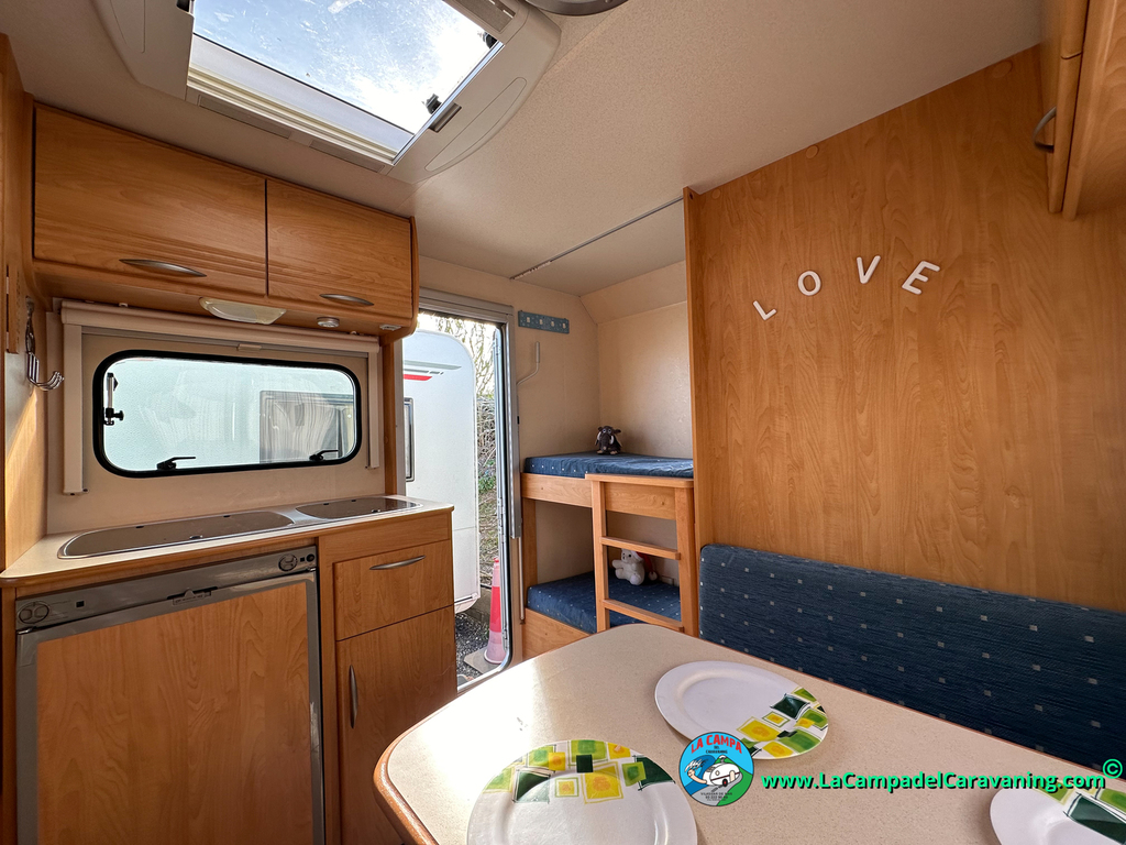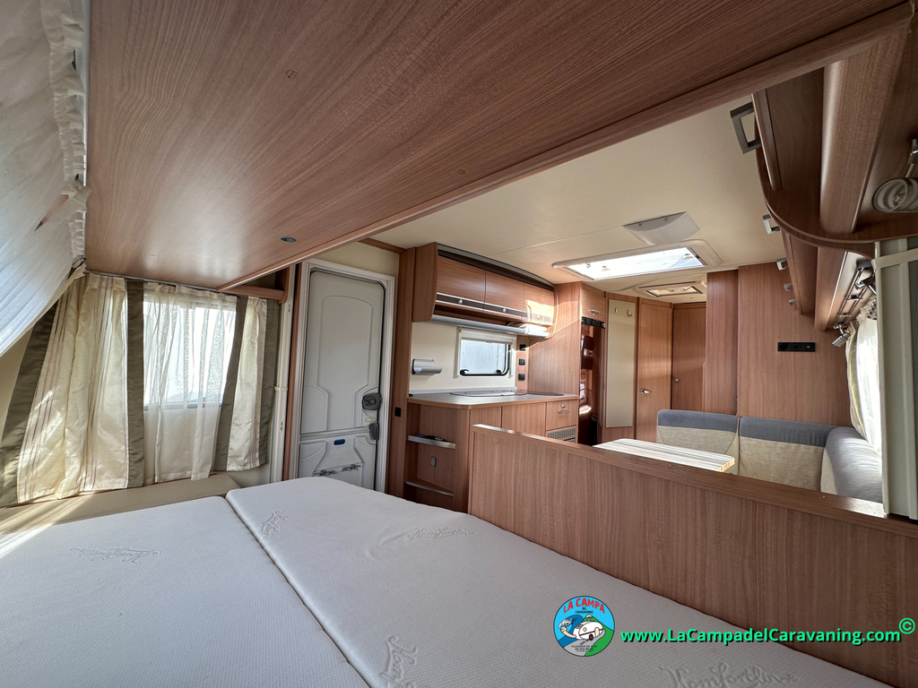 Nevera trivalente con congelador, WC químico, ducha semindependiente, antena TV, microondas, calefaccion con distribución por conductos, 2 claraboyas (1 panorámica), mosquitera en puerta de entrada, estabilizador Alko.