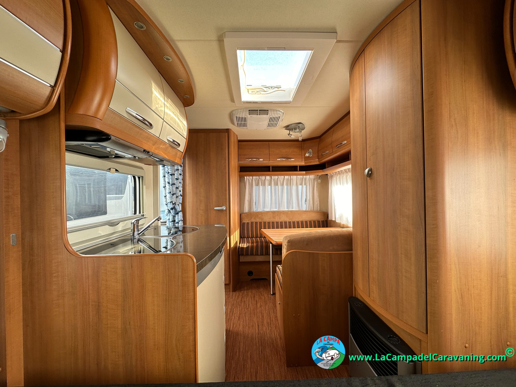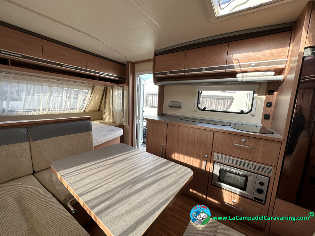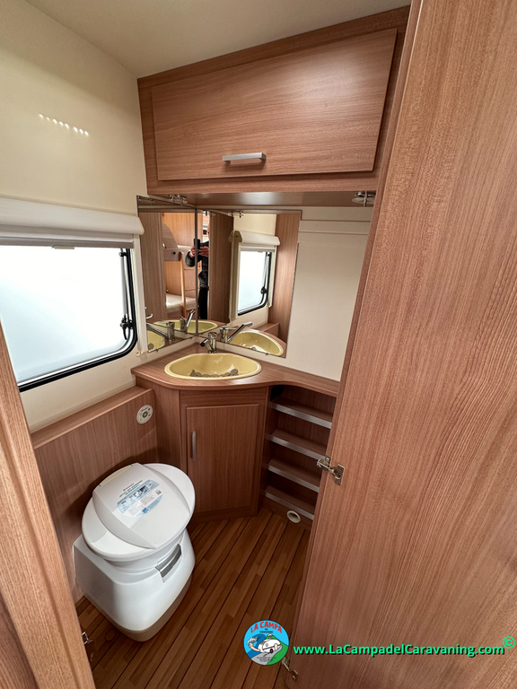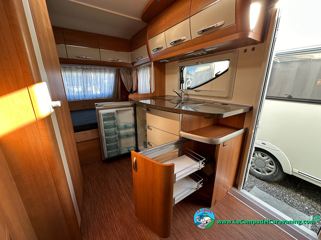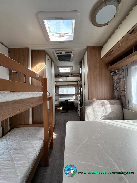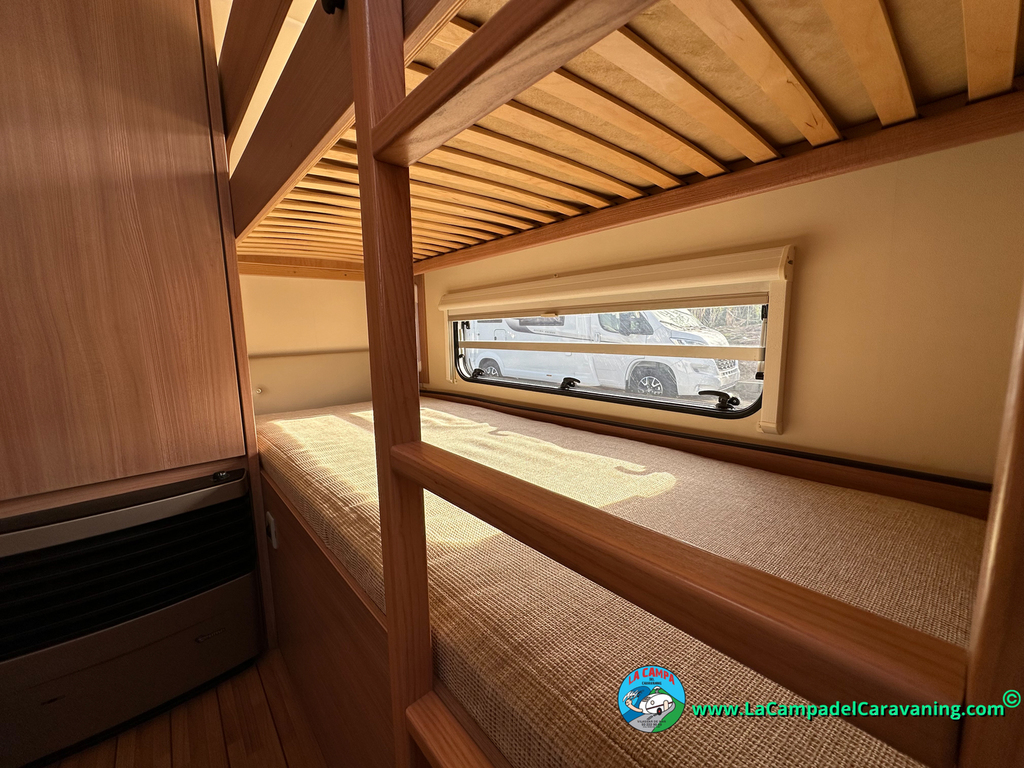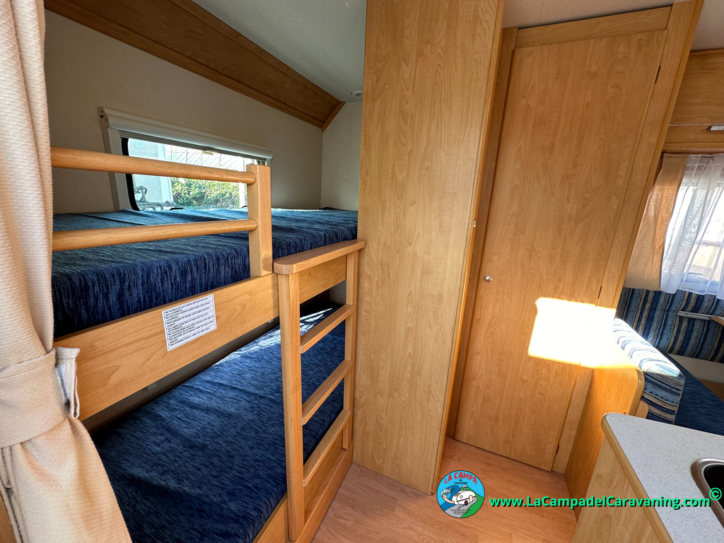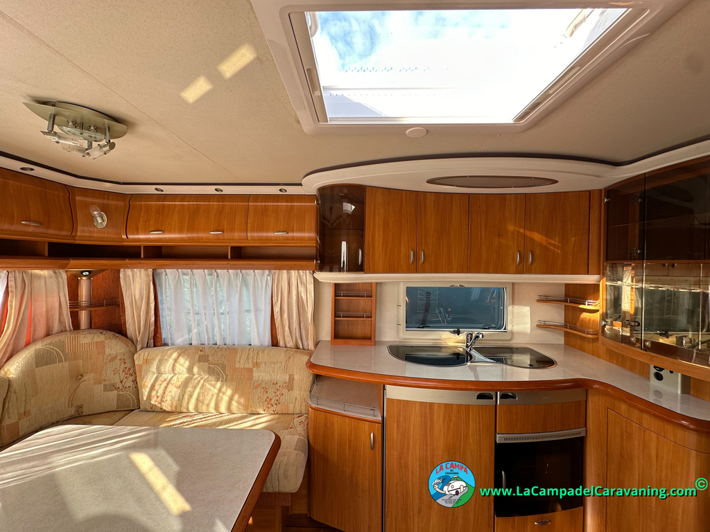 Nevera trivalente con congelador, WC químico, ducha semindependiente, antena TV, microondas, calefaccion con distribución por conductos, 2 claraboyas (1 panorámica), mosquitera en puerta de entrada, estabilizador Alko.