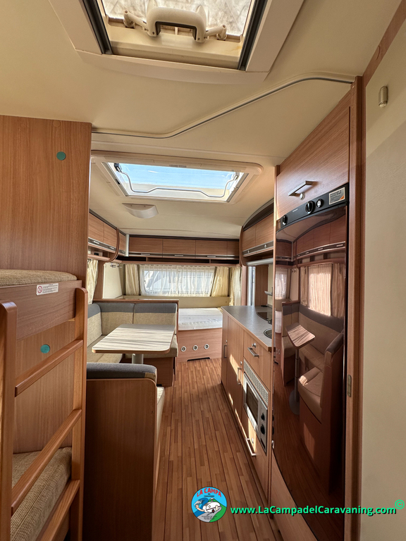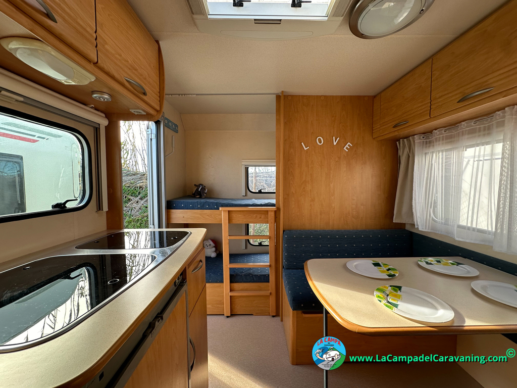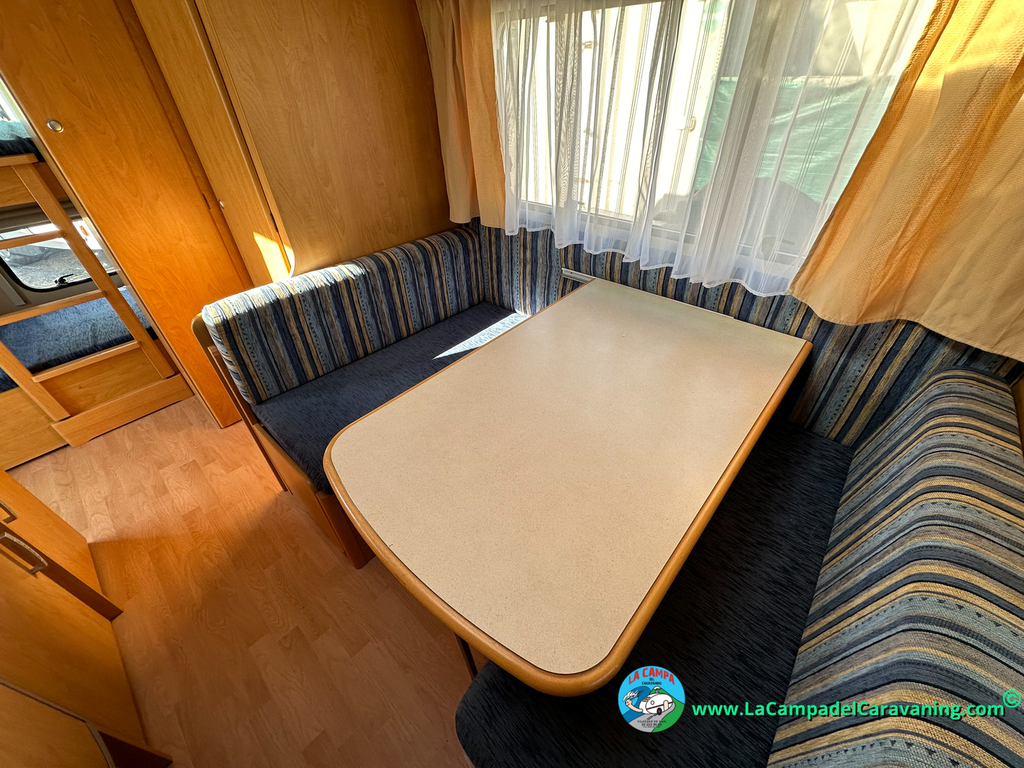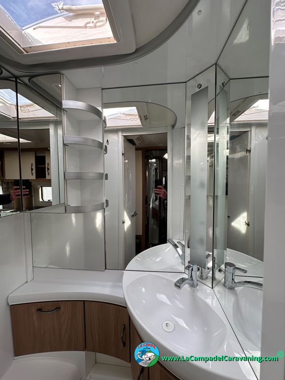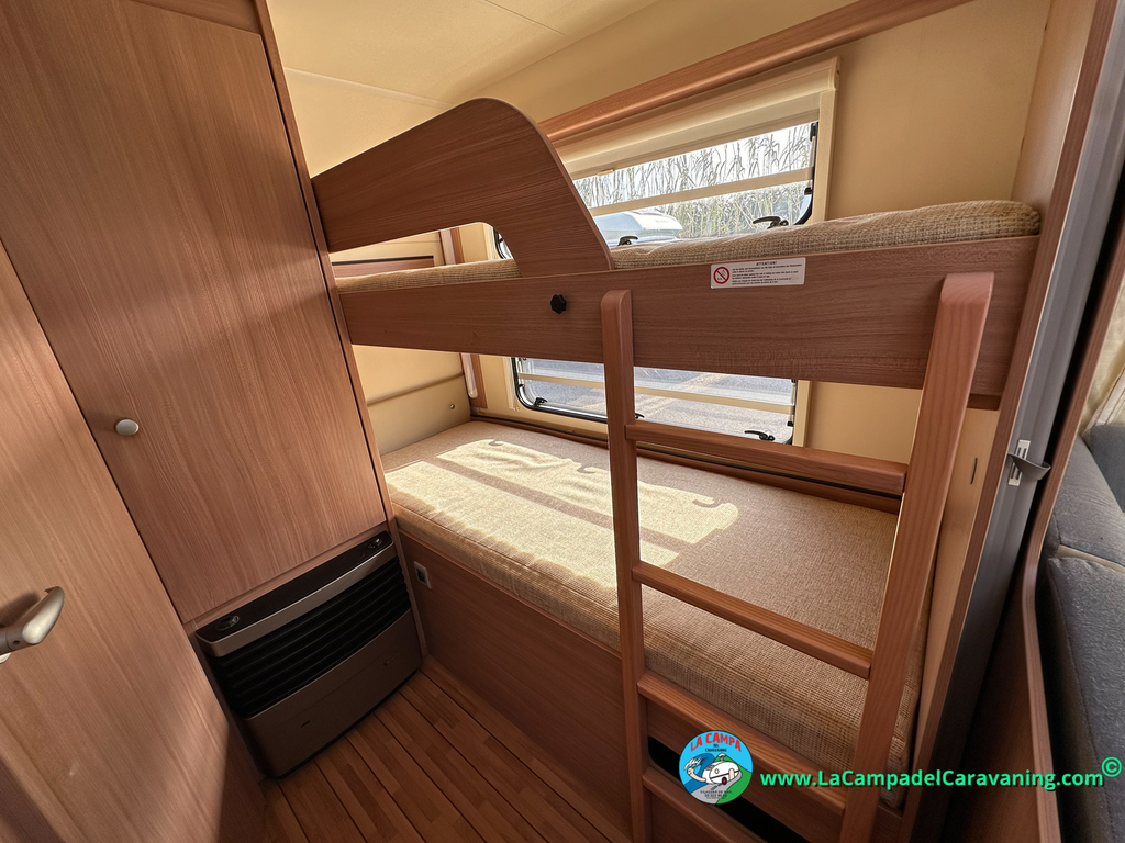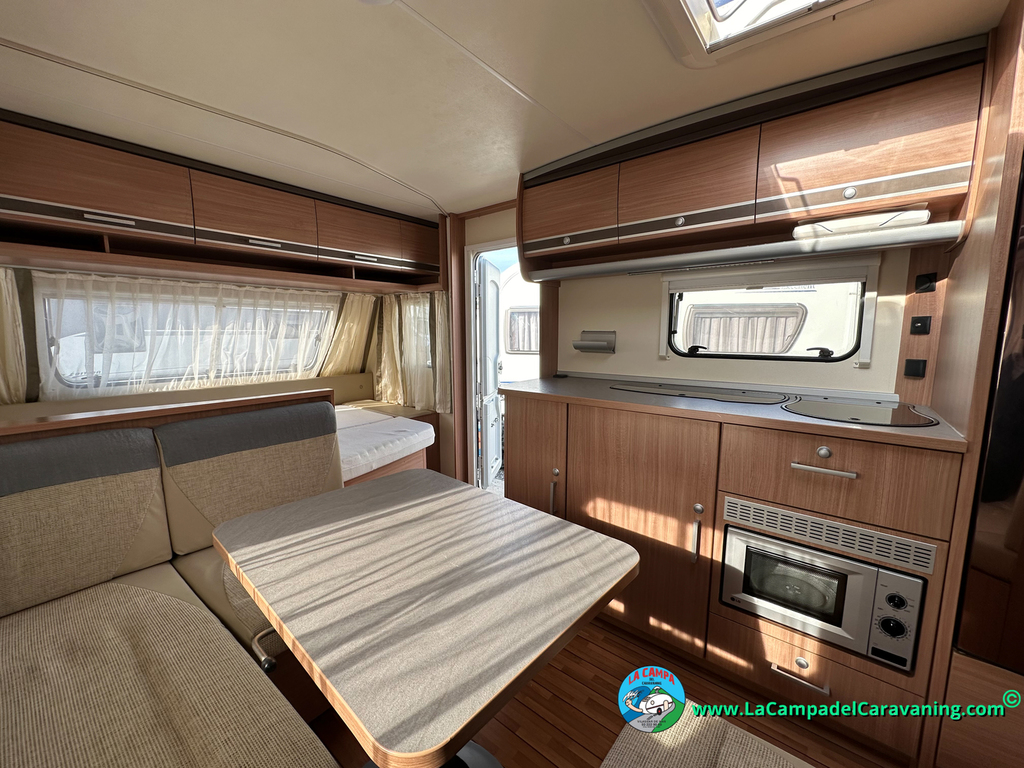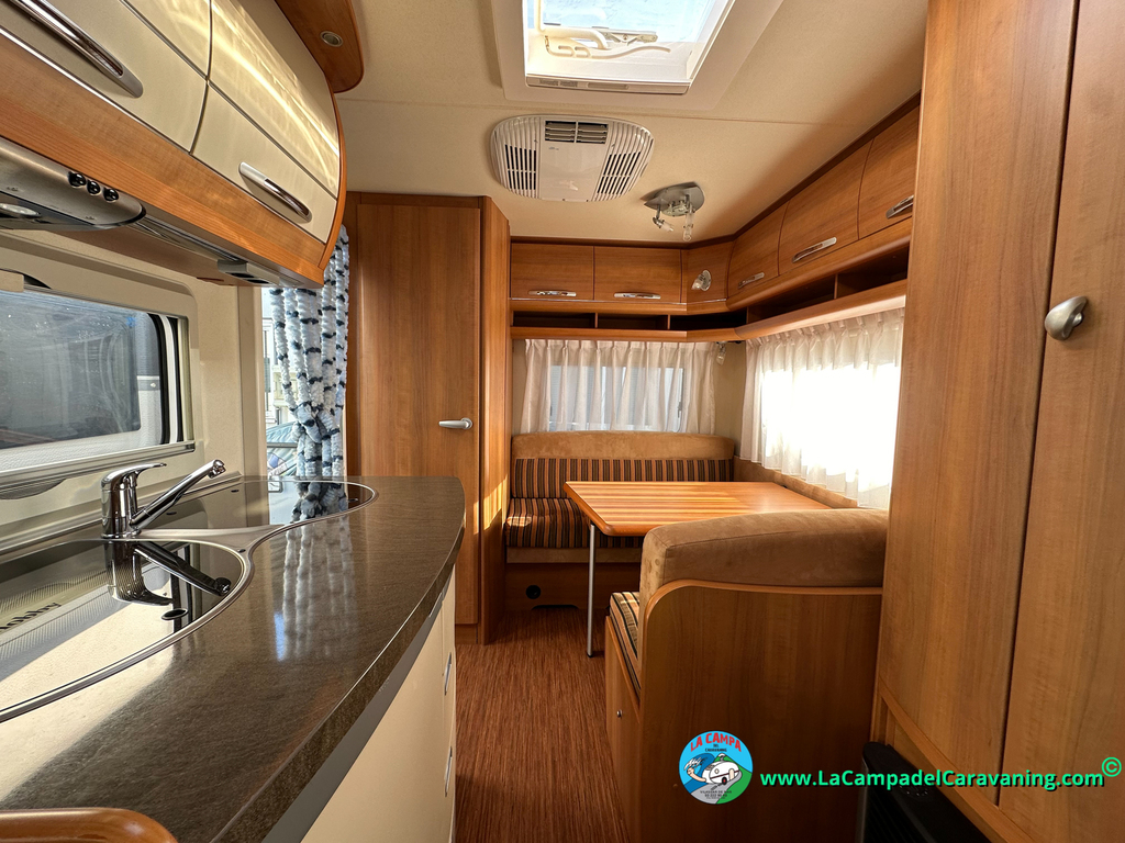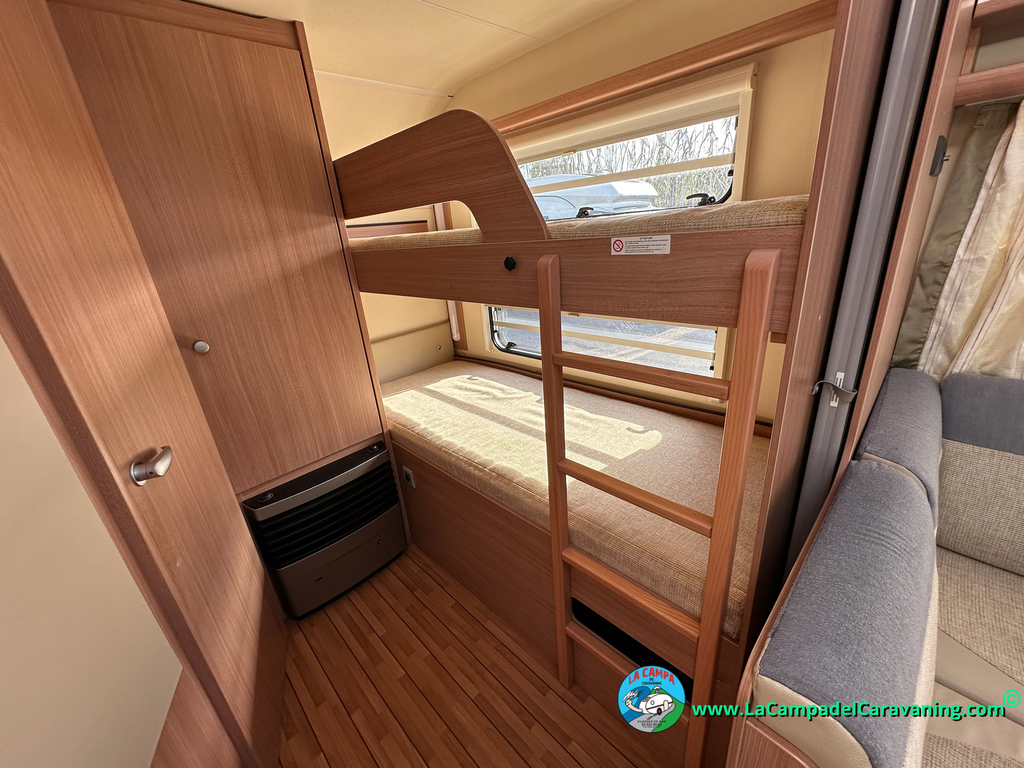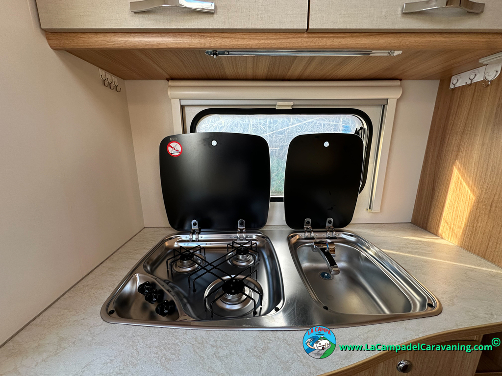 Nevera trivalente con congelador, WC químico, ducha semindependiente, antena TV, microondas, calefaccion con distribución por conductos, 2 claraboyas (1 panorámica), mosquitera en puerta de entrada, estabilizador Alko.