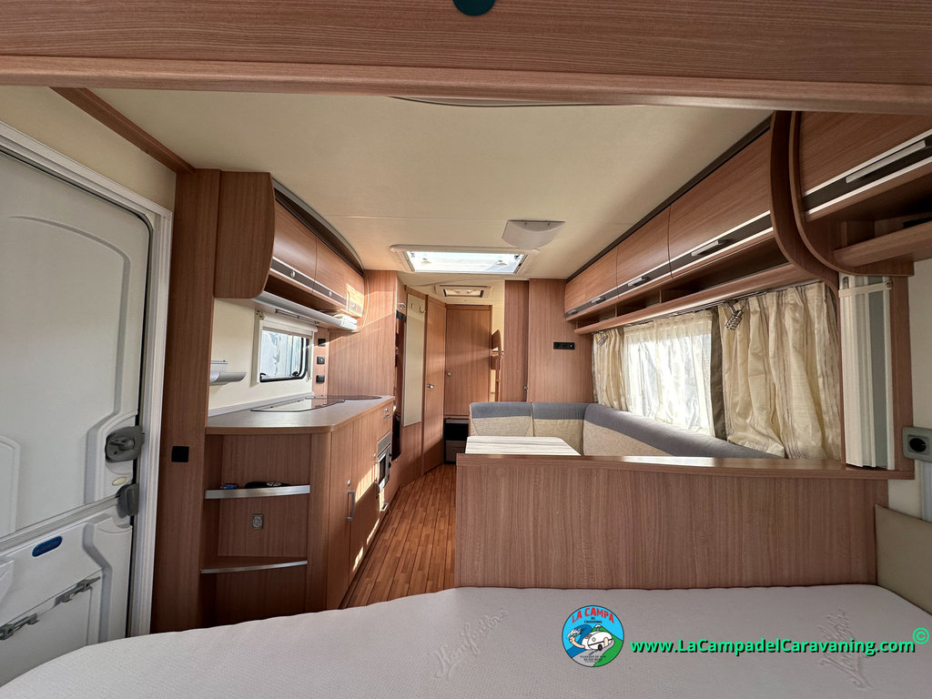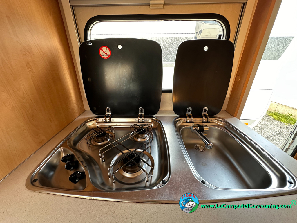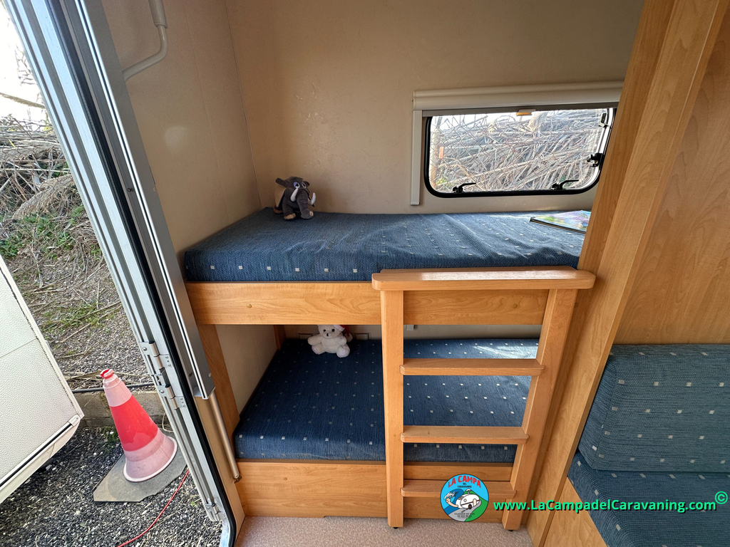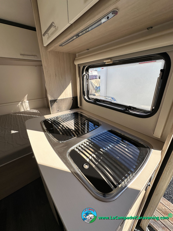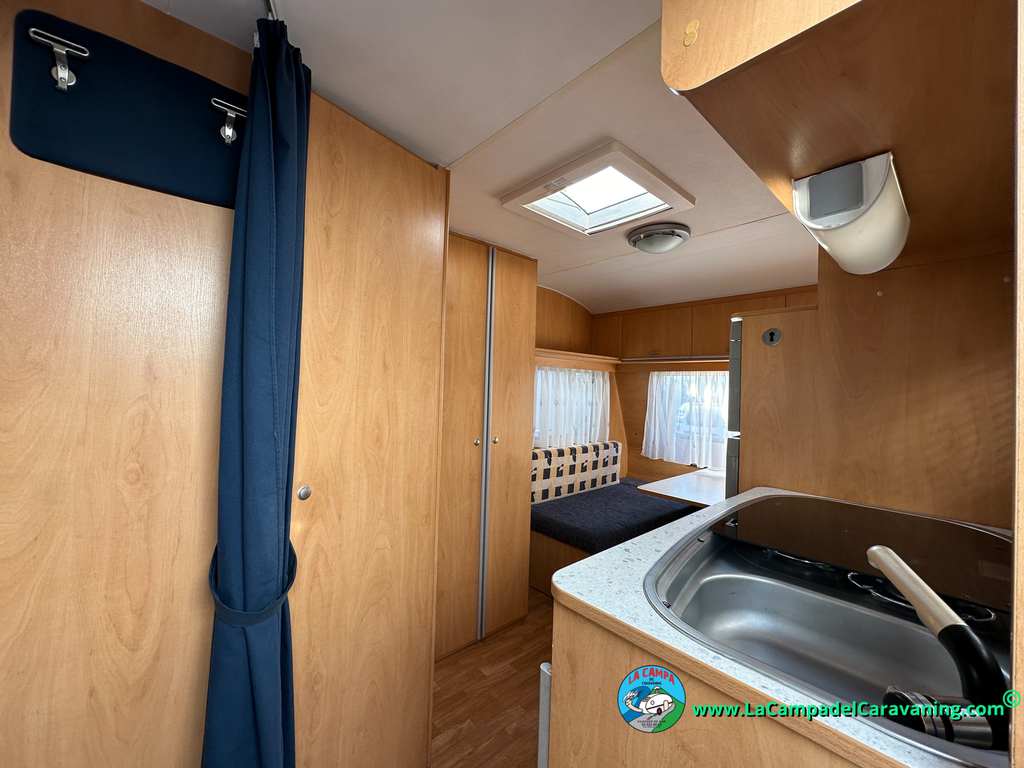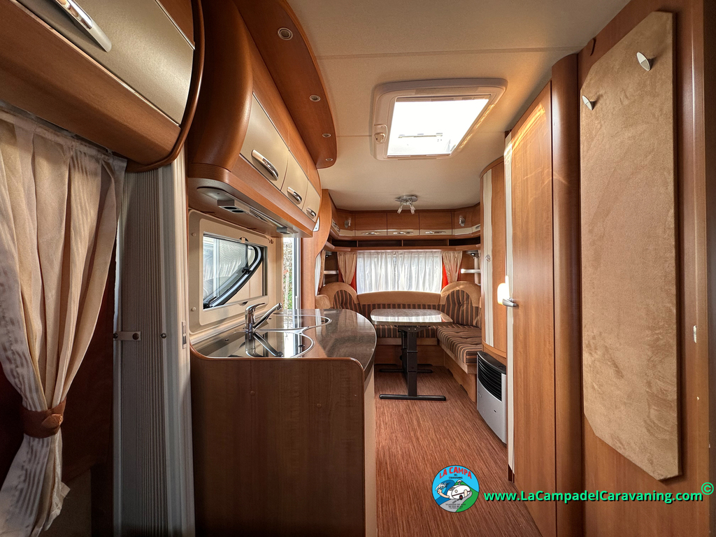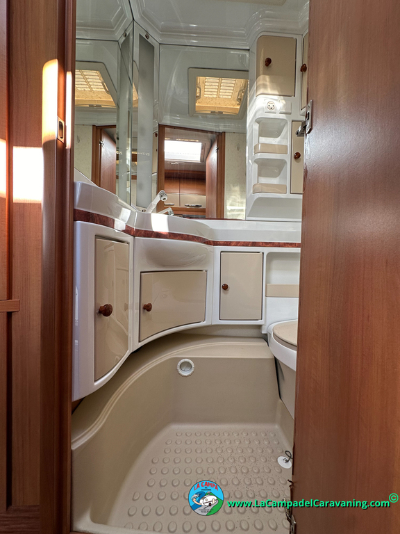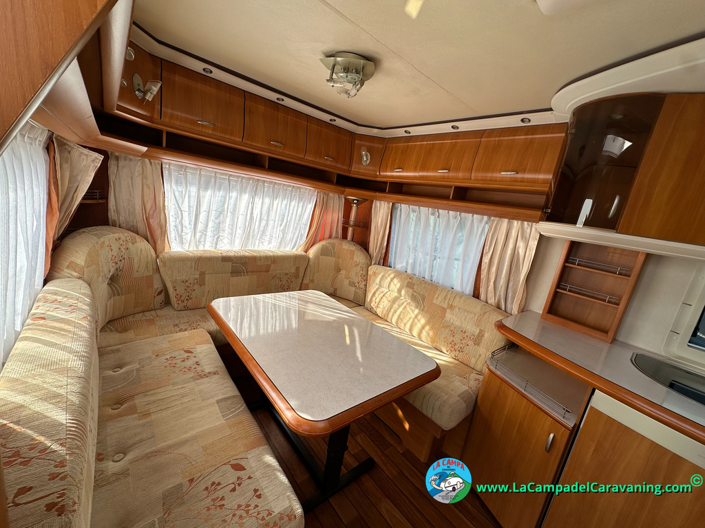 Nevera trivalente con congelador, WC químico, ducha semindependiente, antena TV, microondas, calefaccion con distribución por conductos, 2 claraboyas (1 panorámica), mosquitera en puerta de entrada, estabilizador Alko.